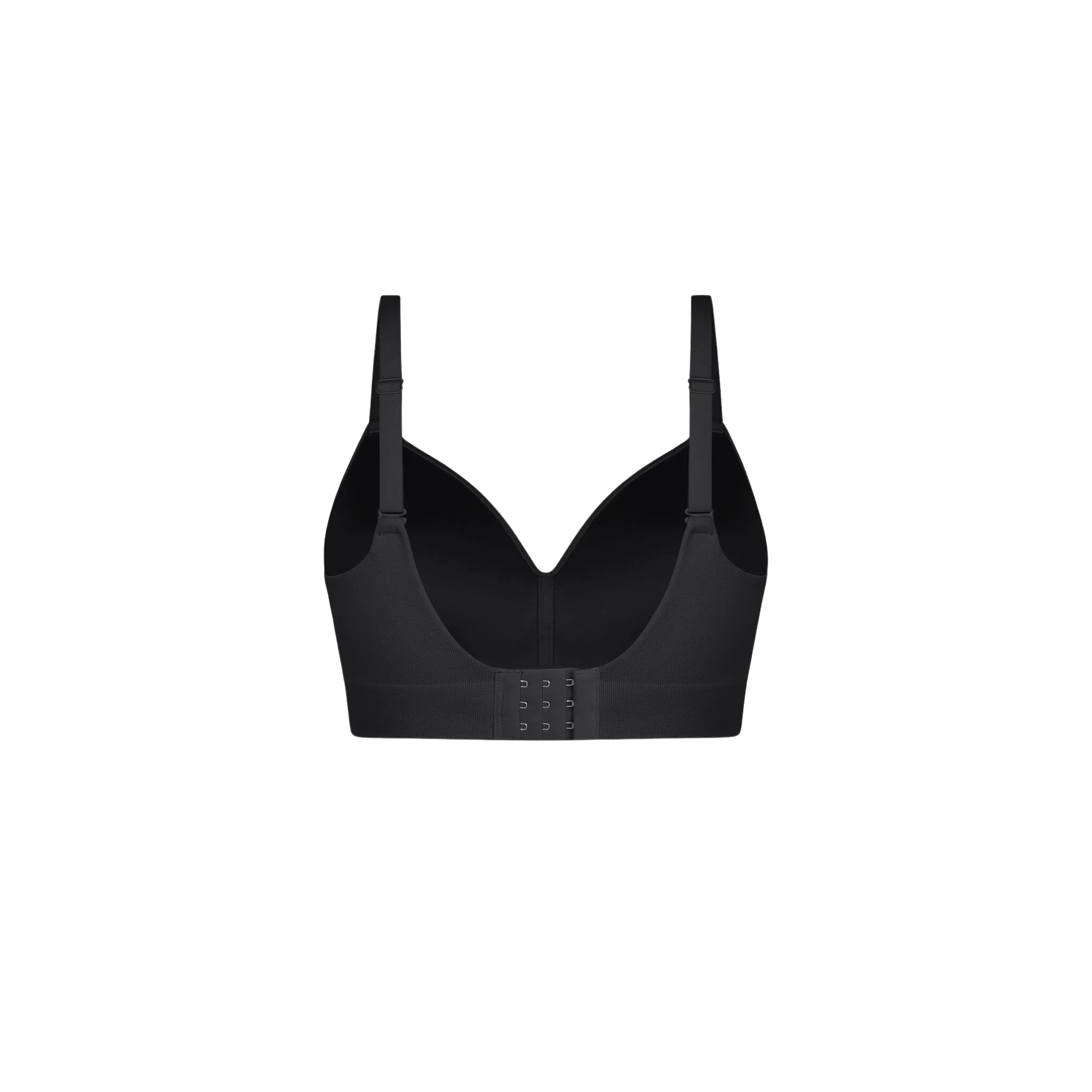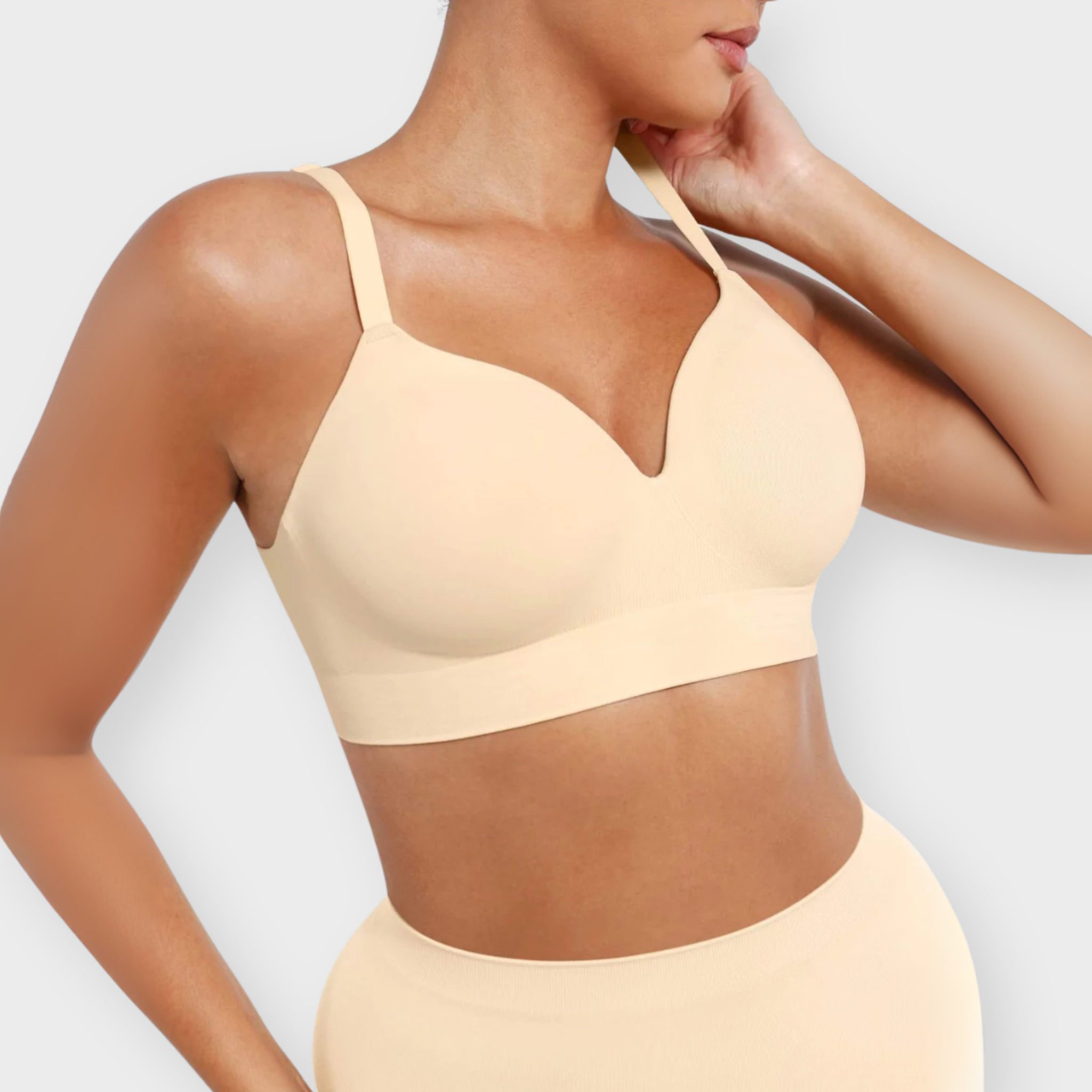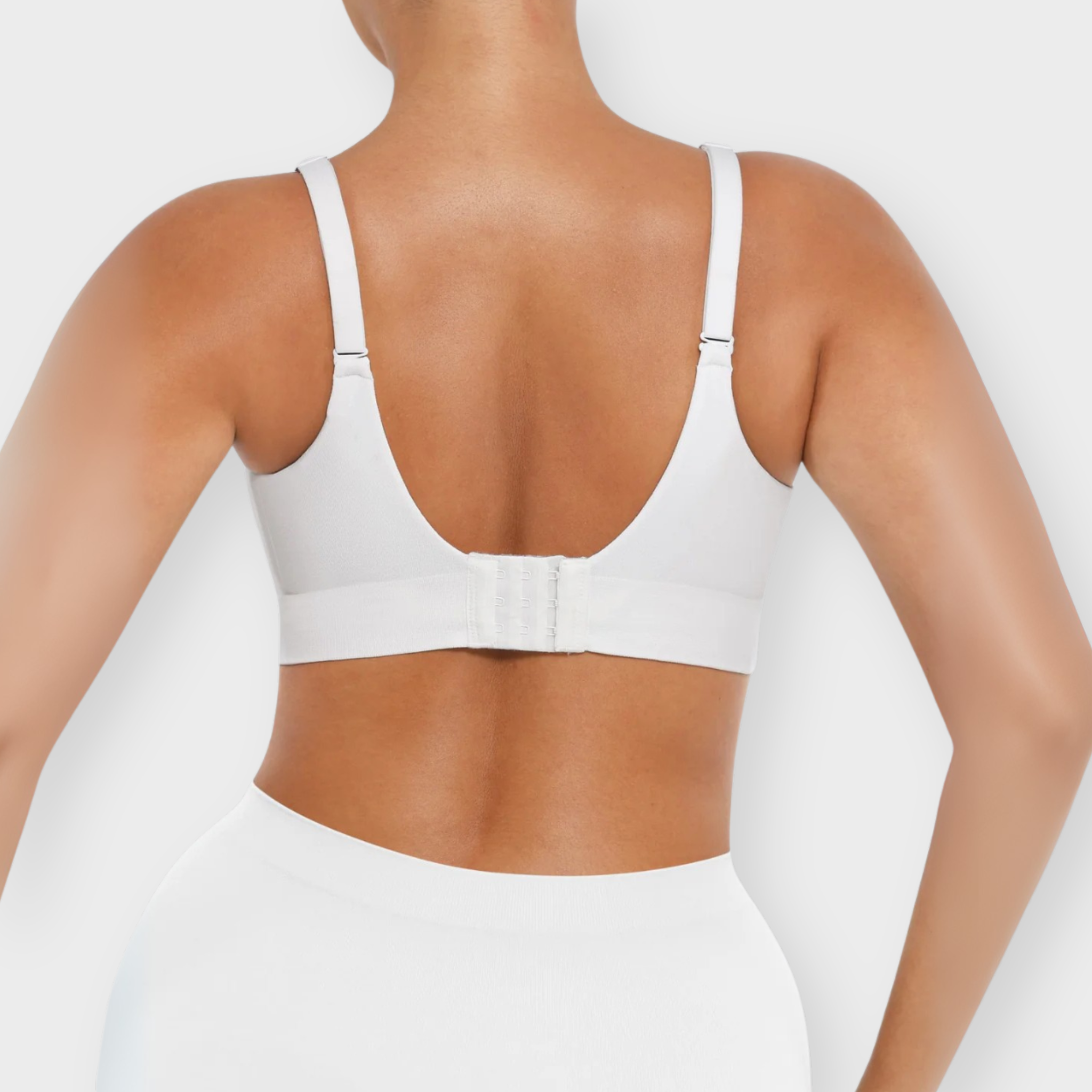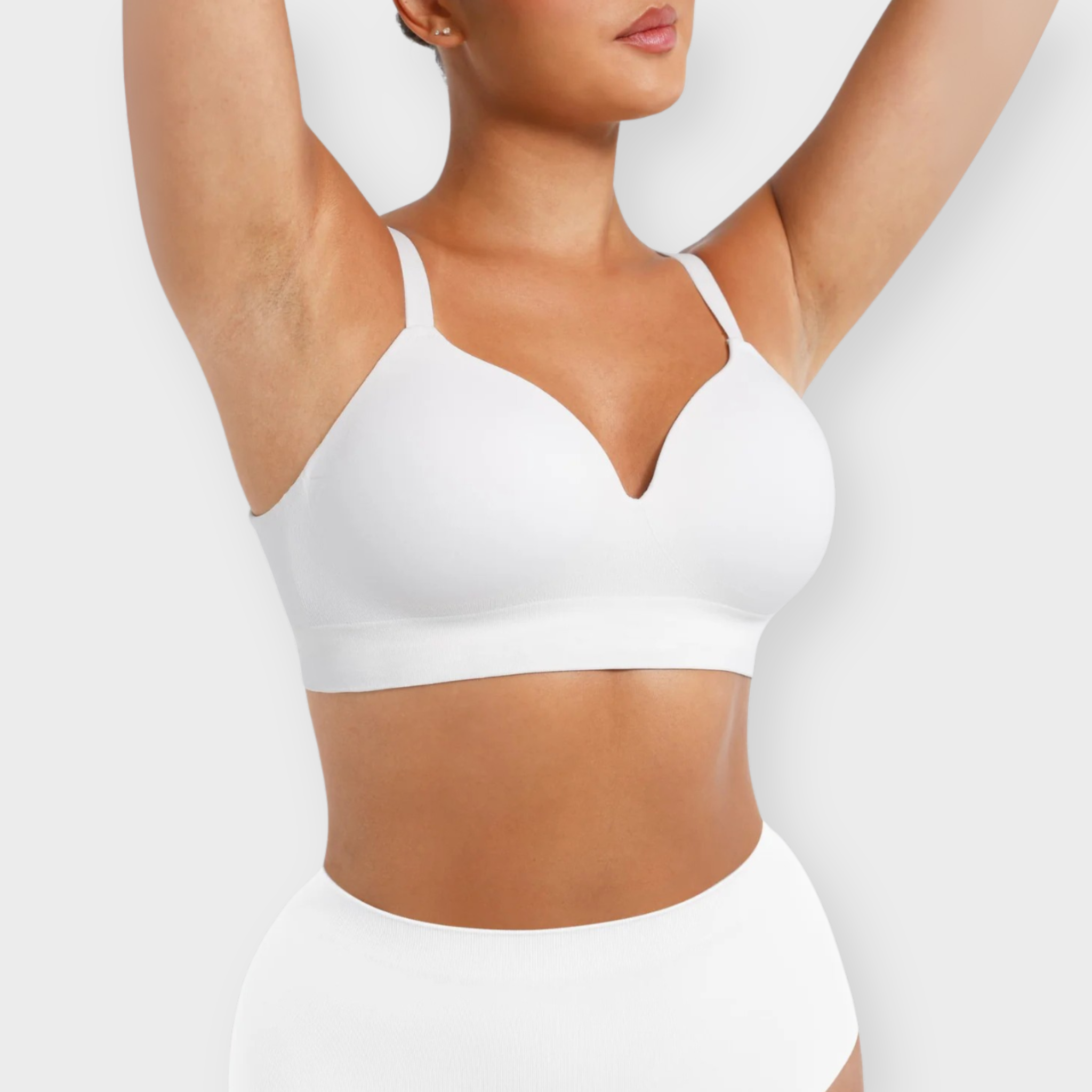 Seamless, sculpting, and wire-free. This shapewear bra features integrated foam cups for natural lift and smooth support—without the underwire. A double-layered body ensures a sleek look under clothes, while a reinforced band stays in place without digging or rolling. Designed for all-day versatility, it includes adjustable, removable straps for cross-back, one-shoulder, or classic styling. Finished with a three-row hook closure and an extender for a customizable fit.
