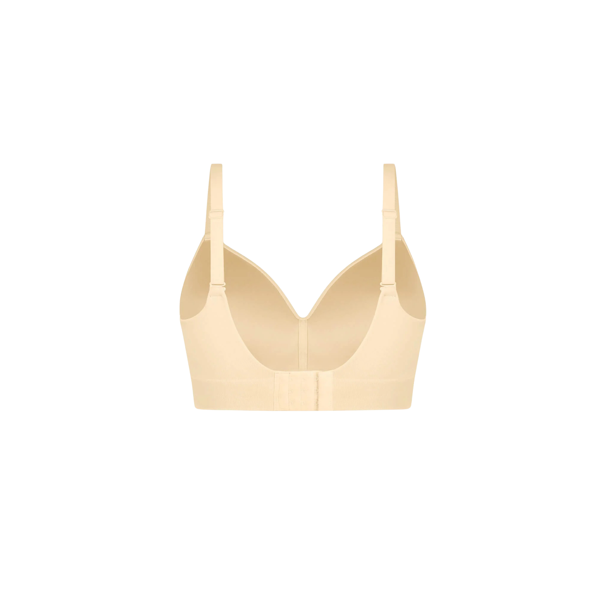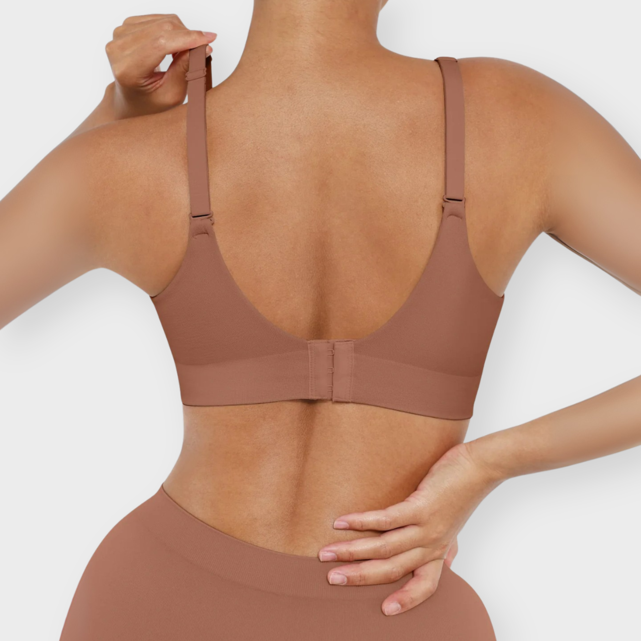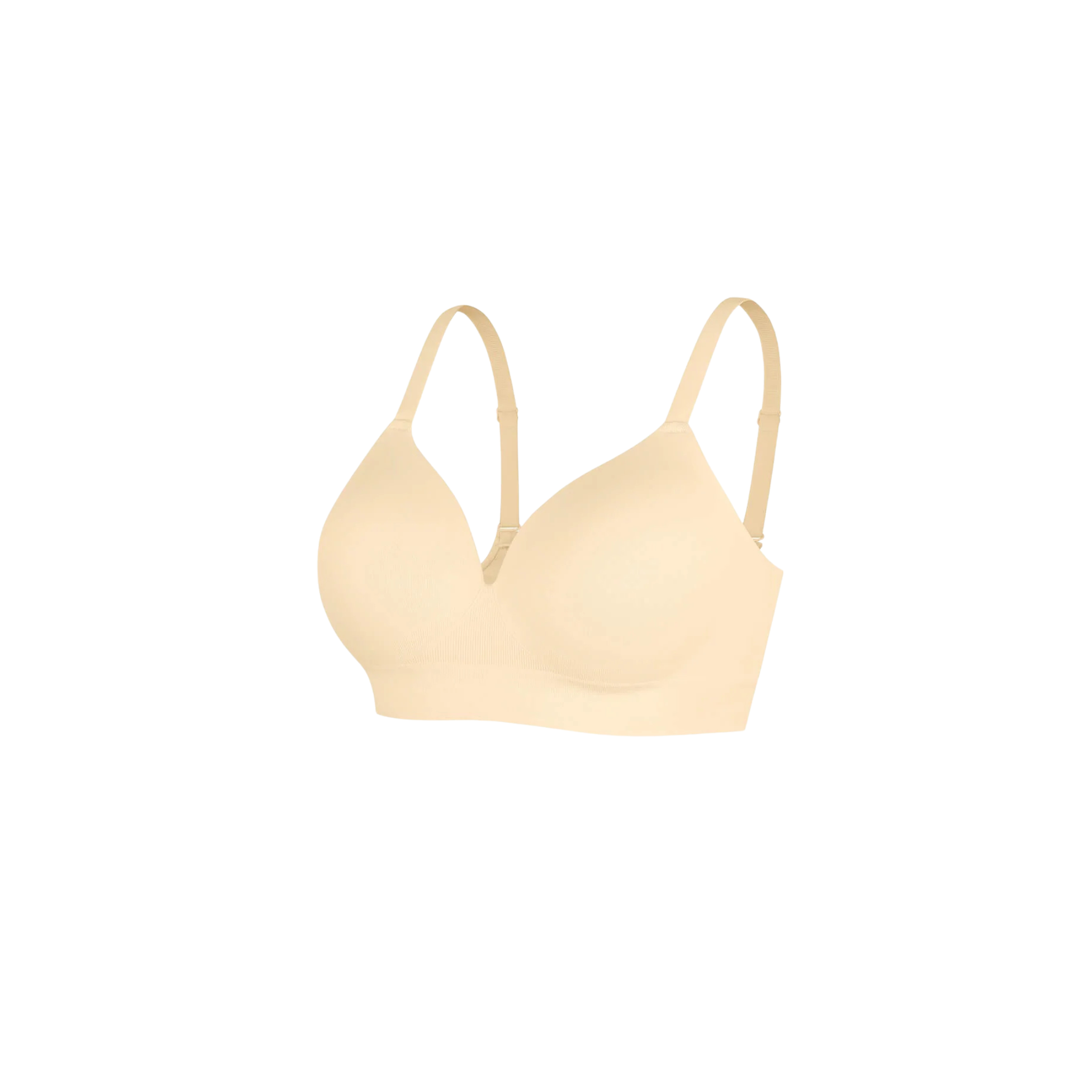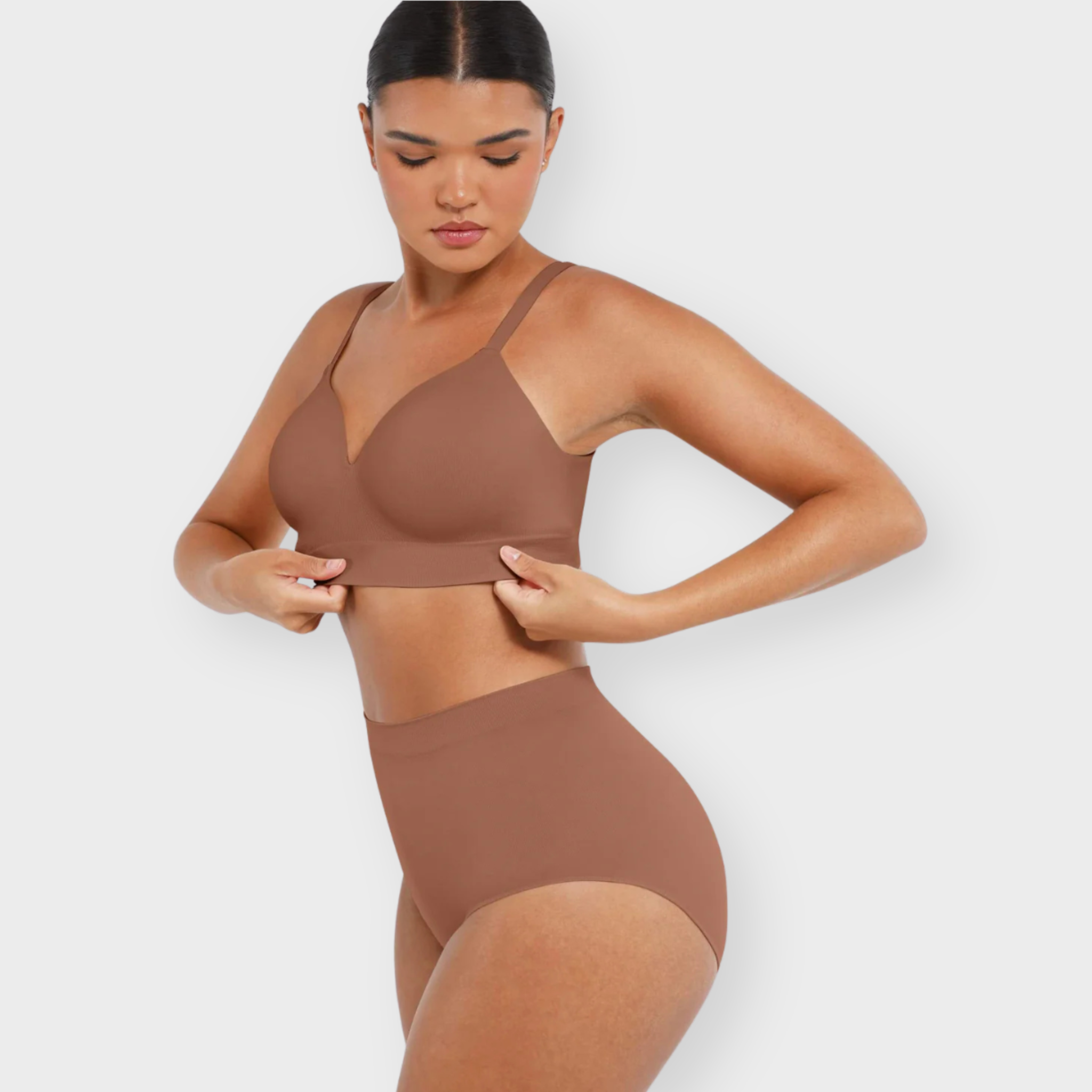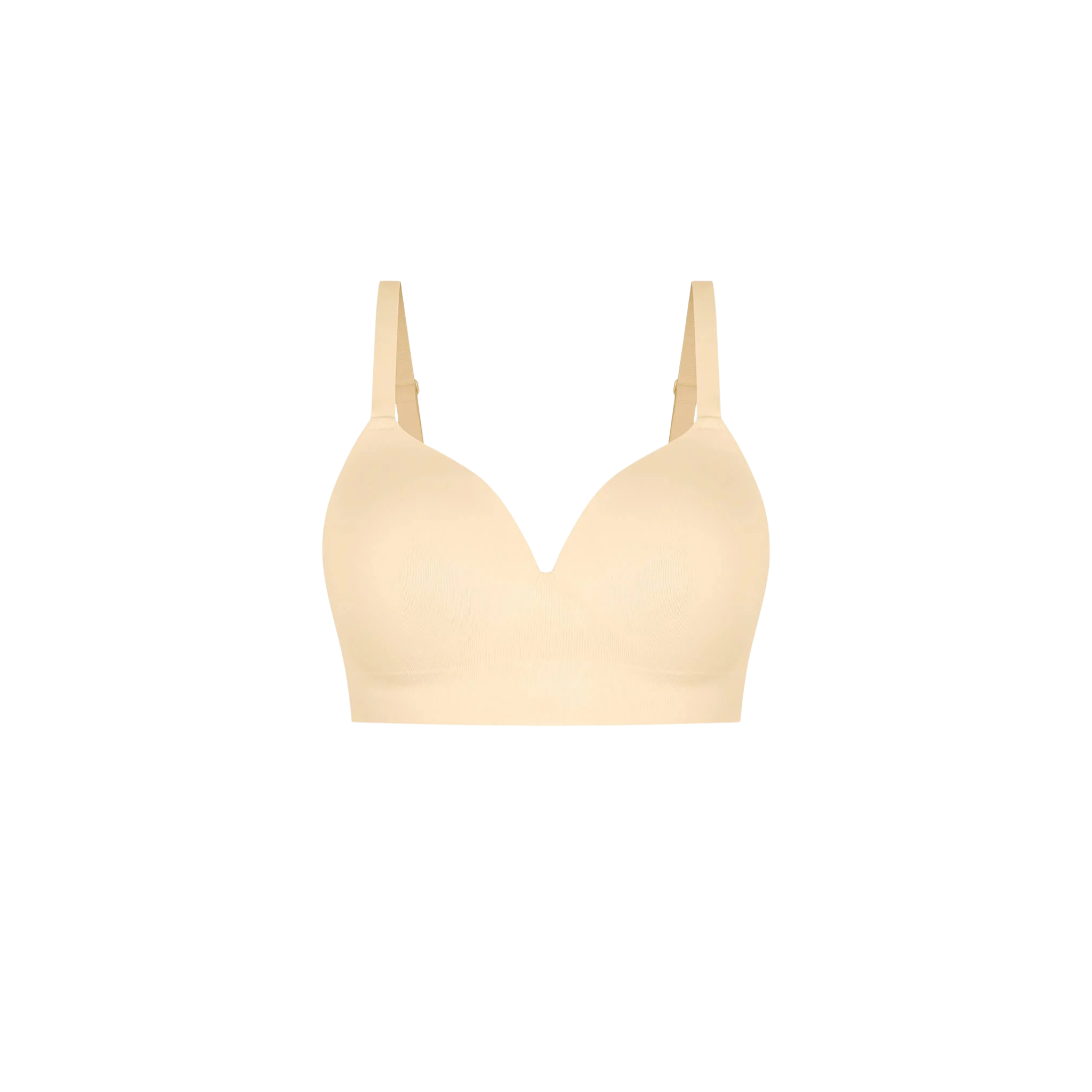 Seamless, sculpting, and wire-free. This shapewear bra features integrated foam cups for natural lift and smooth support—without the underwire. A double-layered body ensures a sleek look under clothes, while a reinforced band stays in place without digging or rolling. Designed for all-day versatility, it includes adjustable, removable straps for cross-back, one-shoulder, or classic styling. Finished with a three-row hook closure and an extender for a customizable fit.
