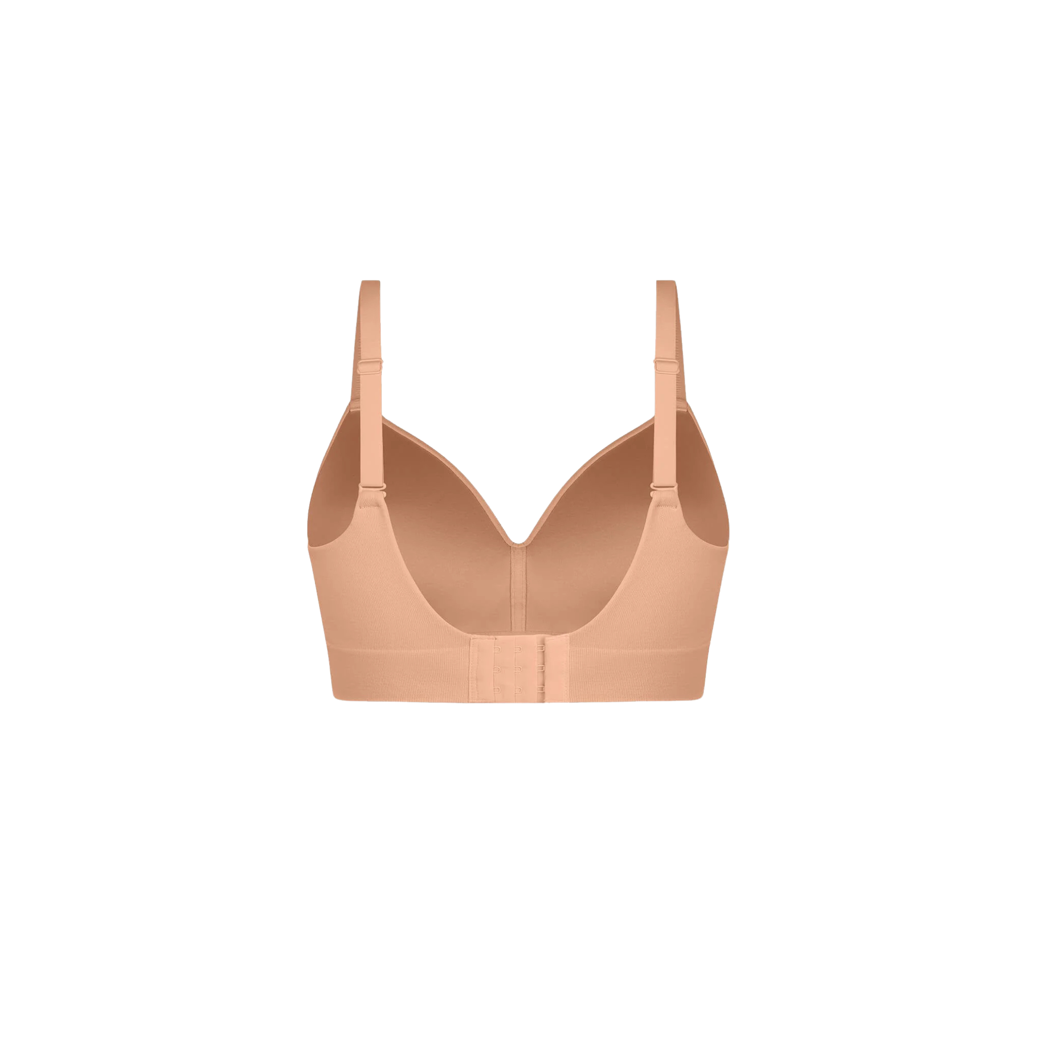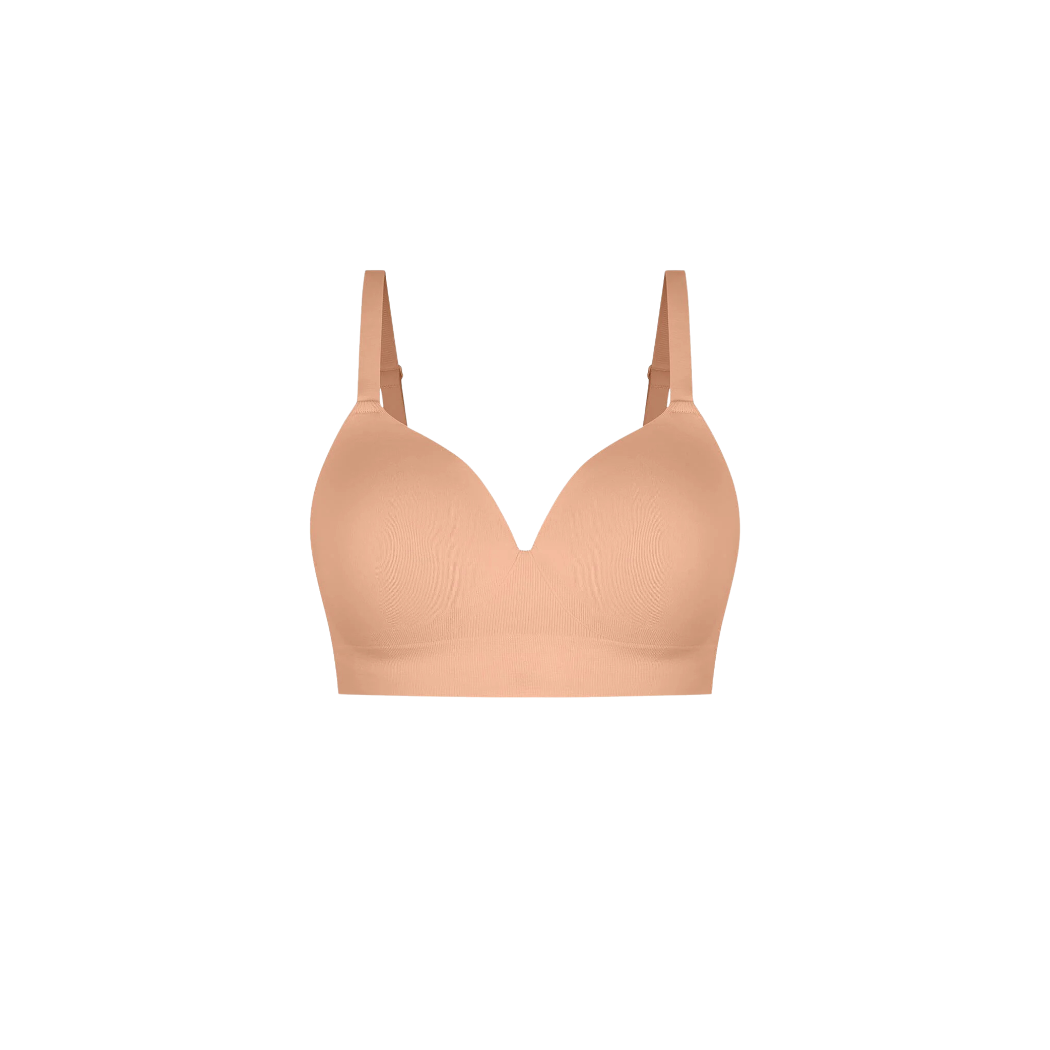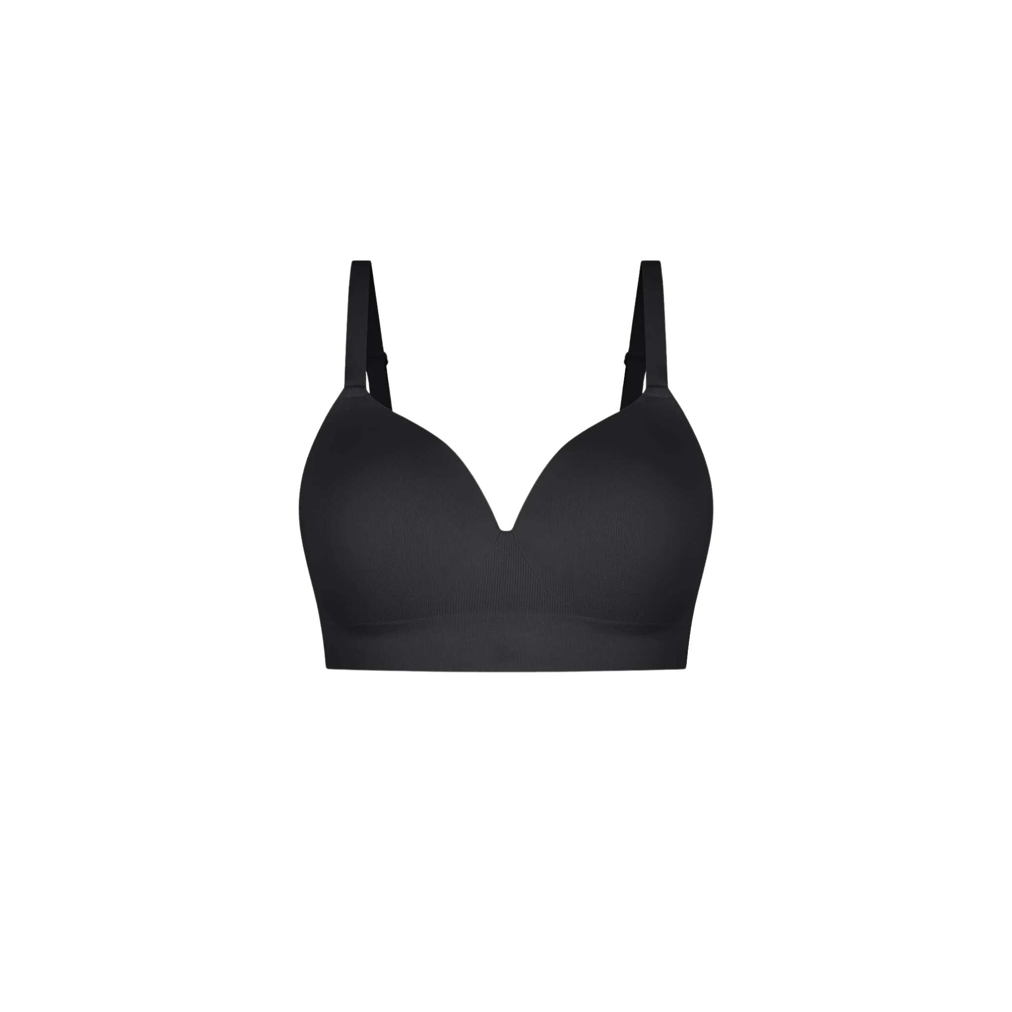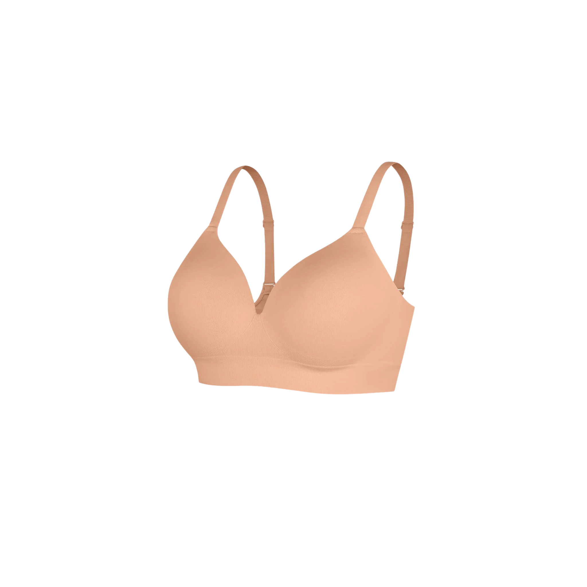 Seamless, sculpting, and wire-free. This shapewear bra features integrated foam cups for natural lift and smooth support—without the underwire. A double-layered body ensures a sleek look under clothes, while a reinforced band stays in place without digging or rolling. Designed for all-day versatility, it includes adjustable, removable straps for cross-back, one-shoulder, or classic styling. Finished with a three-row hook closure and an extender for a customizable fit.