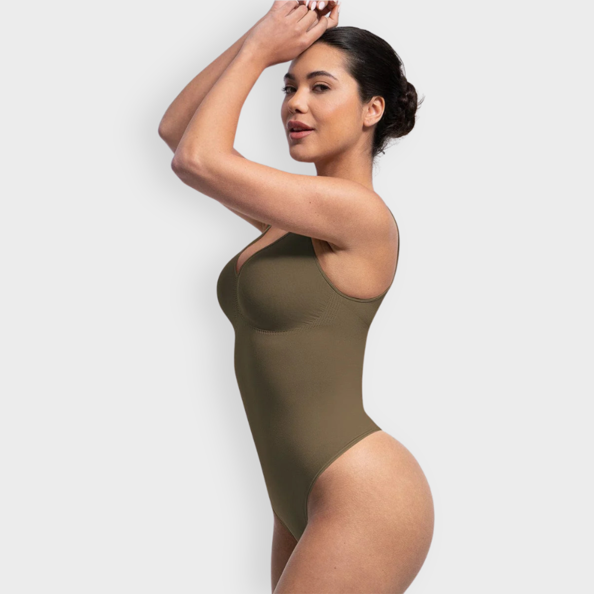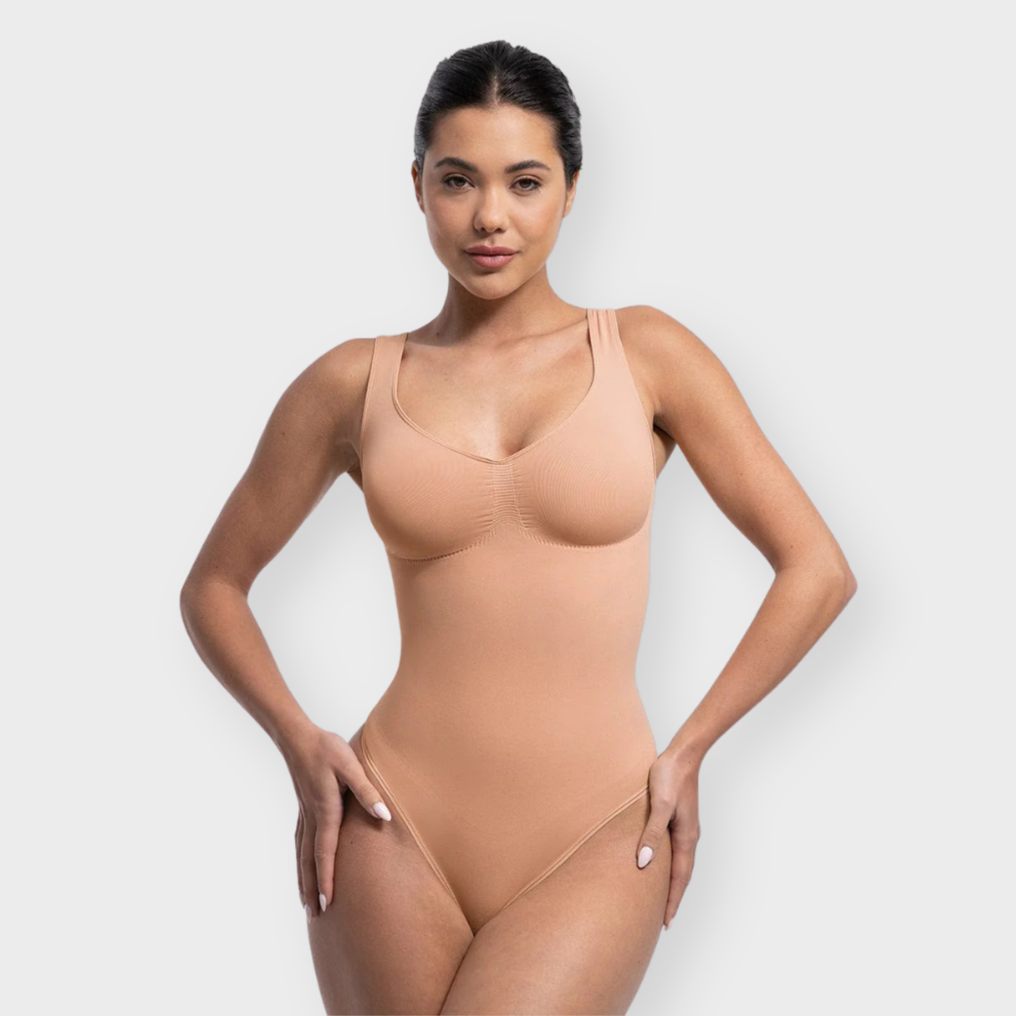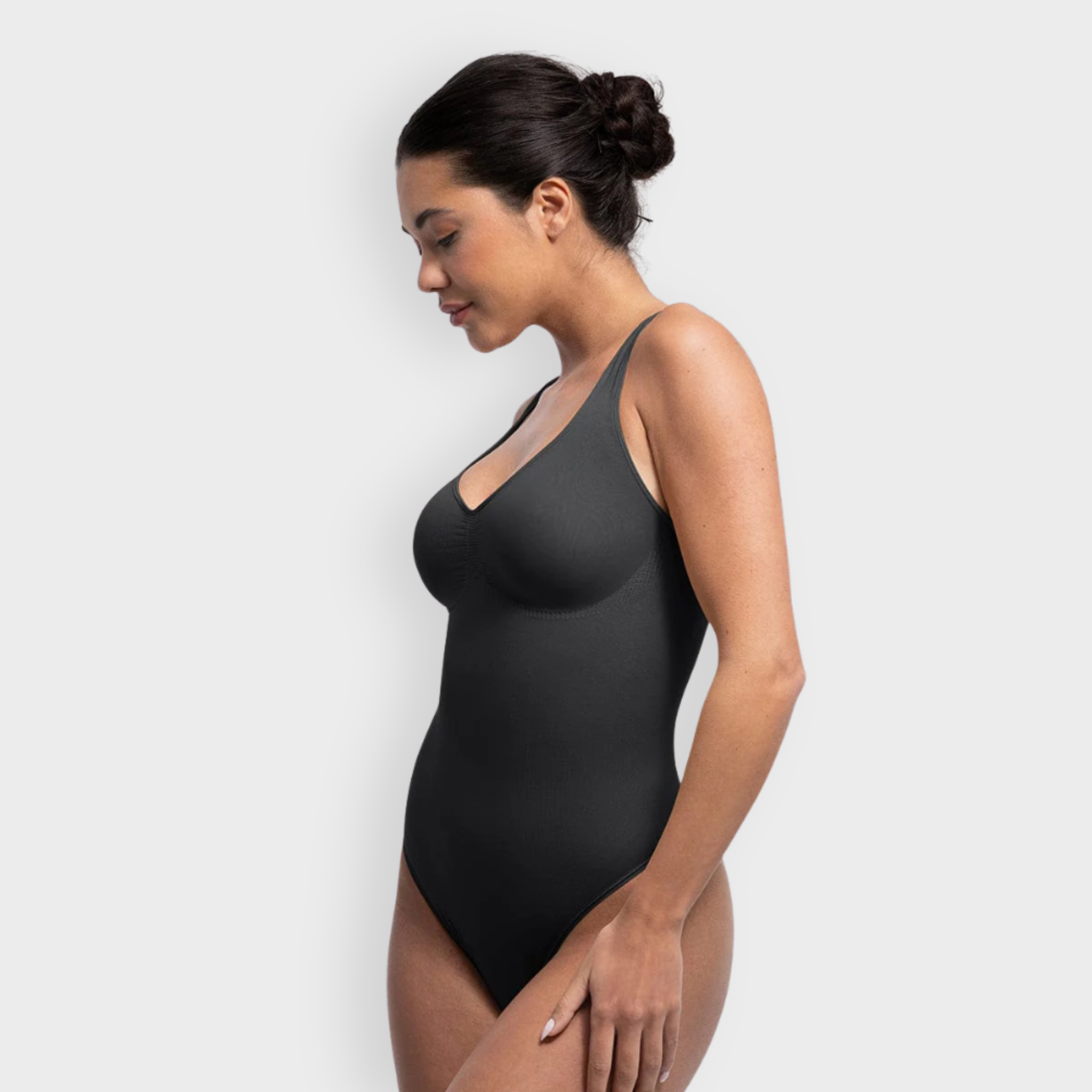 This sculpting thong bodysuit is crafted with a flattering diamond neckline and ruched bust that enhances your natural shape without wires. Built-in underbust support lifts and defines, while smoothing fabric hugs the waist and tummy for a sleek silhouette. Designed for all-day comfort with wide straps, a breathable seamless construction, and a snap gusset for easy wear—so you feel supported, sculpted, and effortlessly you.