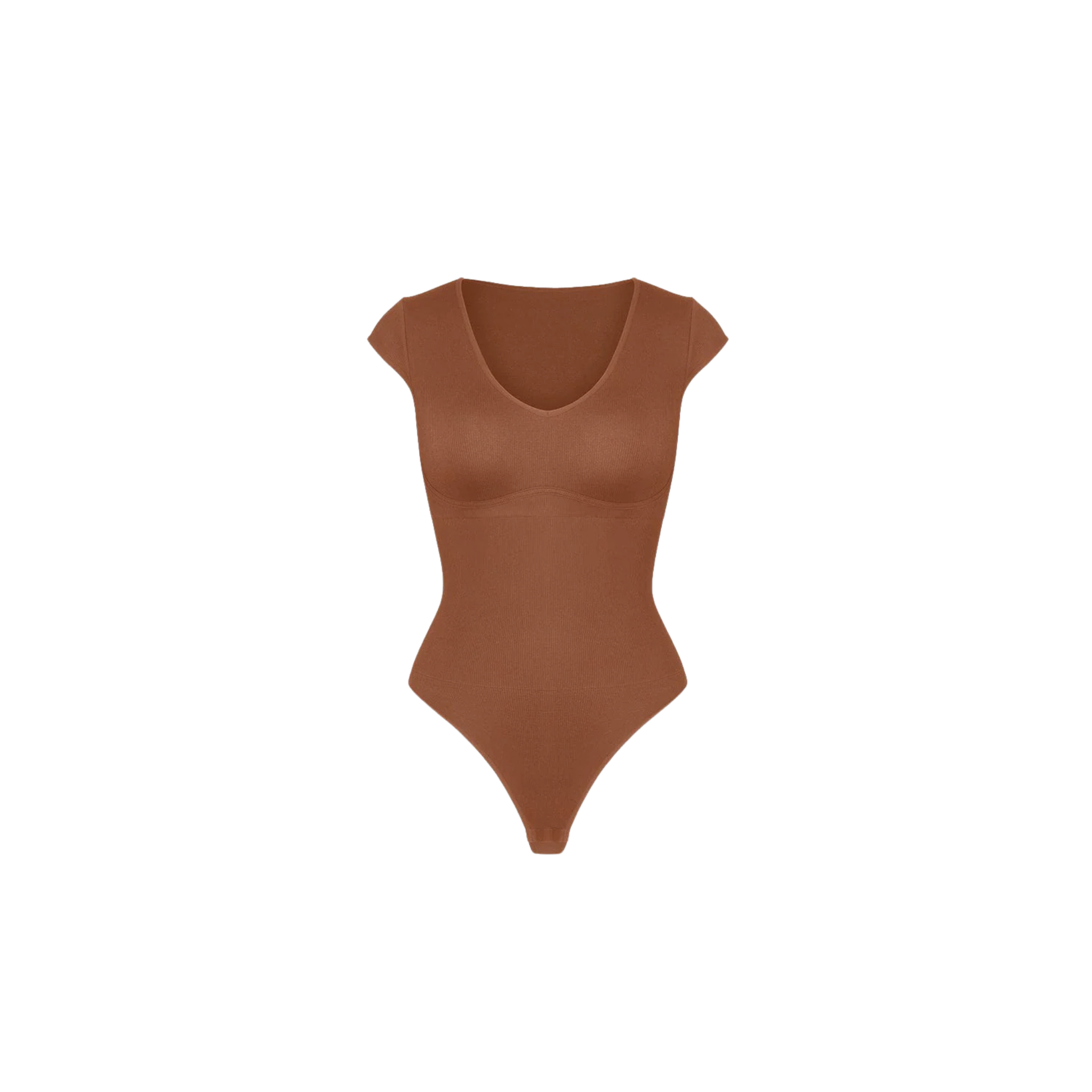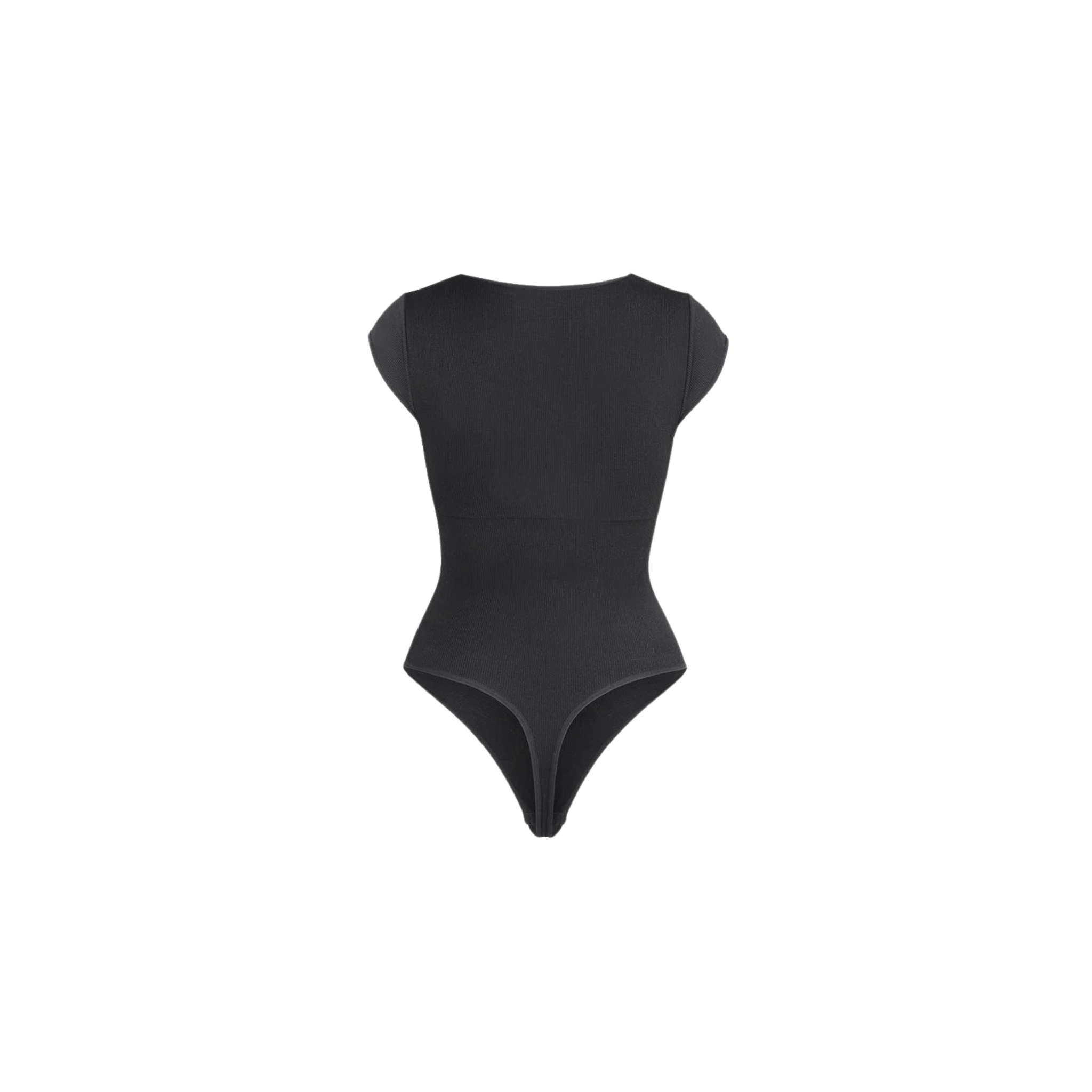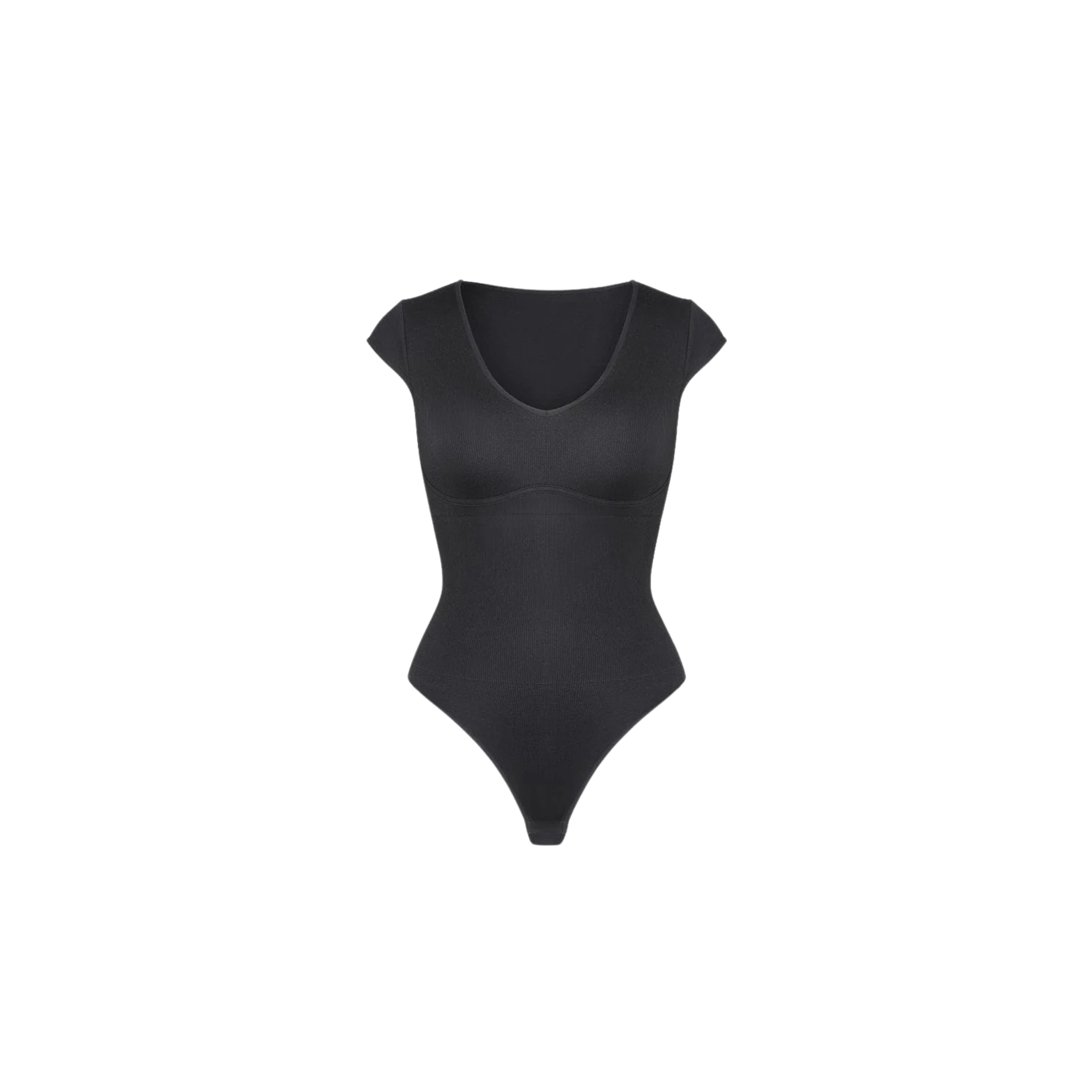 A sleek, confidence-boosting essential—this seamless thong bodysuit is designed to shape, support, and showcase. The plunging deep V neckline is framed by a structured underbust strap that delivers subtle lift and secure contouring. With a double-layered bust panel and removable cups, it offers opacity and the freedom to go bra-free. The waist and abdomen are sculpted by a full-circle tight-knit core, while the antibacterial crotch lining ensures all-day freshness and peace of mind. Seamless high-elastic yarn wraps your body like a second skin—no digging, no lines, just smooth confidence.