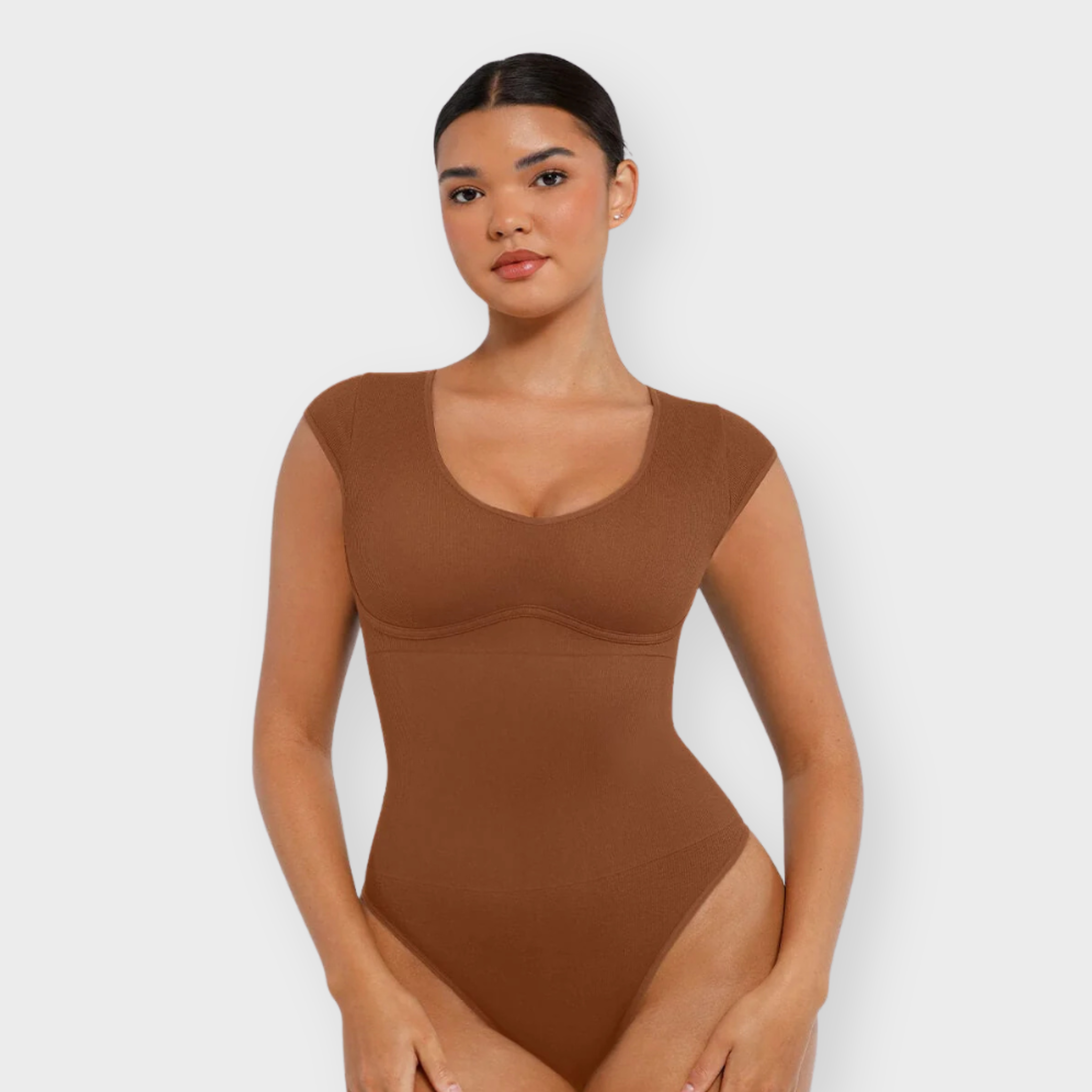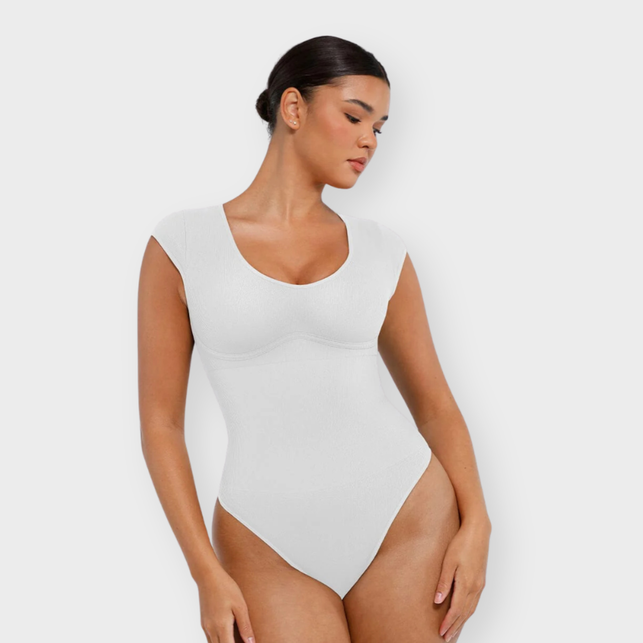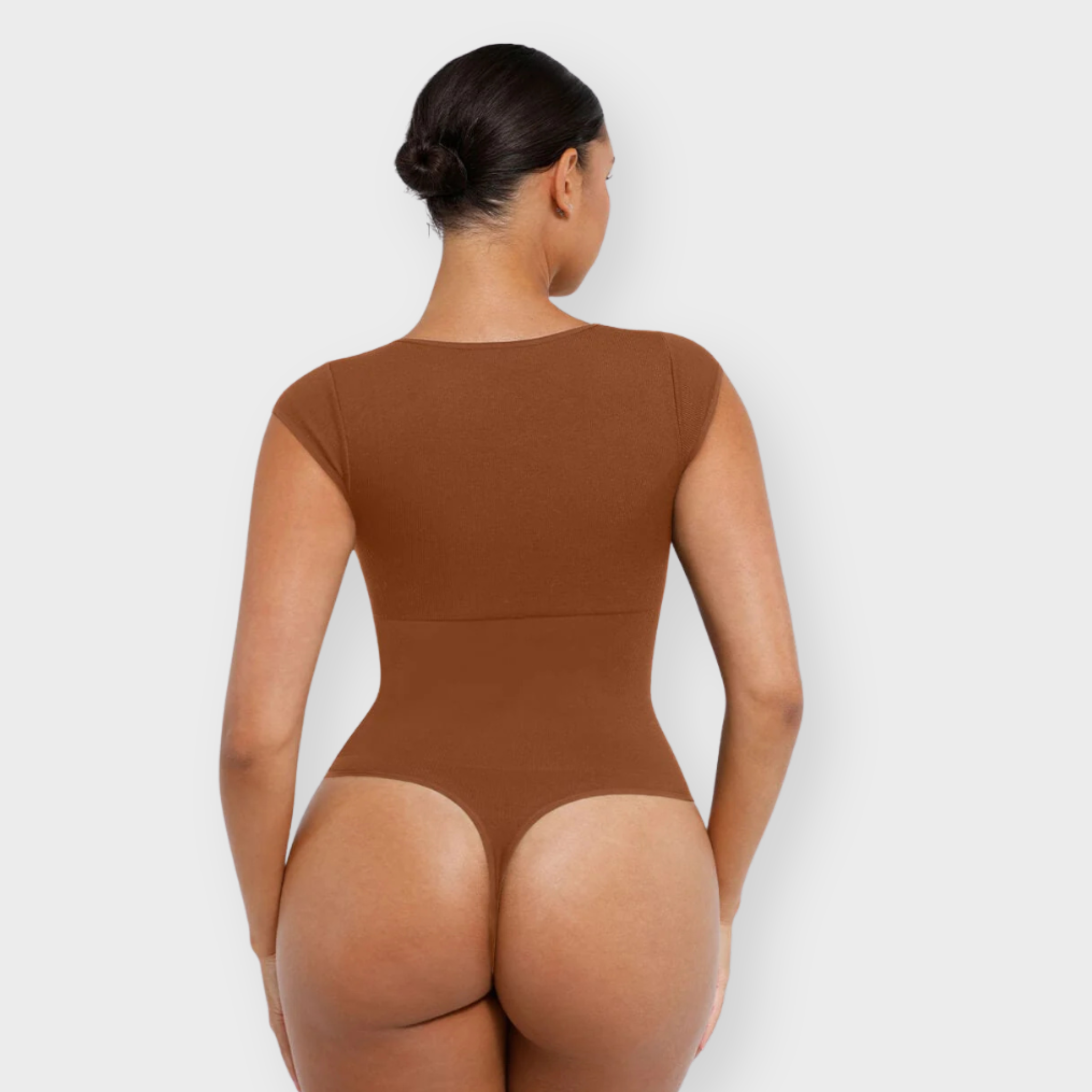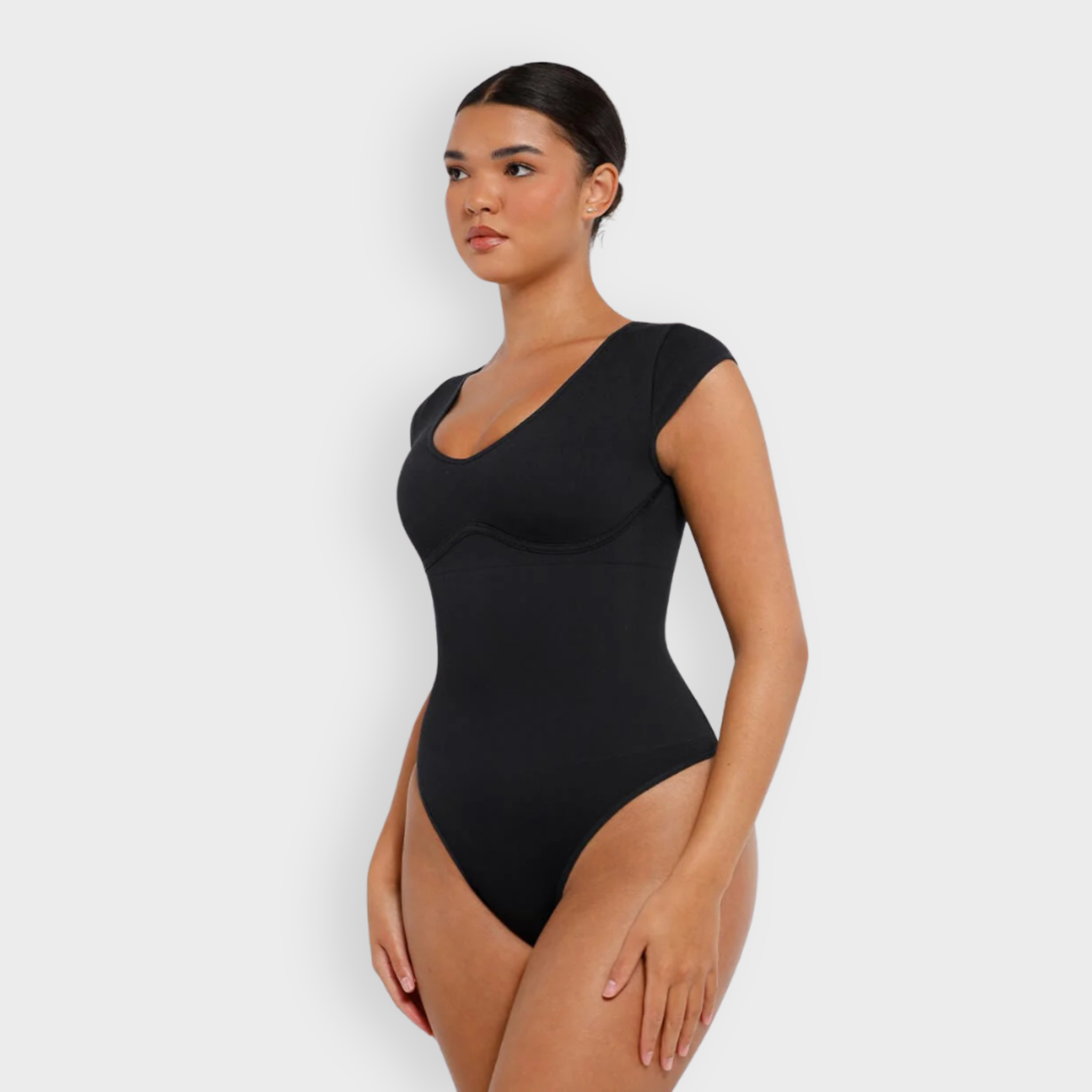 A sleek, confidence-boosting essential—this seamless thong bodysuit is designed to shape, support, and showcase. The plunging deep V neckline is framed by a structured underbust strap that delivers subtle lift and secure contouring. With a double-layered bust panel and removable cups, it offers opacity and the freedom to go bra-free. The waist and abdomen are sculpted by a full-circle tight-knit core, while the antibacterial crotch lining ensures all-day freshness and peace of mind. Seamless high-elastic yarn wraps your body like a second skin—no digging, no lines, just smooth confidence.