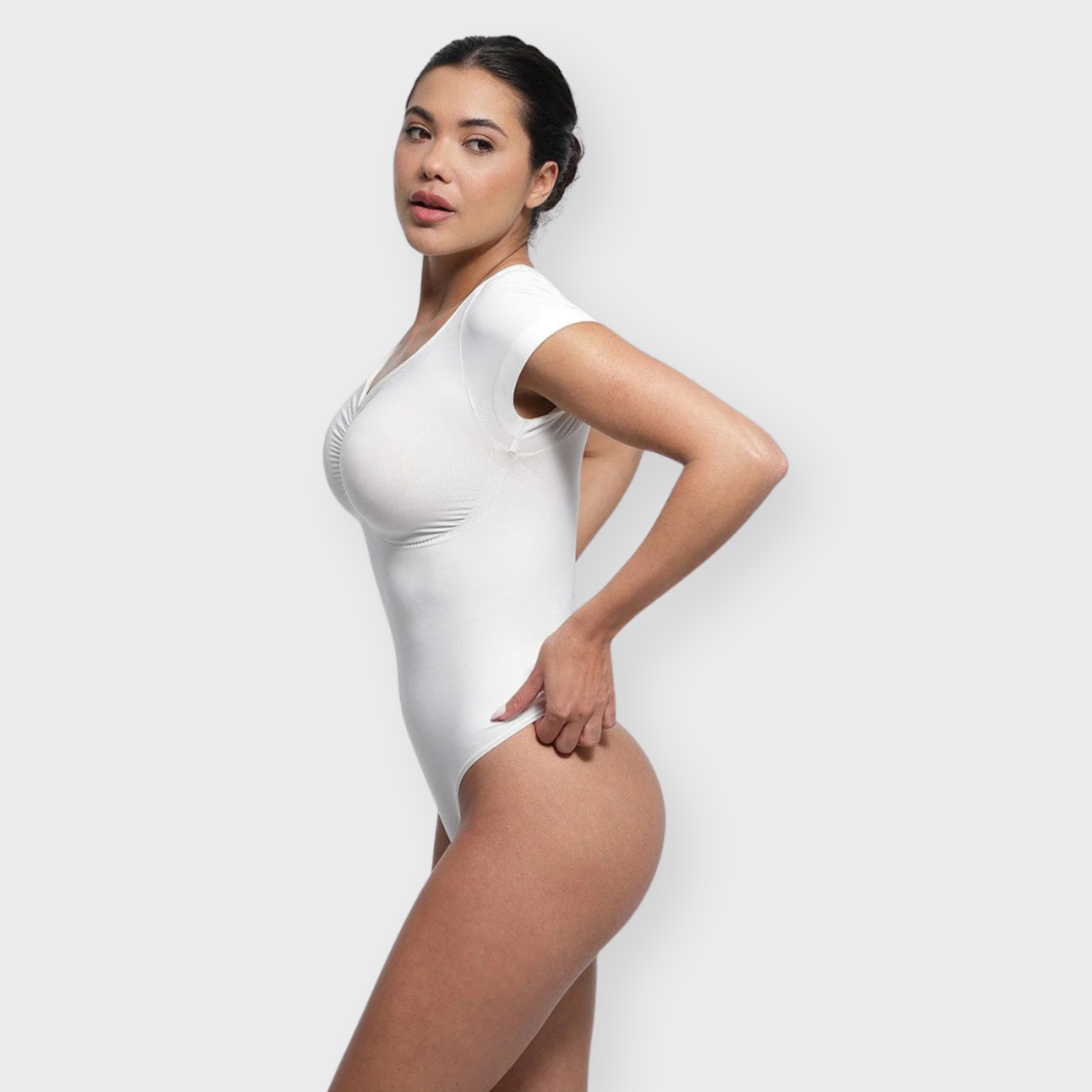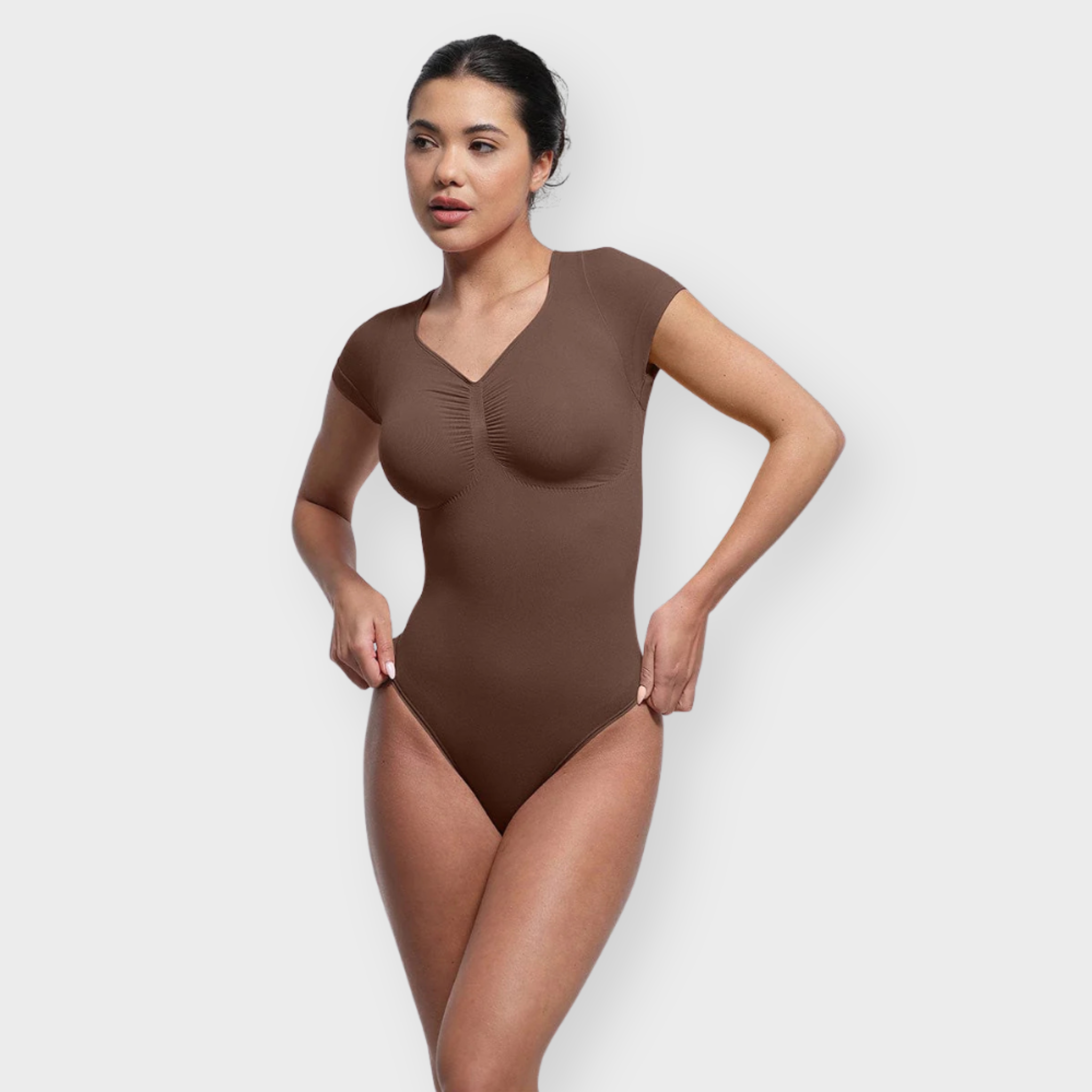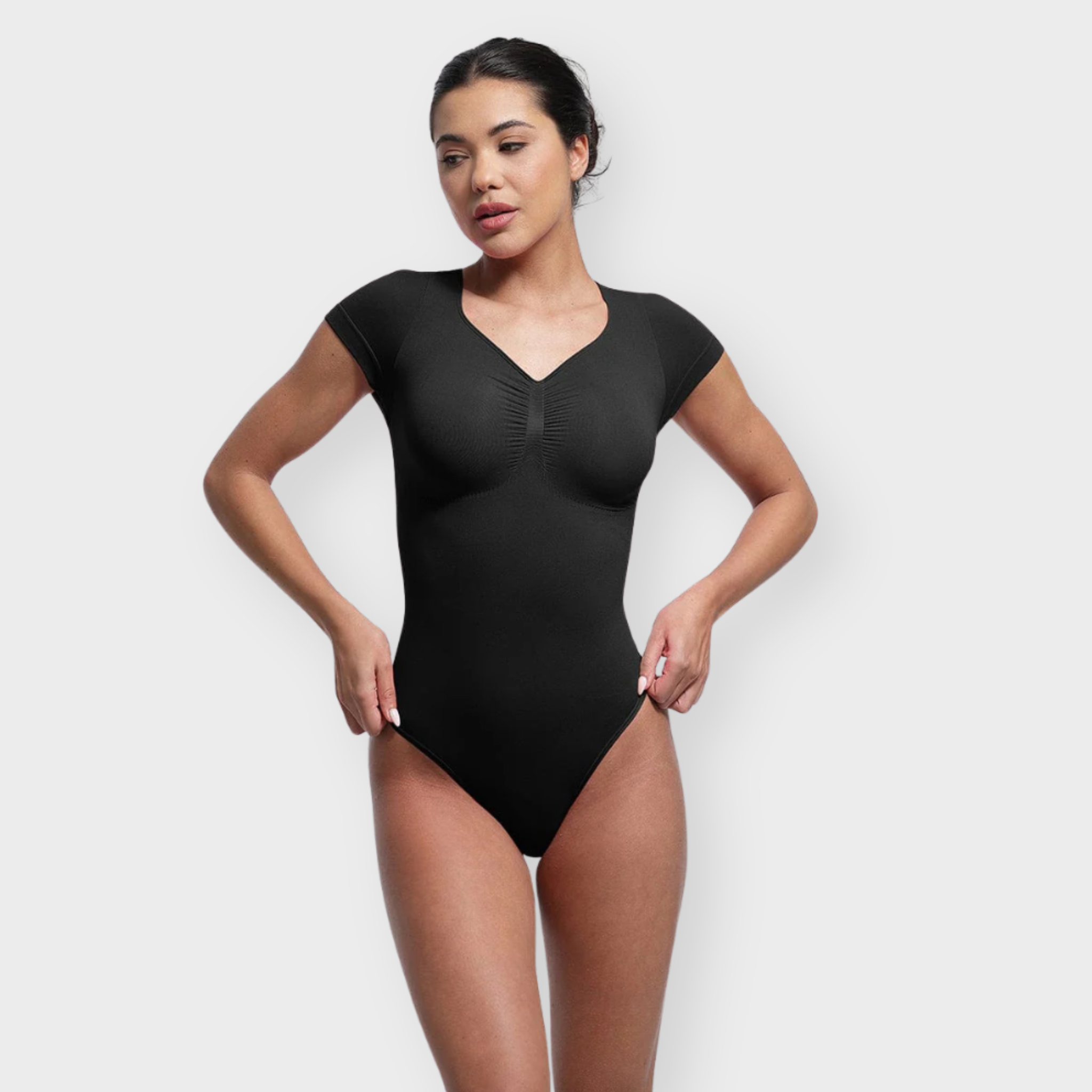 A sleek, supportive essential for everyday sculpting. This seamless thong bodysuit is engineered with targeted bust support and firm tummy control to flatter your natural shape. The elegant diamond neckline accentuates your collarbone while offering refined versatility—ideal for layering under denim, trousers, or tailored pieces. Designed to disappear under clothes, this bodysuit brings together elevated comfort and figure-enhancing design in one effortless silhouette.