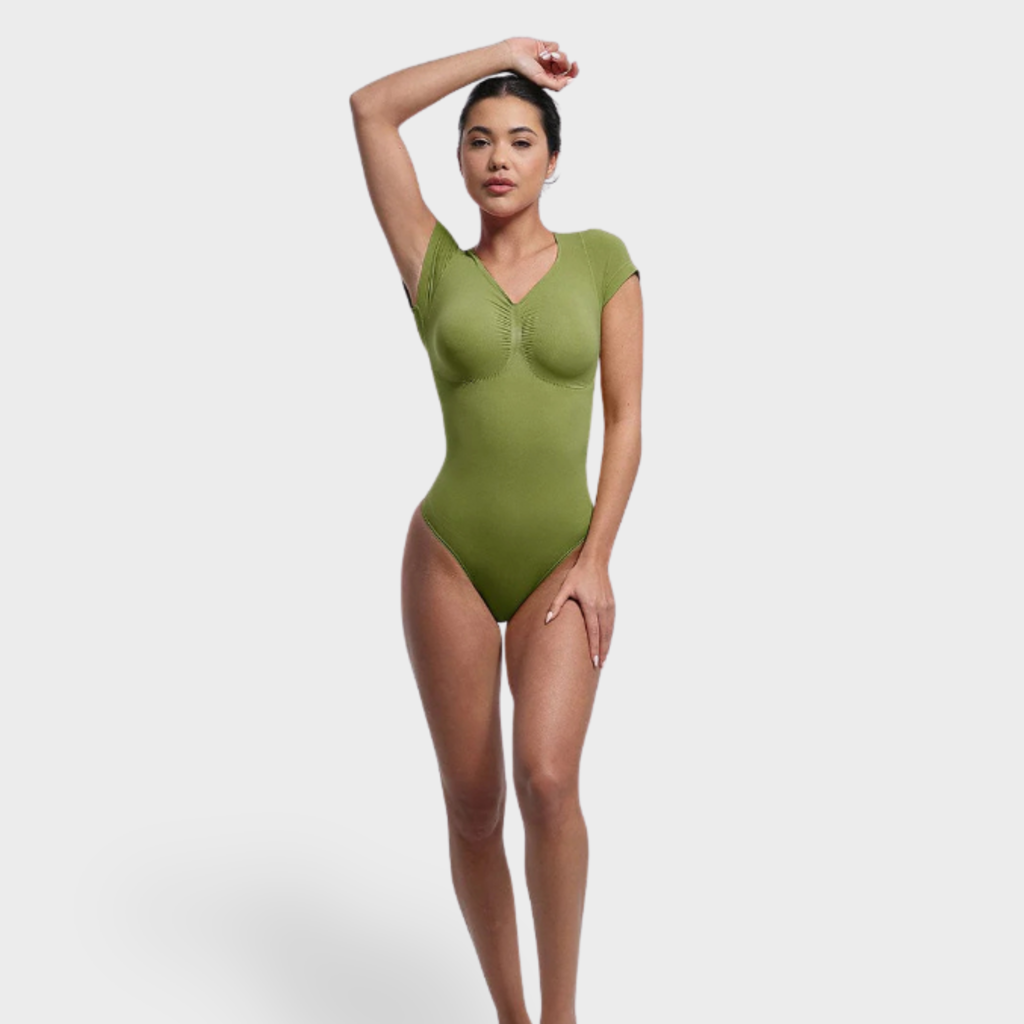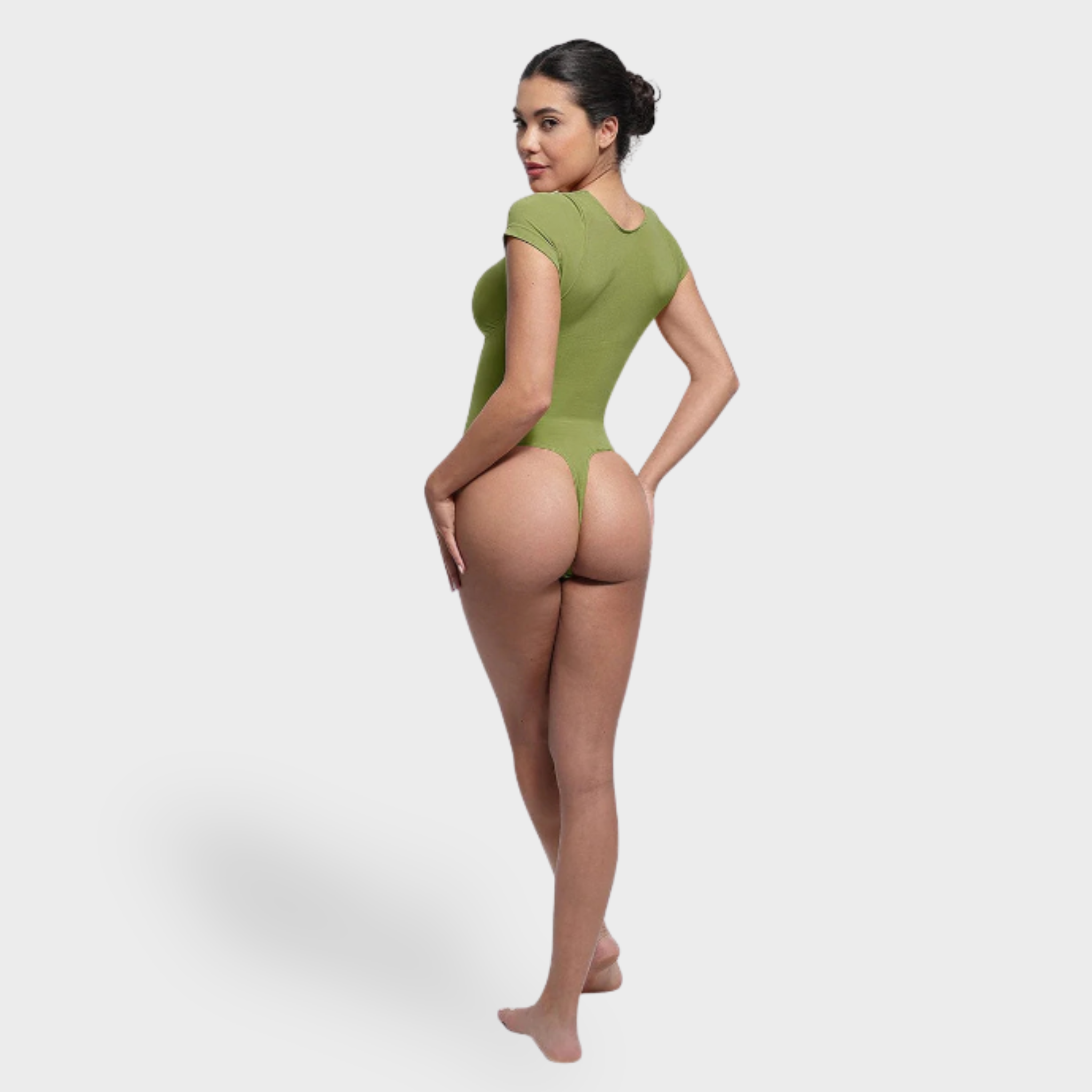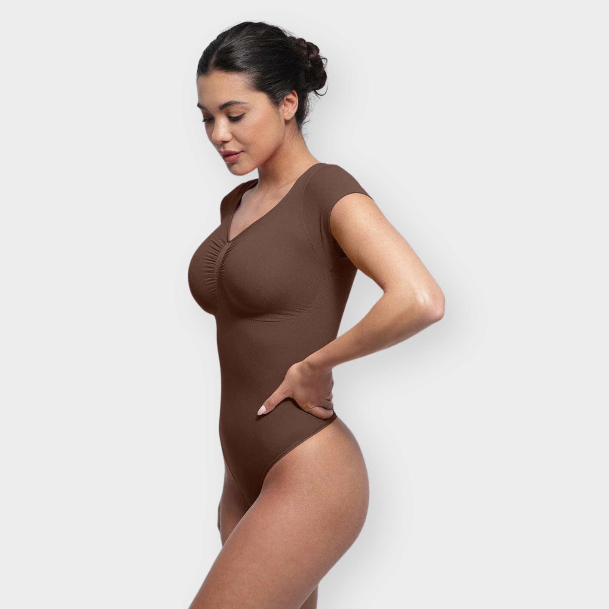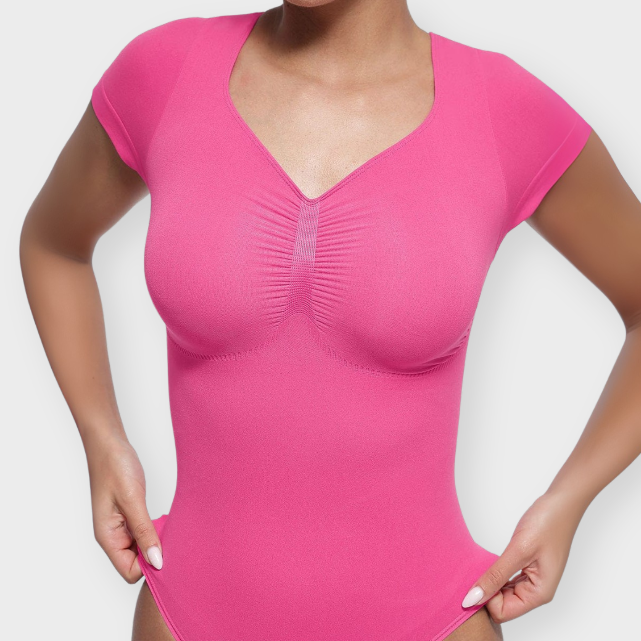 A sleek, supportive essential for everyday sculpting. This seamless thong bodysuit is engineered with targeted bust support and firm tummy control to flatter your natural shape. The elegant diamond neckline accentuates your collarbone while offering refined versatility—ideal for layering under denim, trousers, or tailored pieces. Designed to disappear under clothes, this bodysuit brings together elevated comfort and figure-enhancing design in one effortless silhouette.