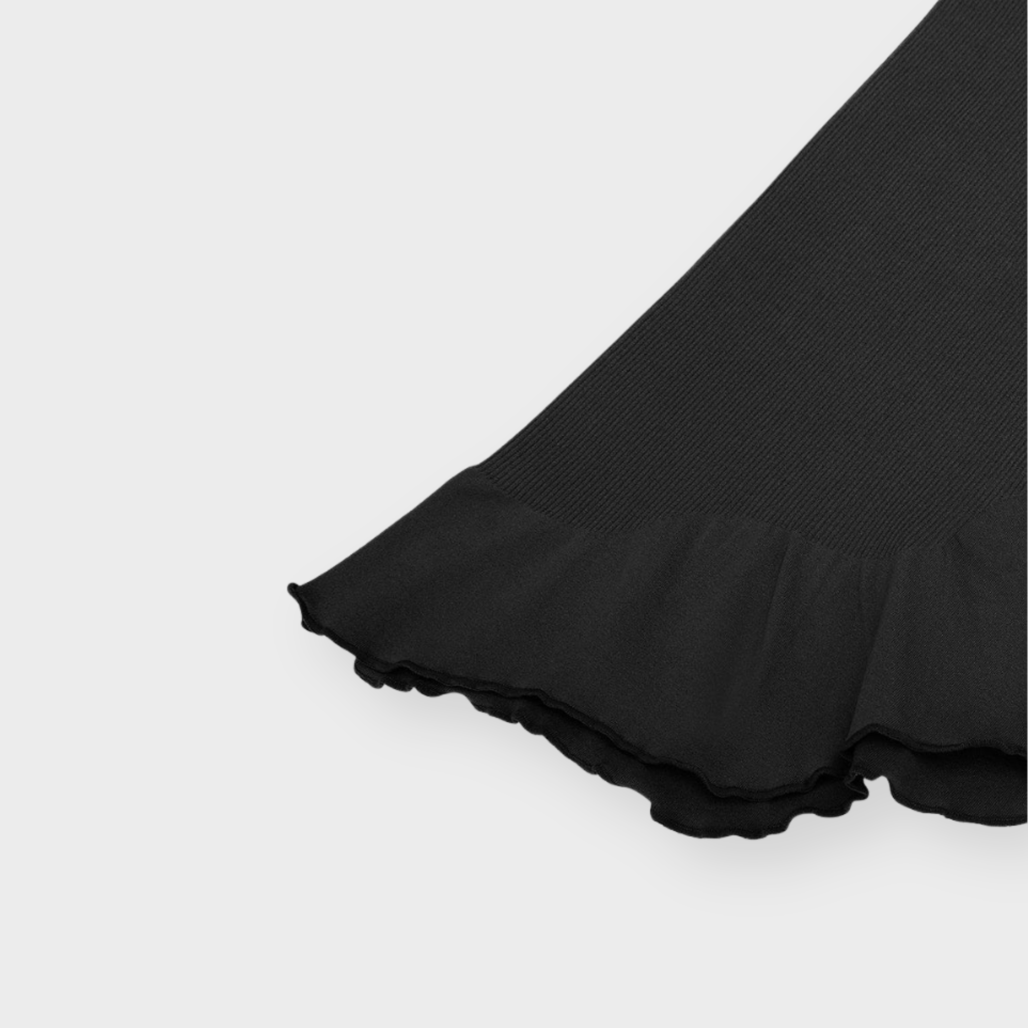 Asymmetrical ruffle hem adds a playful, feminine touch