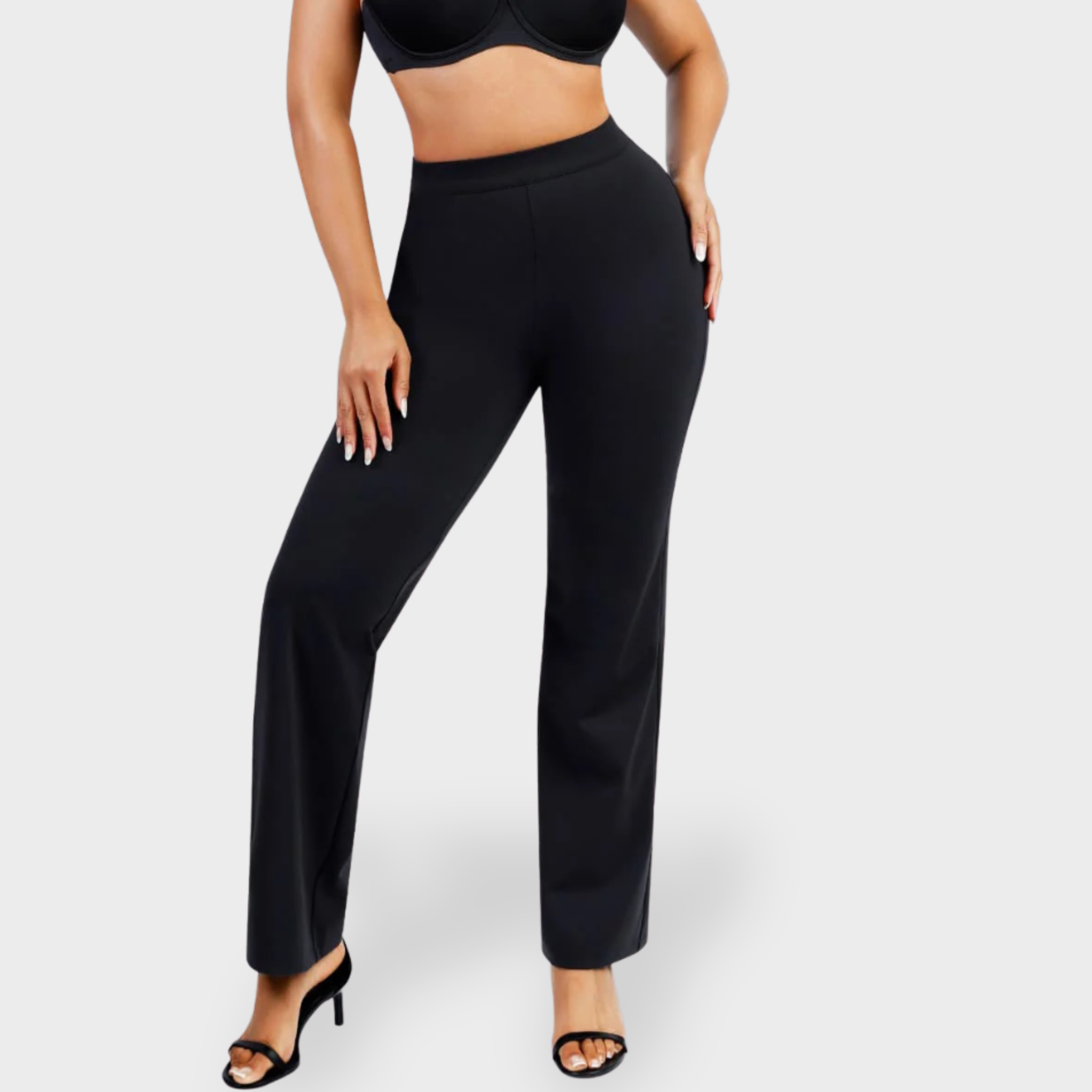 Designed for sculpted elegance, these waist-trimming straight-leg pants feature built-in shaping shorts that smooth and lift from within. Crafted from breathable Roman fabric with a structured drape, they elongate the legs, flatten the tummy, and enhance your natural curves — without sacrificing all-day comfort. Effortless to style, these pants go from day to night with ease.