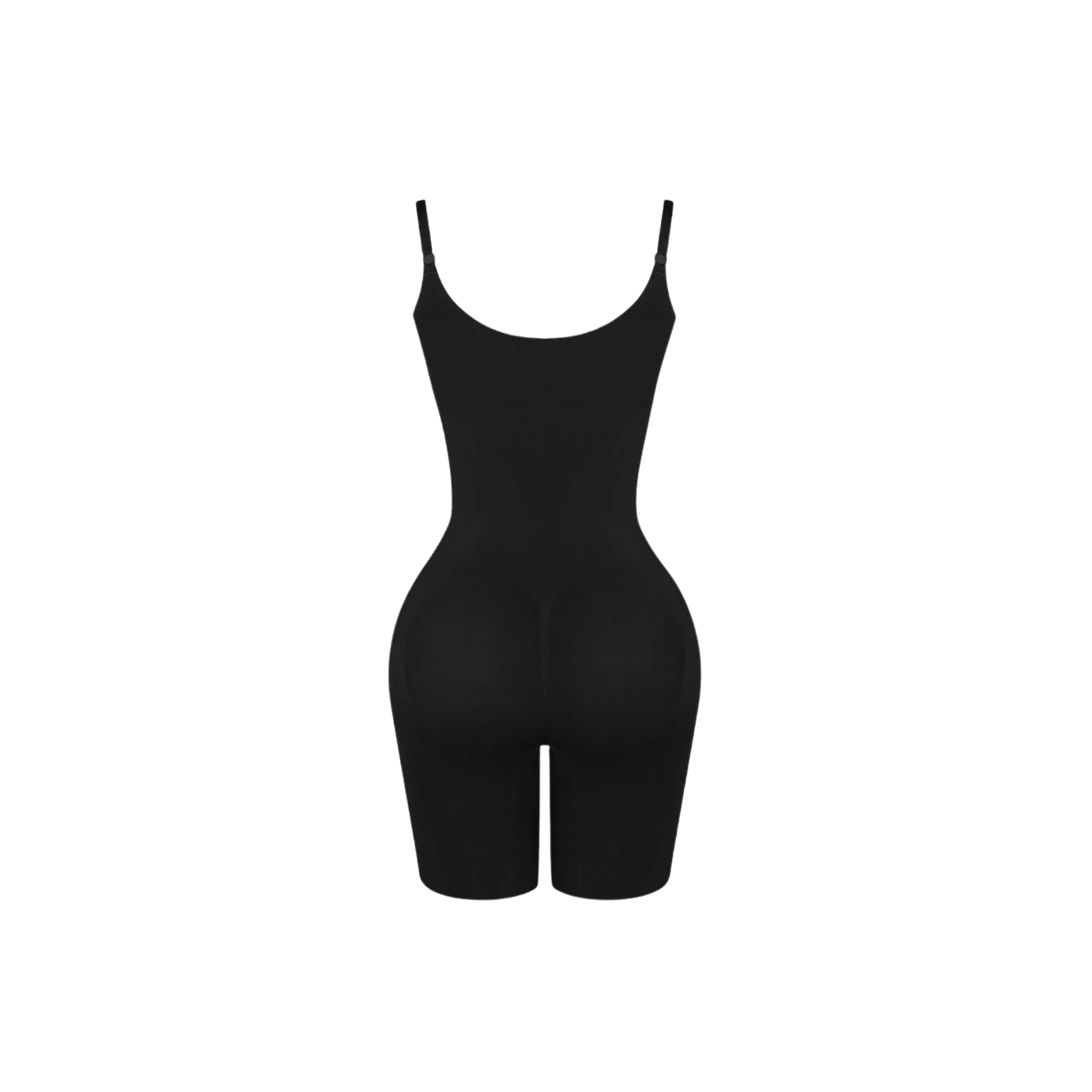Your everyday essential for seamless shaping. This open-bust mid-thigh bodysuit smooths from the waist down with lightweight LYCRA® stretch fabric that hugs like a second skin. Designed for wear with your own bra, it features push-up support, targeted tummy compression, and subtle contouring through the thighs and hips. A double shoulder strap system allows for an adjustable fit, while a layered crotch design offers all-day convenience.