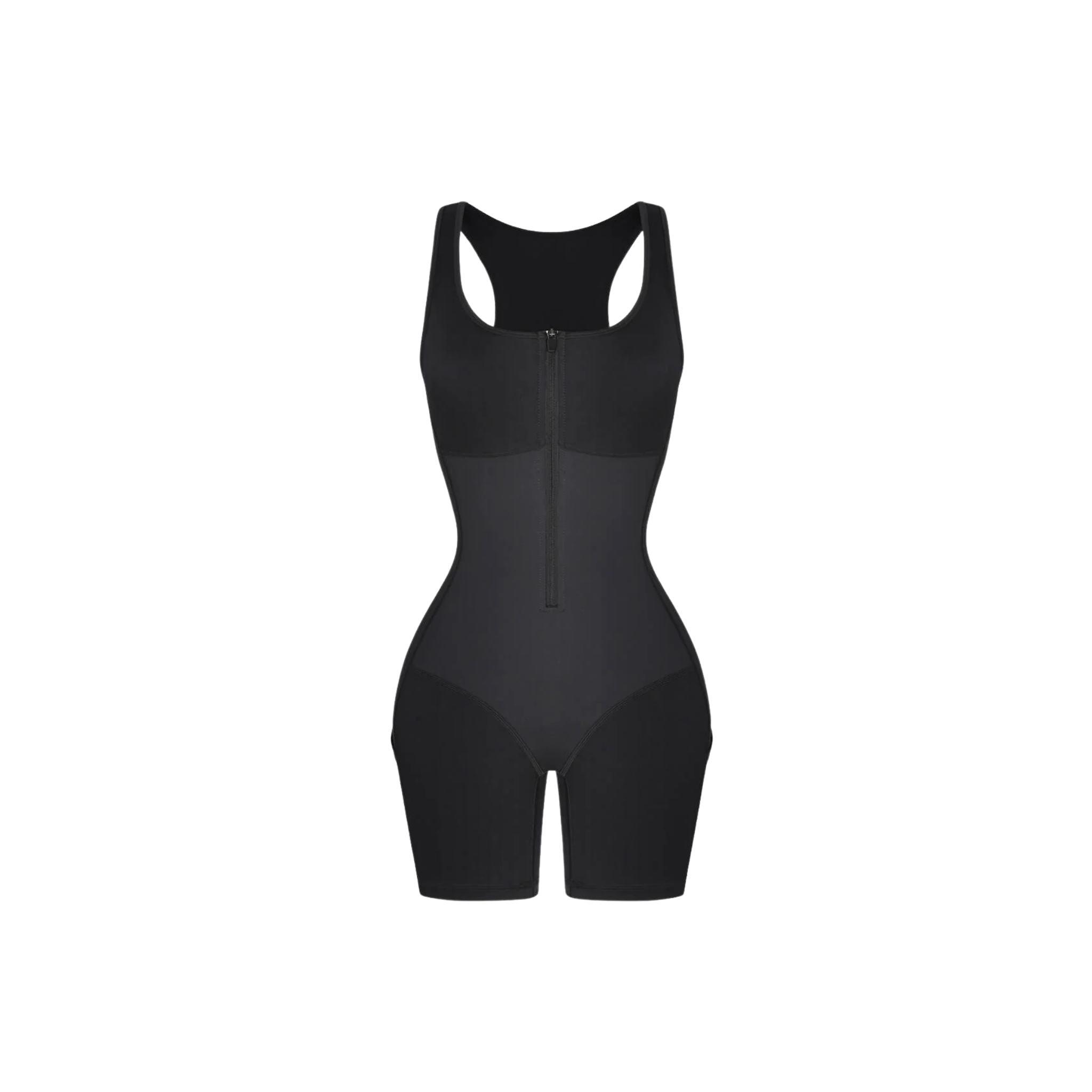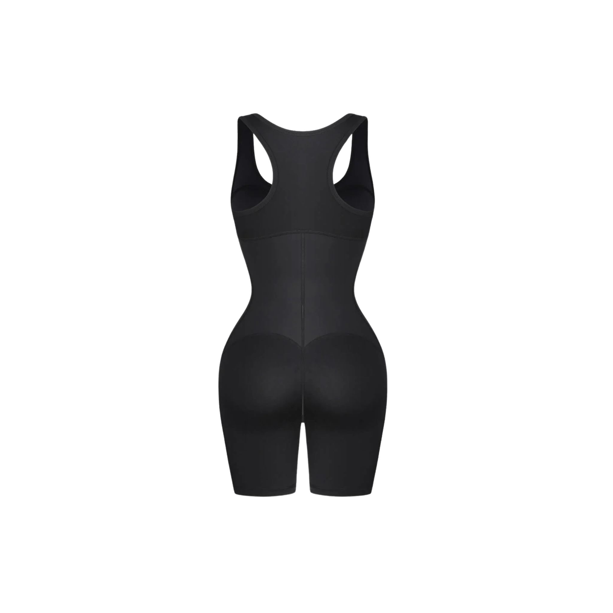 High-stretch sculpting fabric at hips and thighs for full-range comfort
