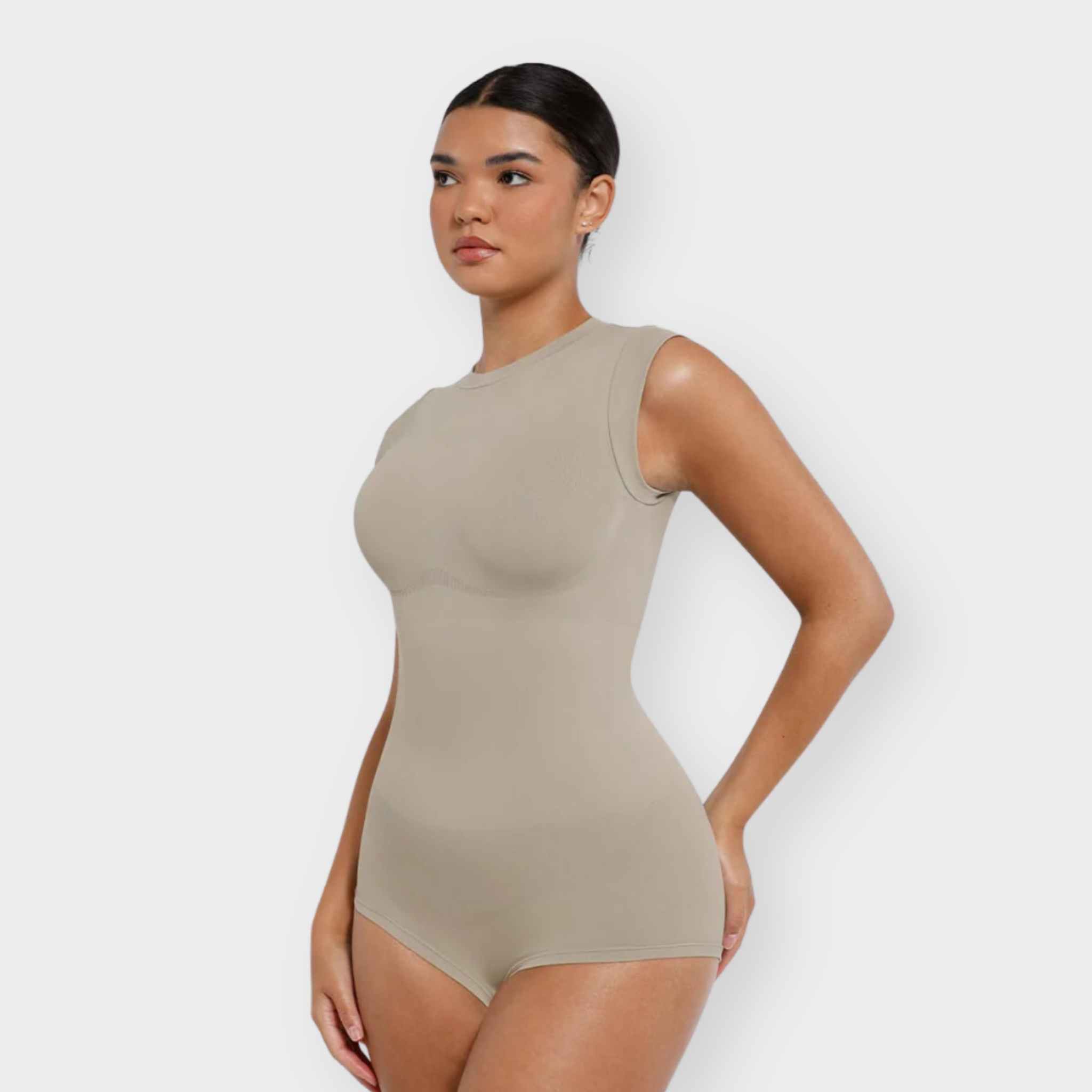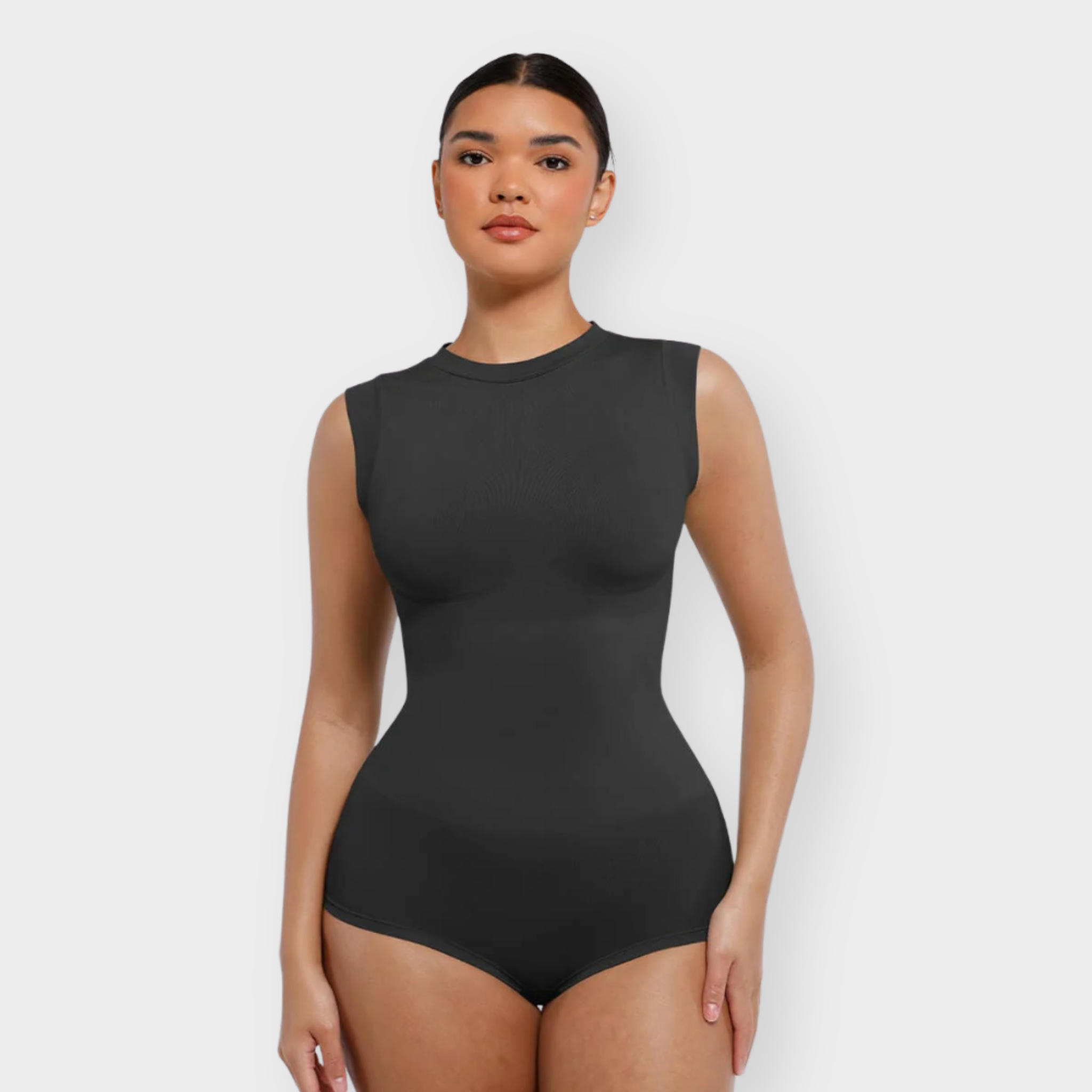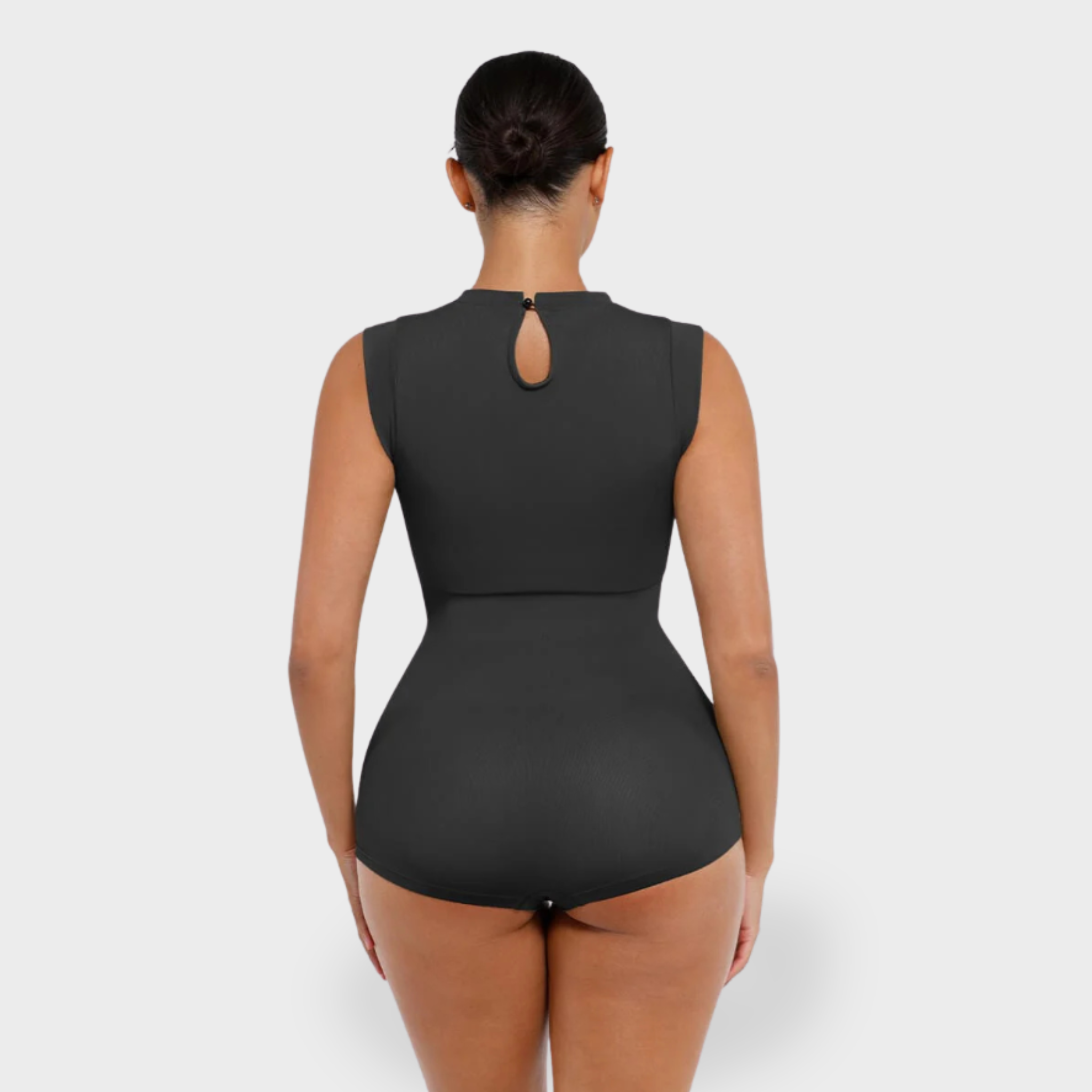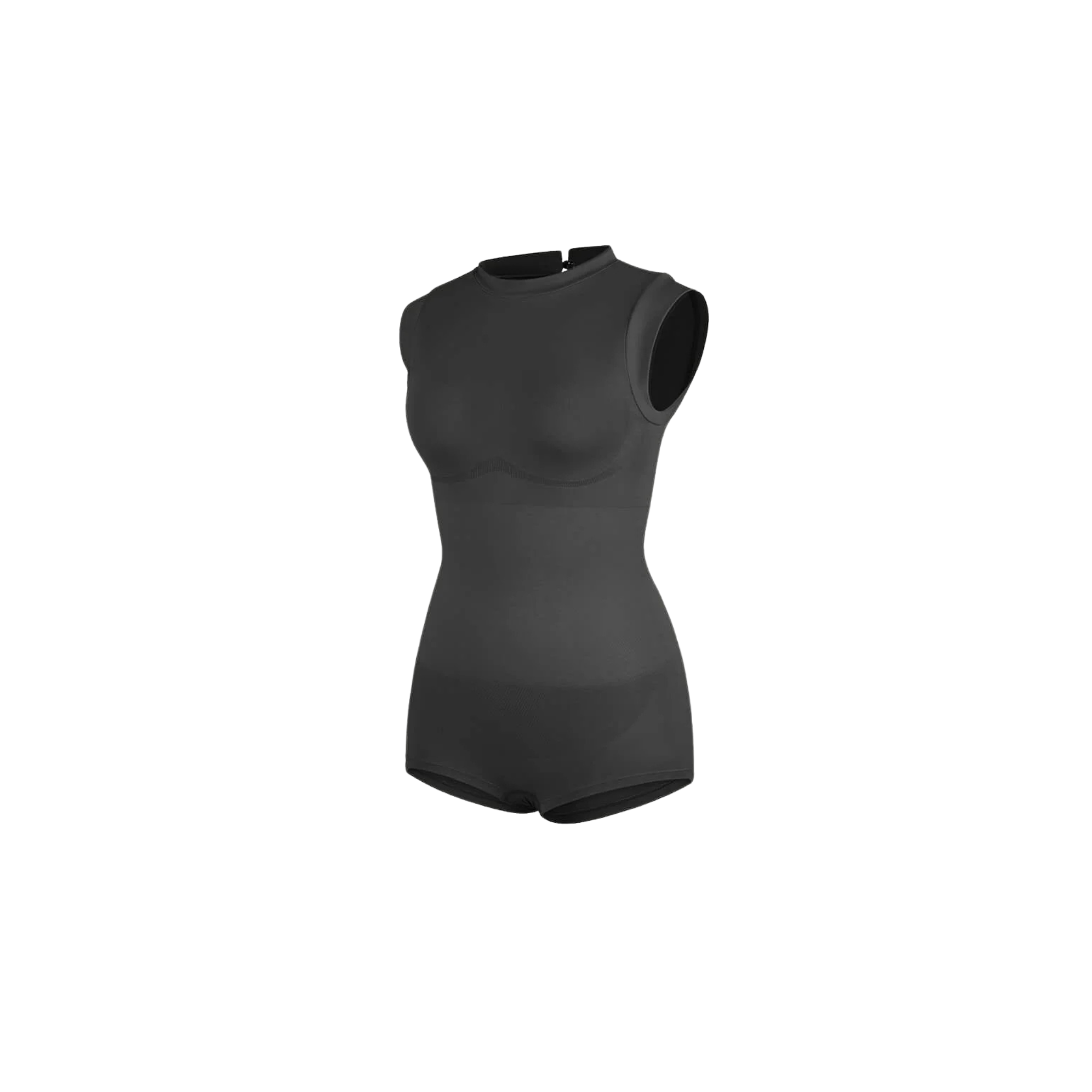 This cap-sleeve sculpting bodysuit blends everyday comfort with contouring power. Designed with a high neckline and trendy hot pants cut, it smooths the waist and abdomen while offering a polished, elegant silhouette. The water-drop back opening makes it easy to slip on, while the seamless knit hugs your curves with lightweight, second-skin softness. Antibacterial crotch fabric adds a thoughtful touch for all-day freshness. Whether worn as a base layer or a statement top, this body shaper moves with you—and works under everything.