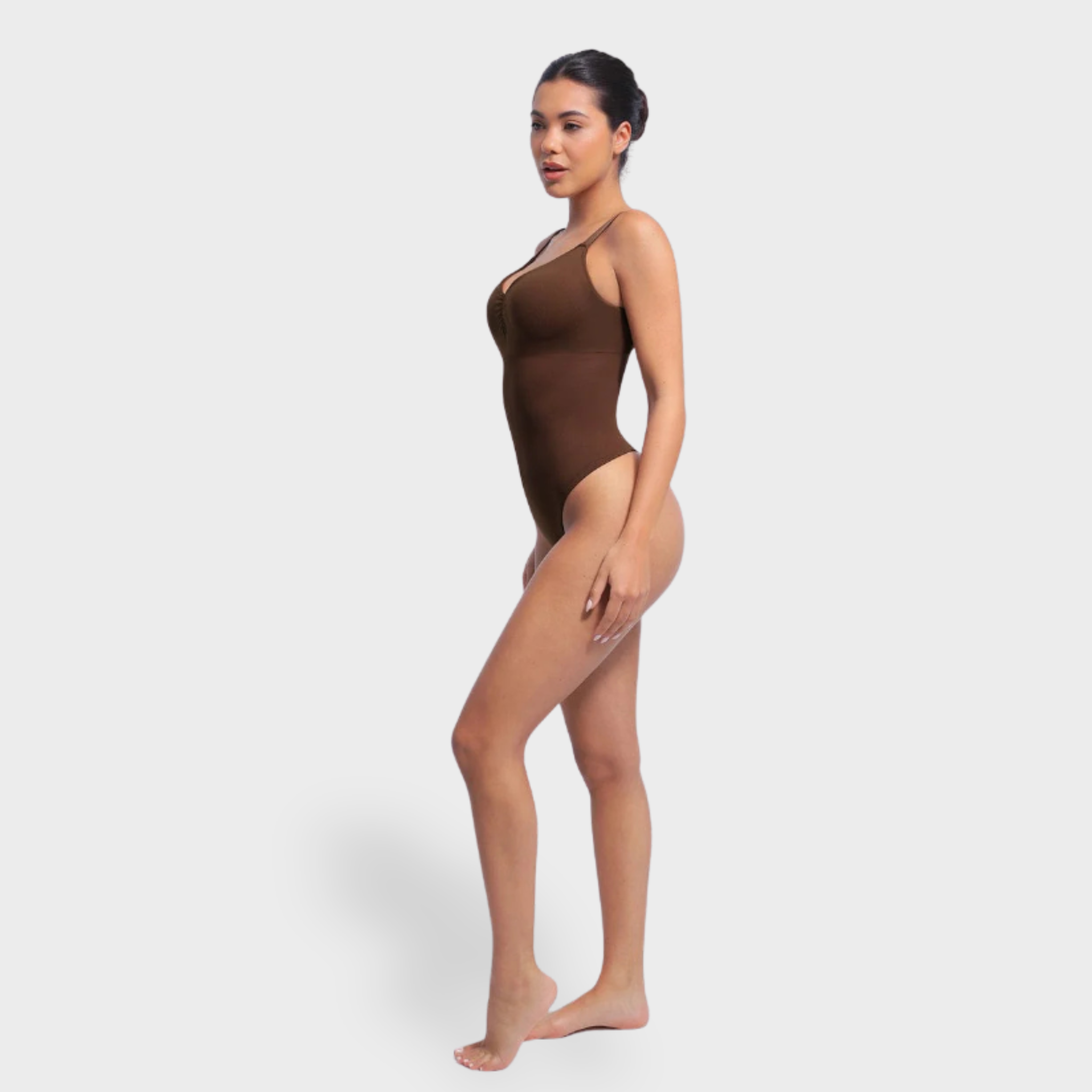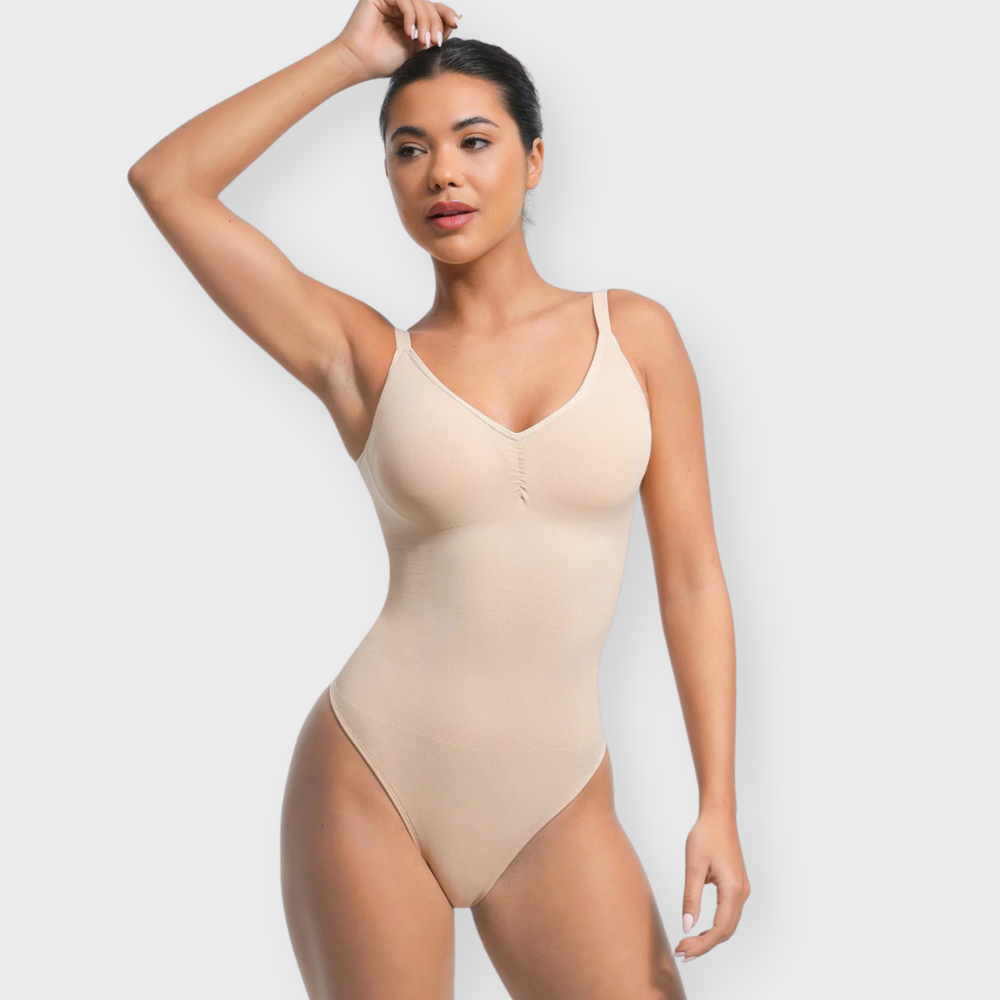 Your all-in-one foundation layer—designed to sculpt, support, and stay invisible. This thong bodysuit features a built-in bra with fixed cups for natural lift and no shifting, while the seamless construction smooths the waist and tummy for a clean silhouette. With adjustable straps and a snap gusset for all-day ease, it delivers second-skin comfort and shaping without the bulk. Wear it under everything or on its own for confident, curve-hugging support.