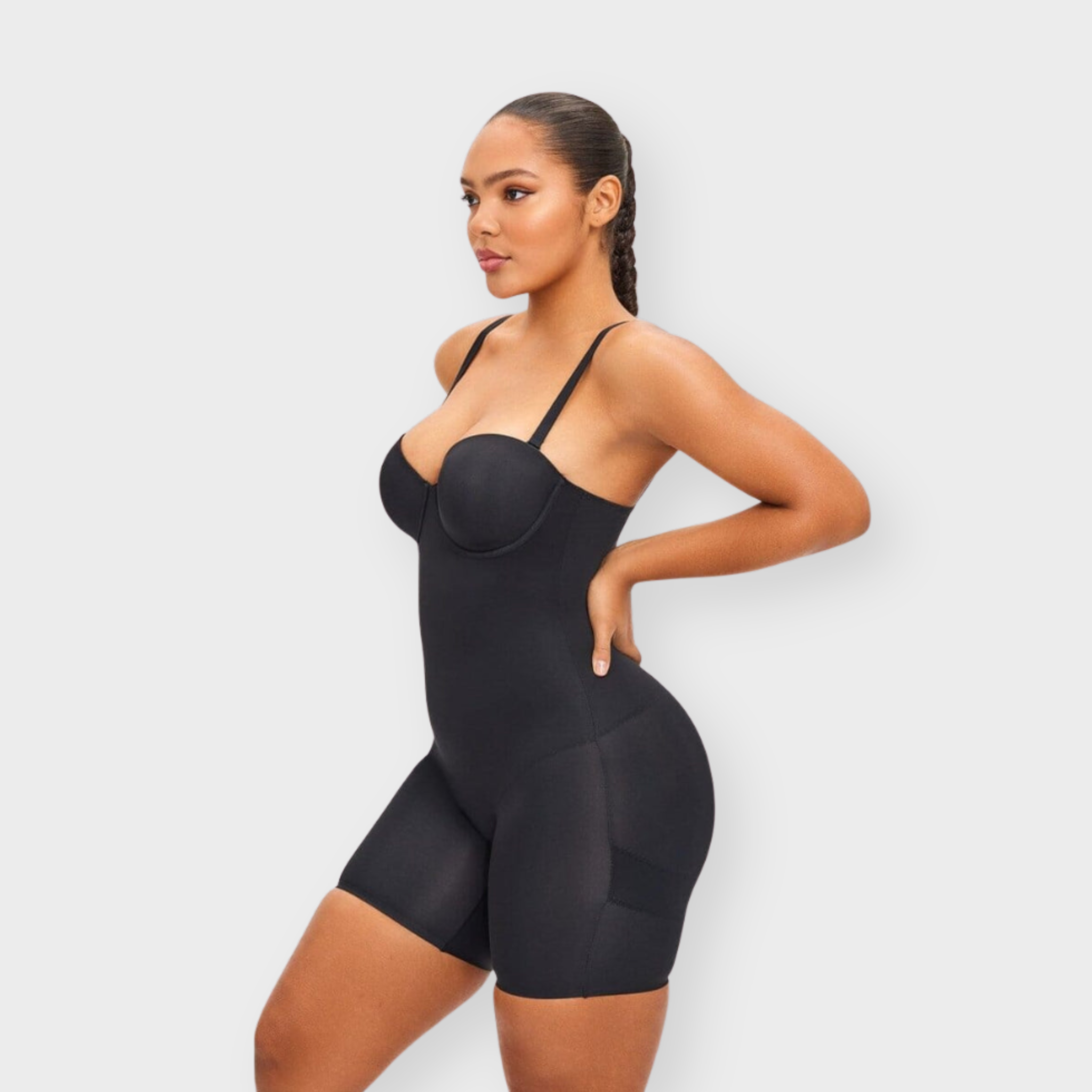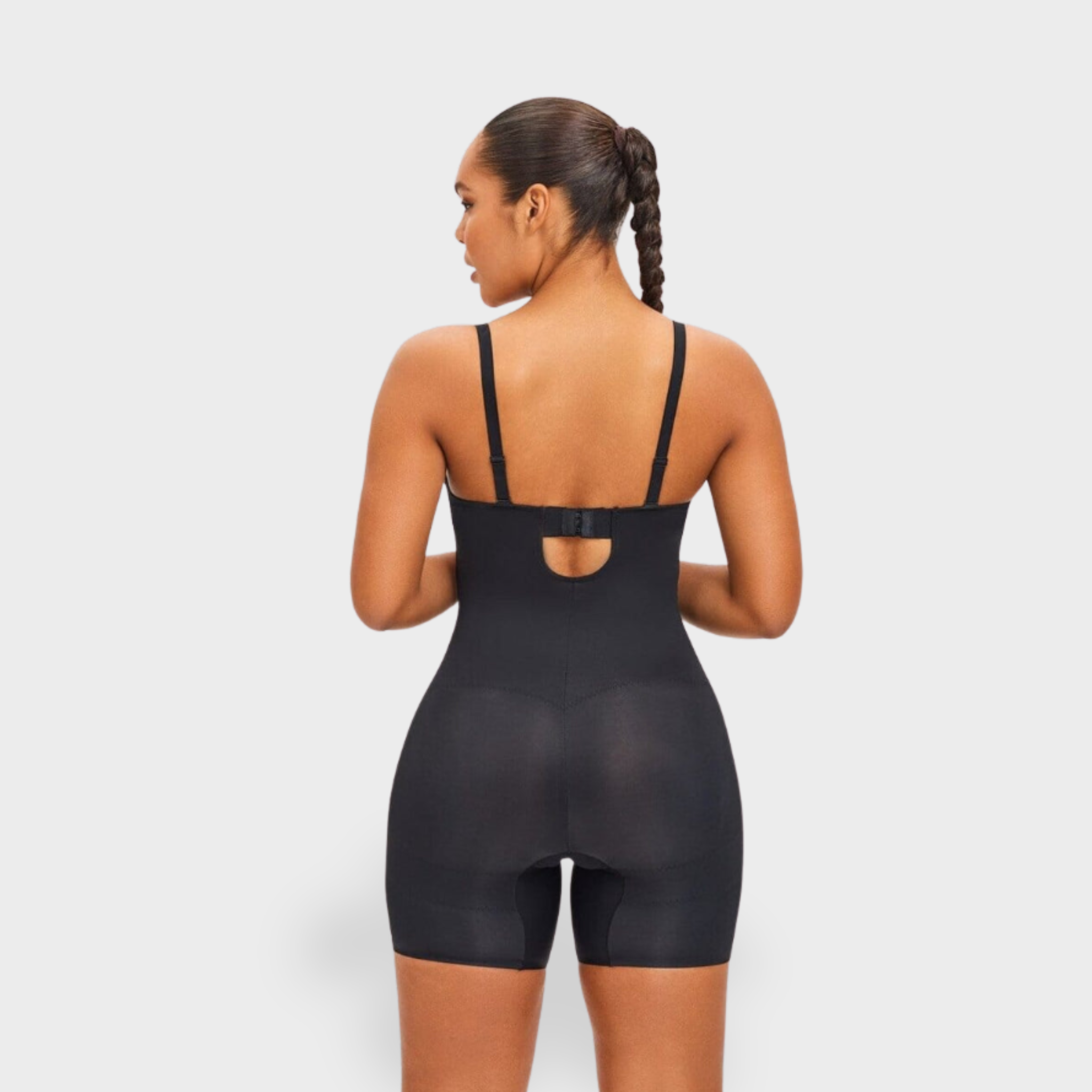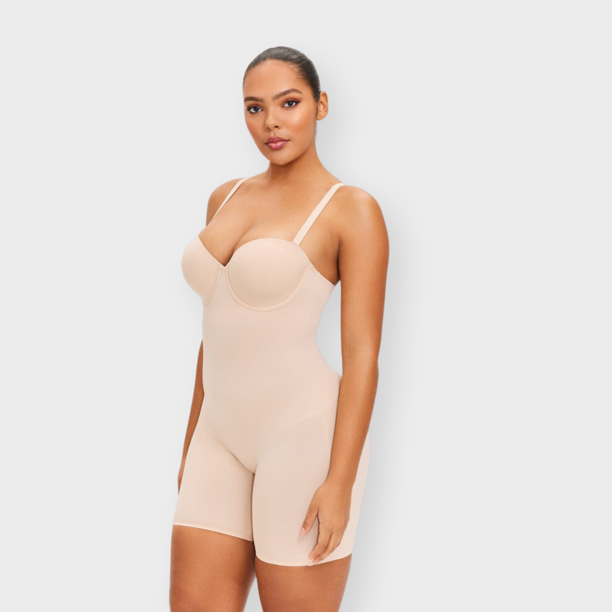 This all-in-one sculpting bodysuit blends underwire lift with sleek compression for a flawless silhouette under special occasion looks. Built with flex-fit underwire cups for natural shape and support, it smooths the waist, lifts the butt, and stays put with a seamless finish. Lightweight shaping fabric hugs the body with breathable control, while adjustable wide straps and a 3-level hook back ensure a custom fit. Designed with a discreet overlapping crotch and no-show hemlines for all-day wear—from bridal moments to black-tie events.