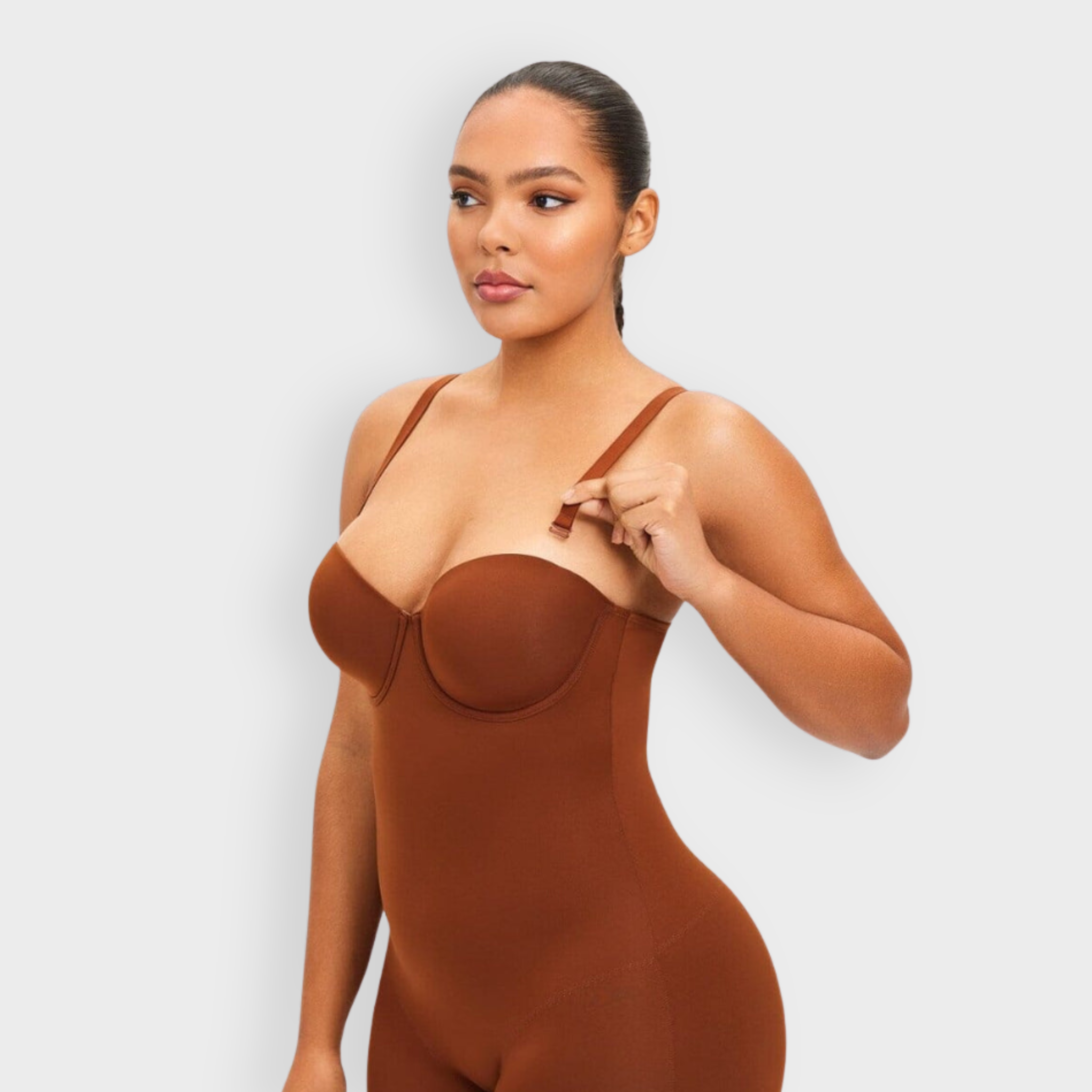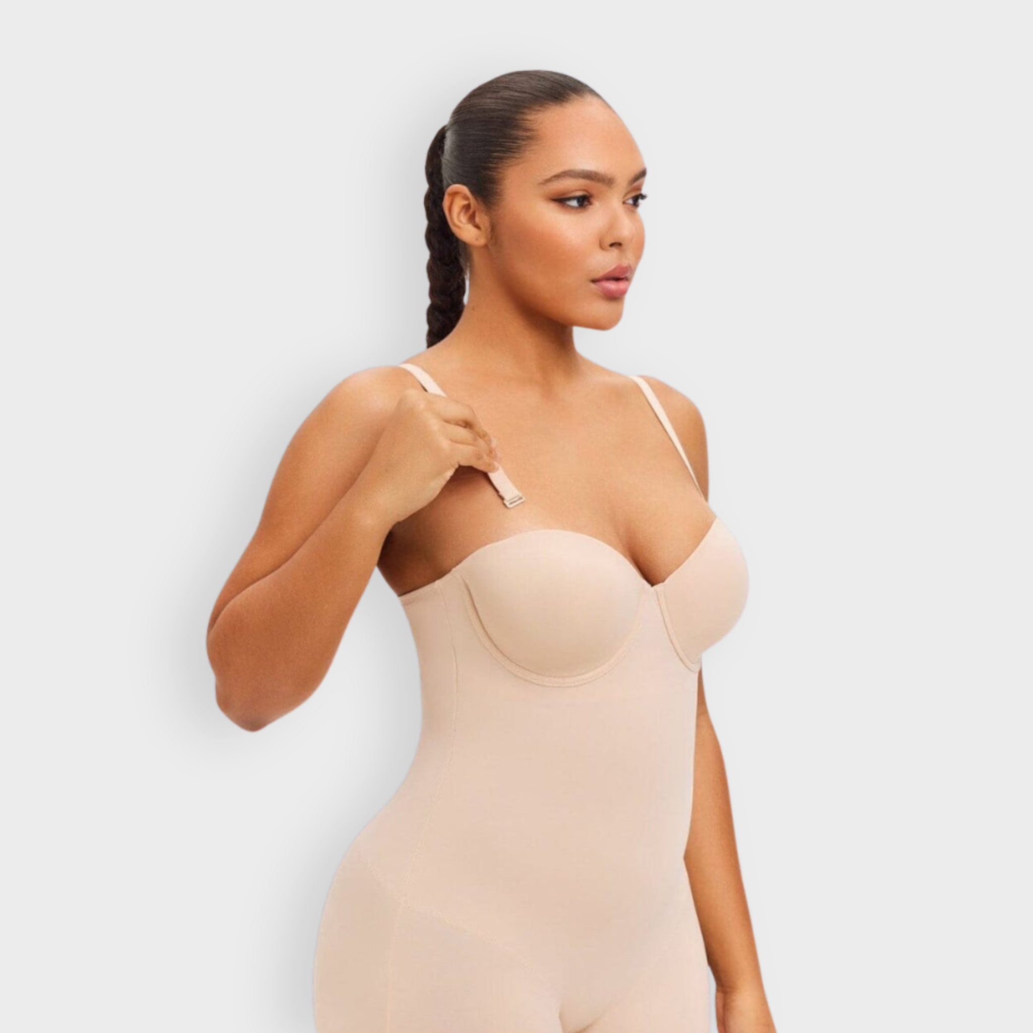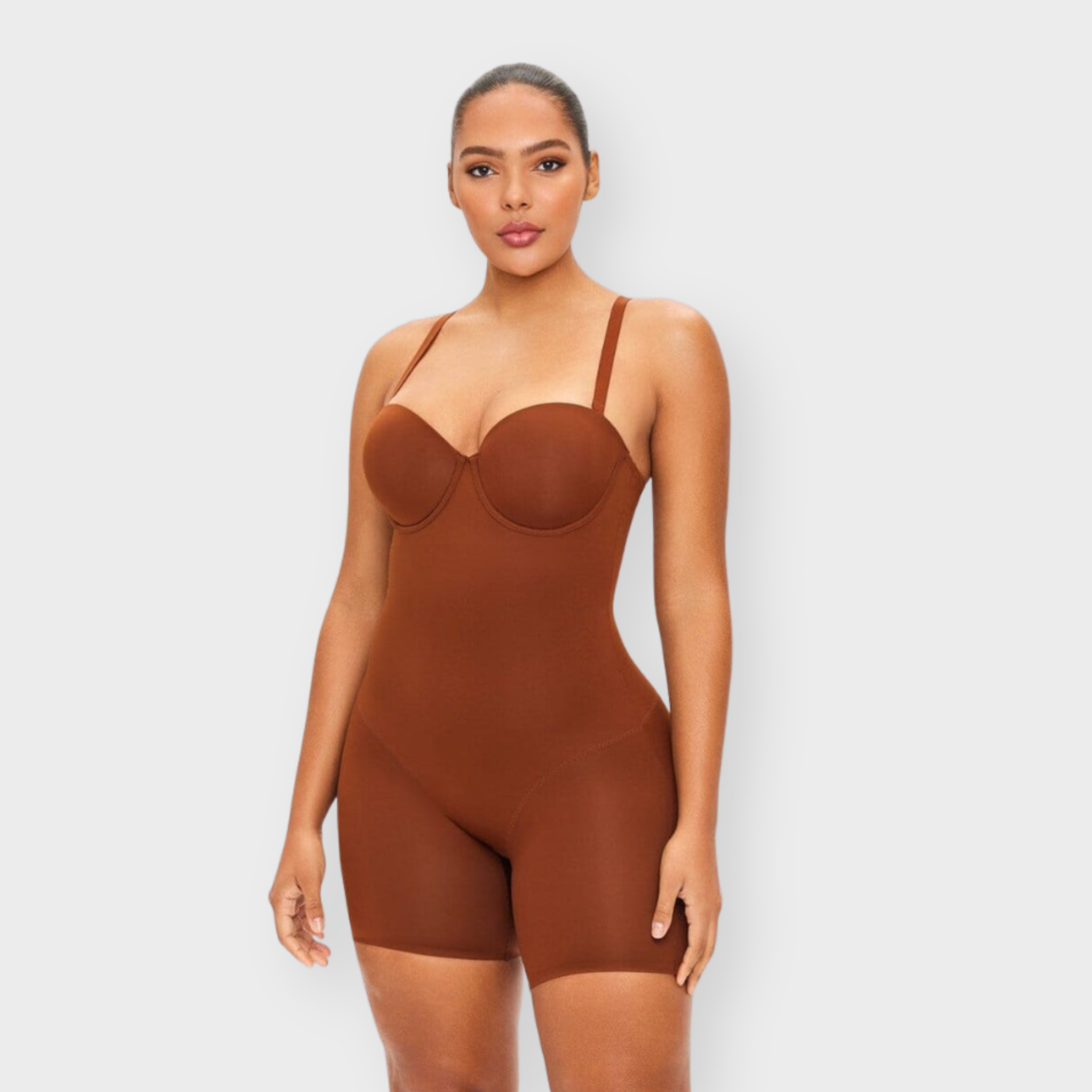 This all-in-one sculpting bodysuit blends underwire lift with sleek compression for a flawless silhouette under special occasion looks. Built with flex-fit underwire cups for natural shape and support, it smooths the waist, lifts the butt, and stays put with a seamless finish. Lightweight shaping fabric hugs the body with breathable control, while adjustable wide straps and a 3-level hook back ensure a custom fit. Designed with a discreet overlapping crotch and no-show hemlines for all-day wear—from bridal moments to black-tie events.