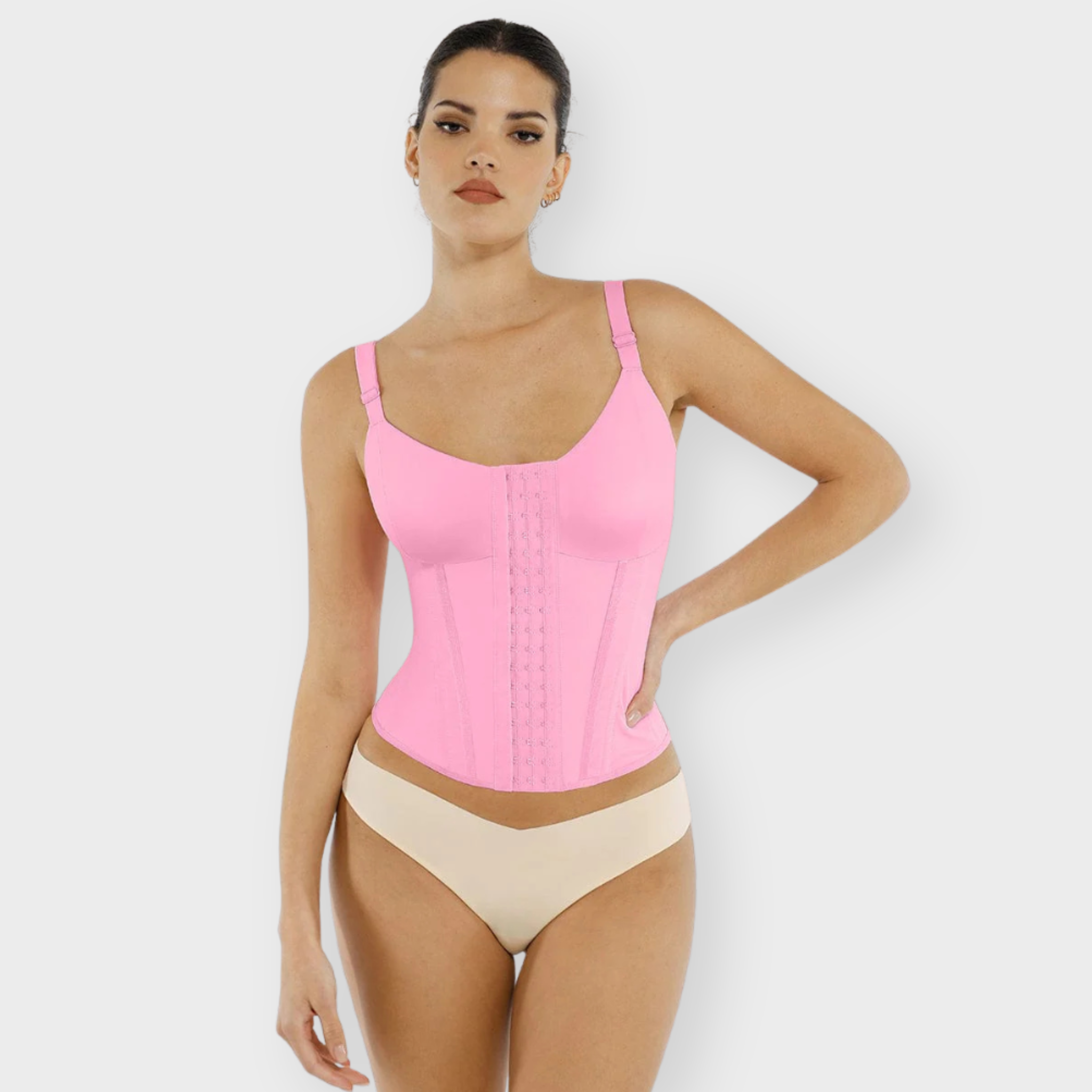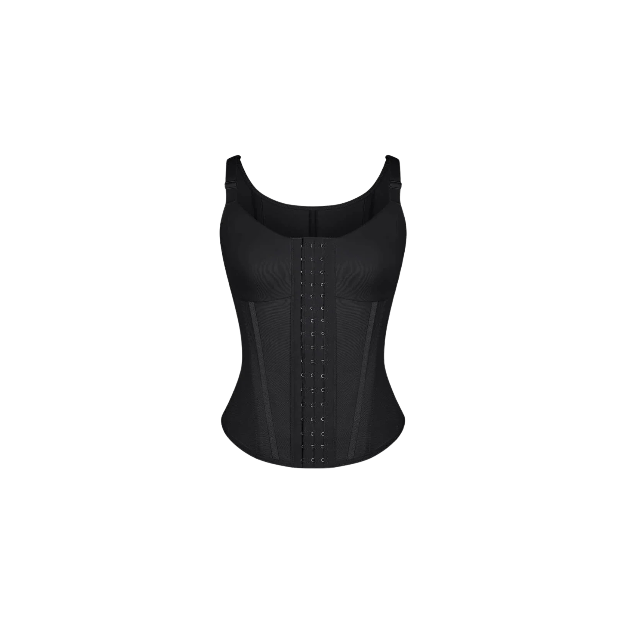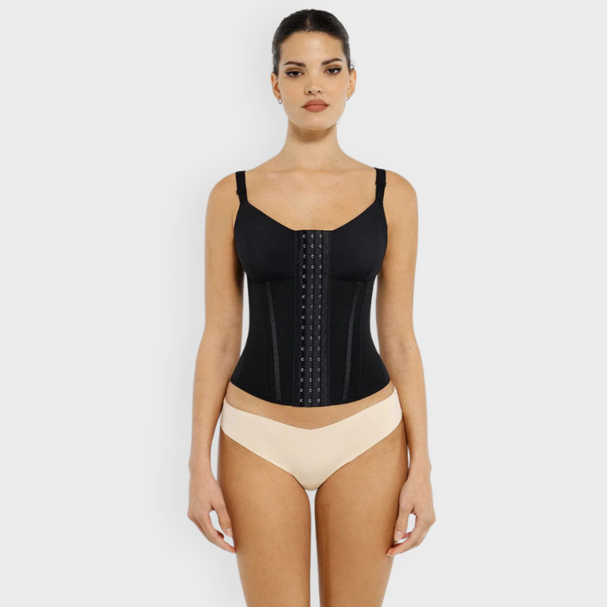 This sculpting waist trainer vest is engineered for maximum support, shape, and vintage-inspired style. Featuring 7 integrated steel bones, three rows of adjustable front closures, and a double-layer fabric construction, it cinches the waist, supports the bust, and smooths the back — all while remaining breathable and non-restrictive. Finished with corset-style ribbon detailing for a timeless silhouette.