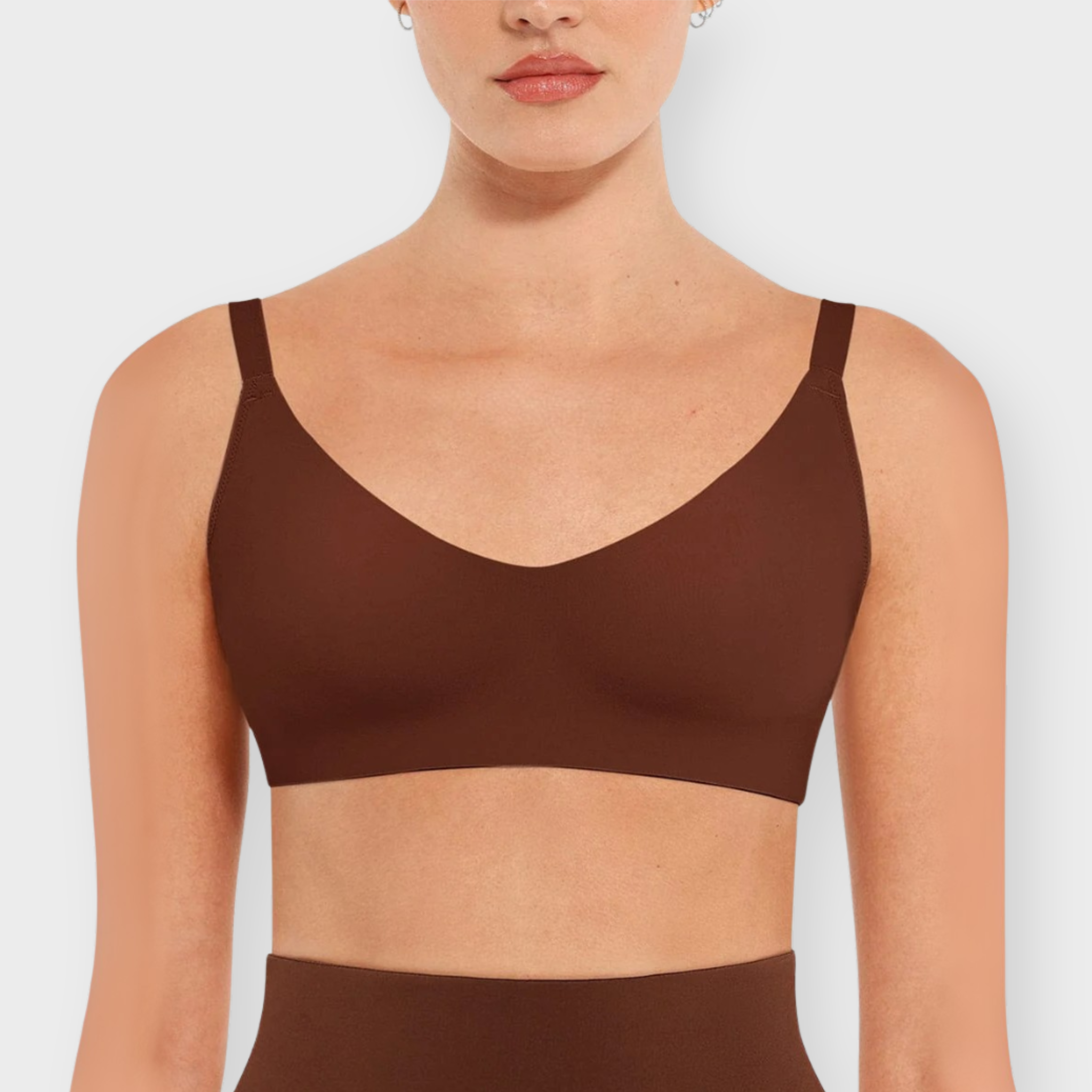 Barely-there softness meets everyday support. This seamless V-neck bralette is crafted with double-layer stretch fabric that moves with you while offering gentle side and bust shaping. The underarm-smoothing design and wide adjustable straps provide a sleek, lifted look—no pads, no wires, just effortless confidence. Finished with a flexible hook-and-eye closure and second-skin feel, it’s your go-to for smoothing under every outfit.