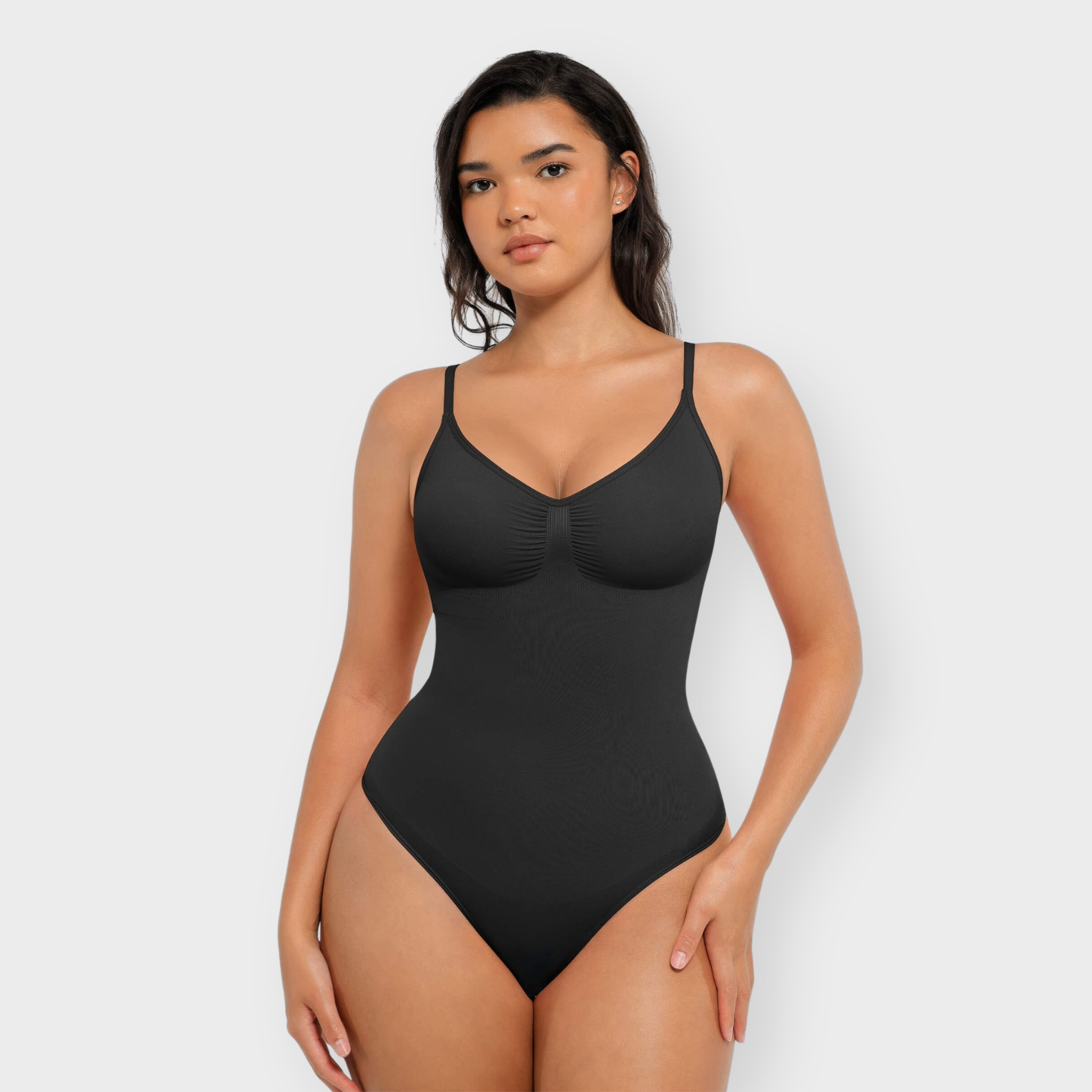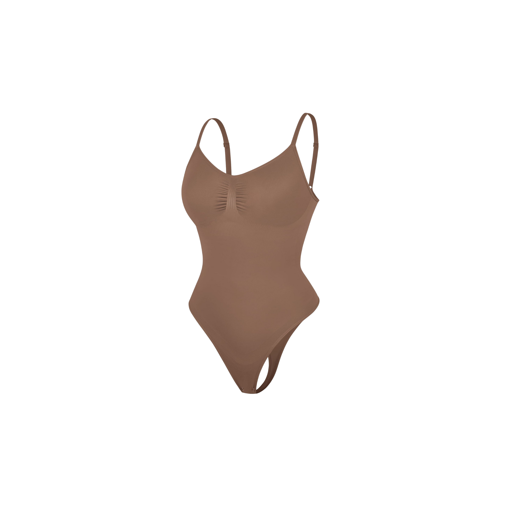 Streamlined, sculpted, and designed to move with you. This seamless thong bodysuit is crafted from lightweight NILIT® nylon for breathable shaping that feels like a second skin. Built-in underbust lift offers natural support without wires, while high-stretch fabric smooths the tummy and waist. Adjustable straps and a snap gusset ensure a flexible fit and easy wear, and the thong cut enhances curves with zero lines.
