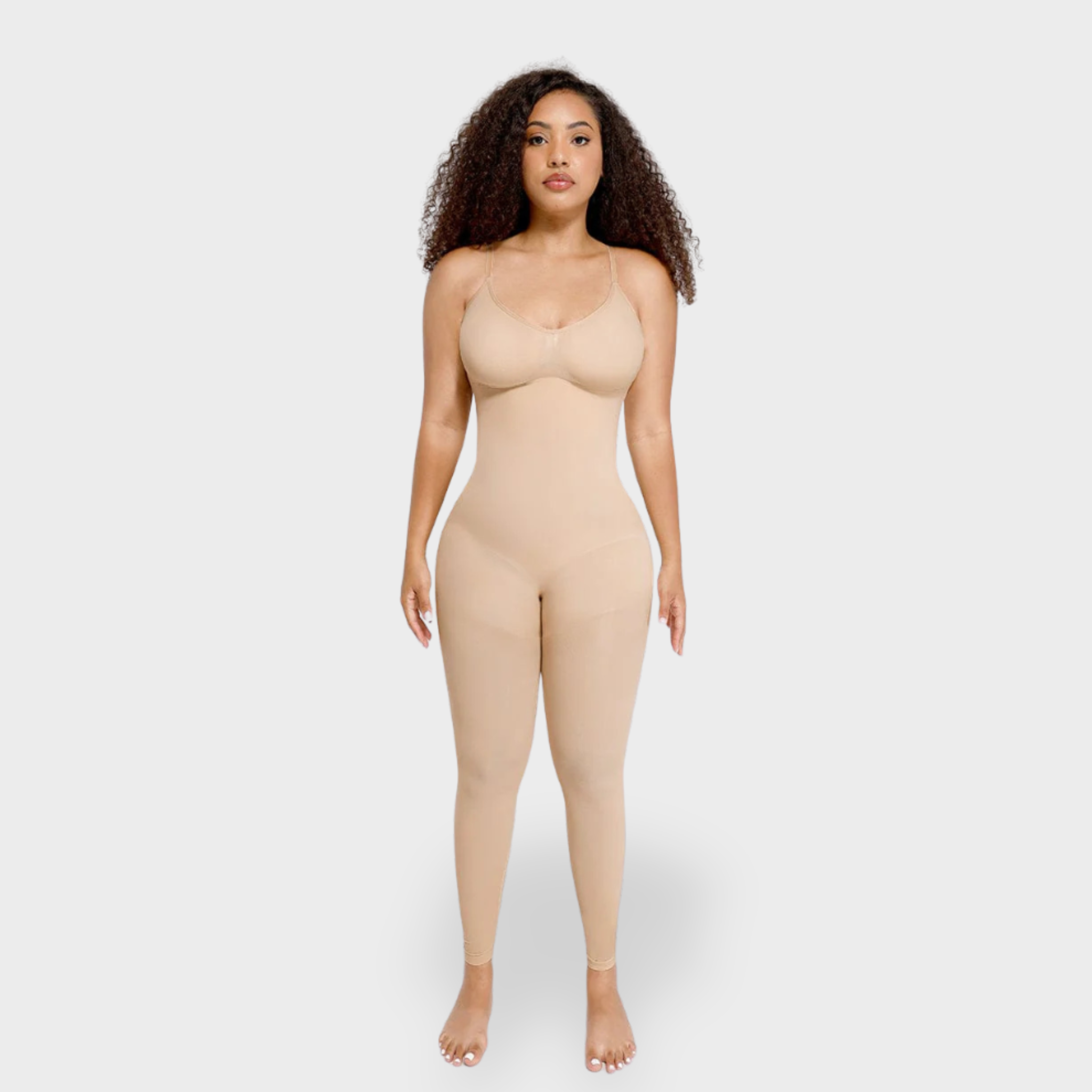 Sculpt, smooth, and elevate—this full-length body shaper is crafted to contour your figure with a second-skin feel. The three-dimensional bust panel provides soft, natural support without added padding or wires, while full 360° compression cinches the waist and flattens the tummy. Adjustable straps allow for a customizable fit, and a cleverly designed overlapping crotch makes bathroom breaks effortless. A sculpted butt-lift effect enhances curves invisibly under clothes for a sleek, seamless silhouette.