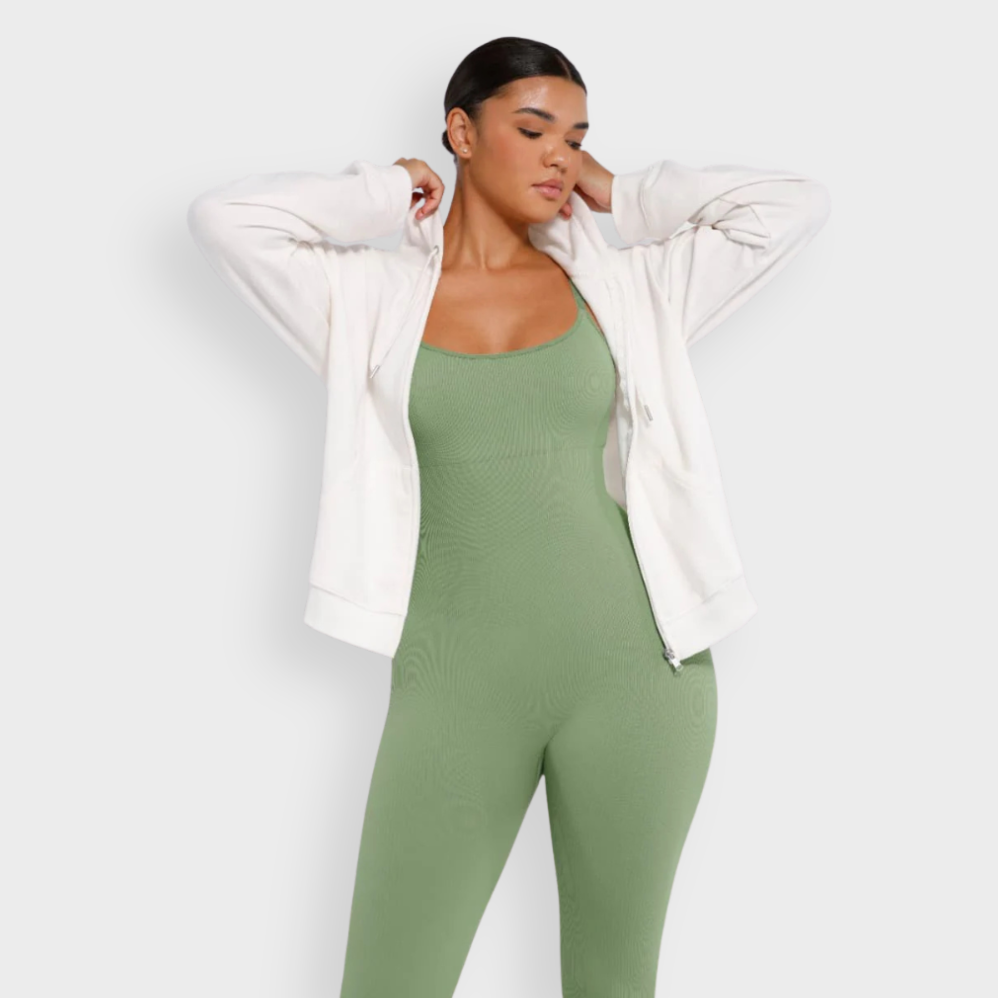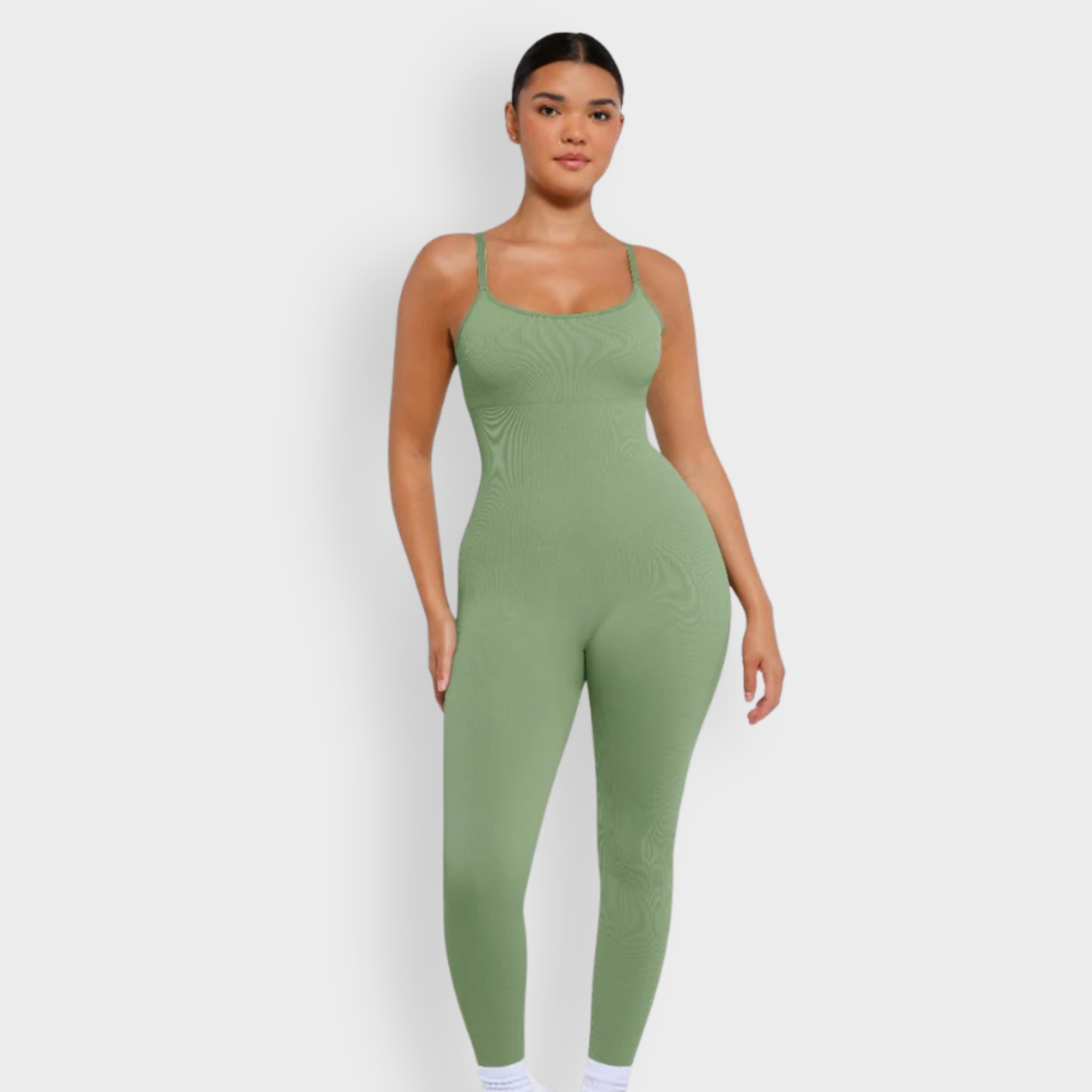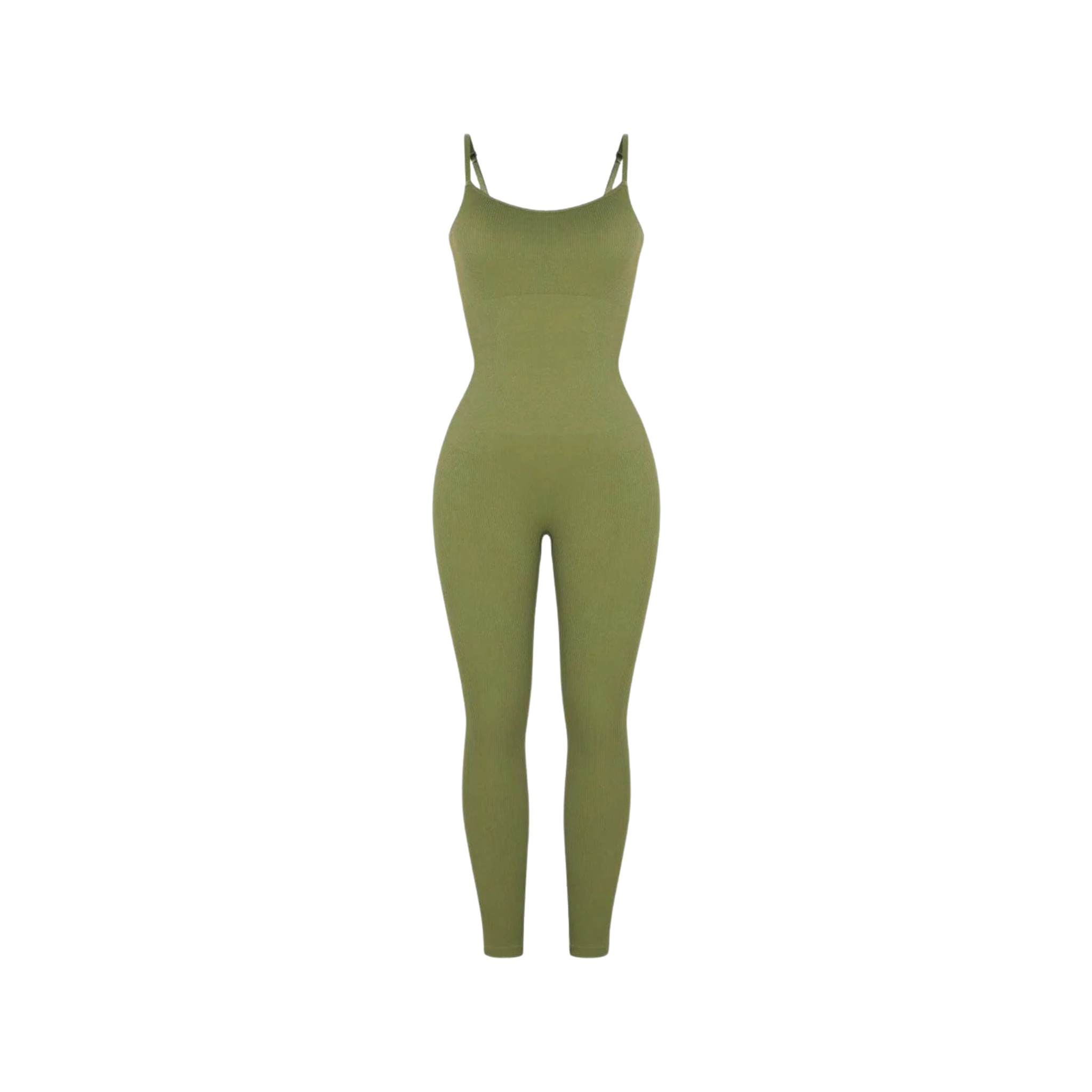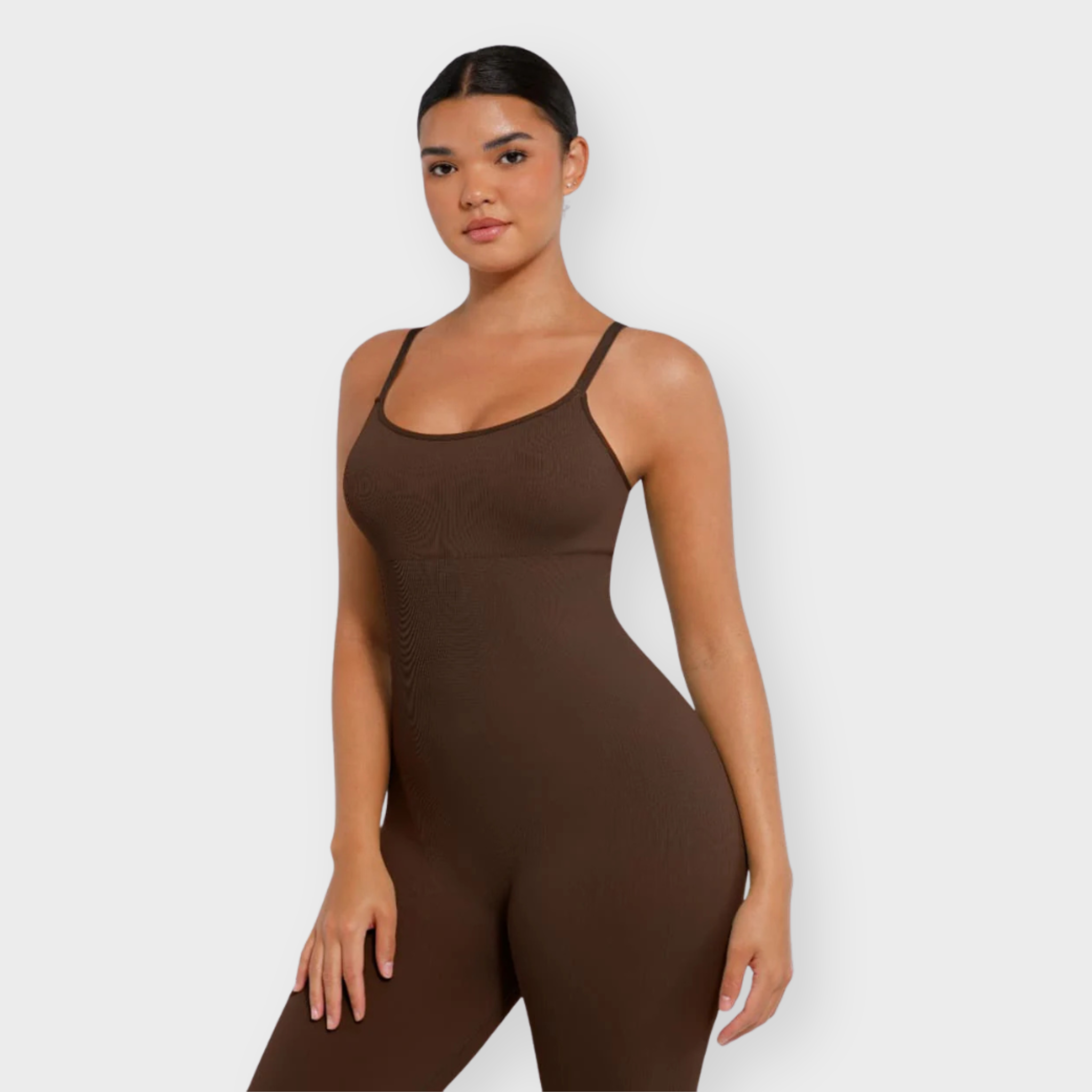 A sleek one-piece designed to shape and move with you—this seamless ribbed jumpsuit lifts and sculpts in all the right places. Built with double-layered chest coverage and removable cups, it lets you go bra-free with confidence. The reinforced midsection offers targeted tummy control, while adjustable straps ensure a personalized fit. Ultra-stretchy with a smooth, ribbed texture, it’s made for effortless all-day wear—whether you're lounging, layering, or heading out.