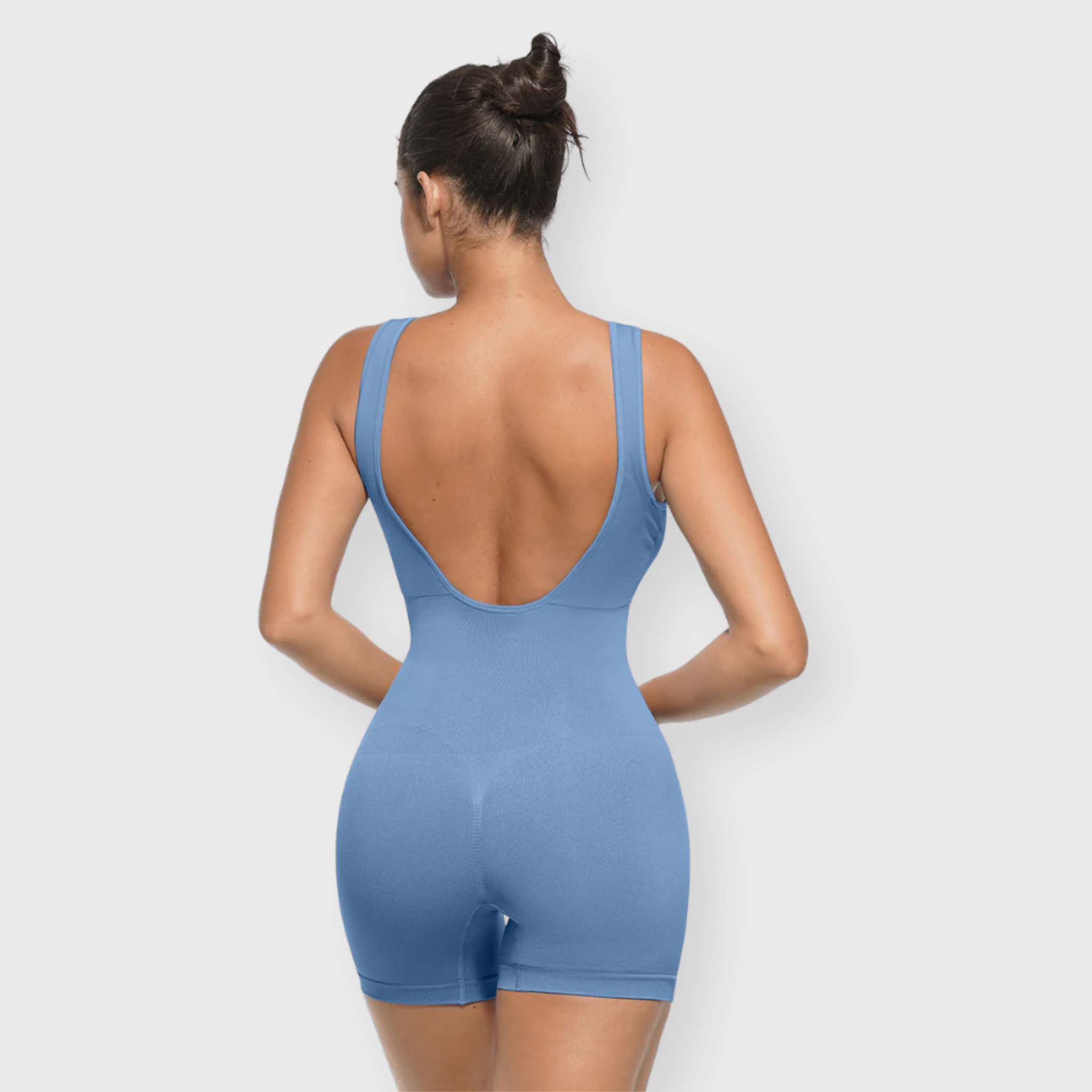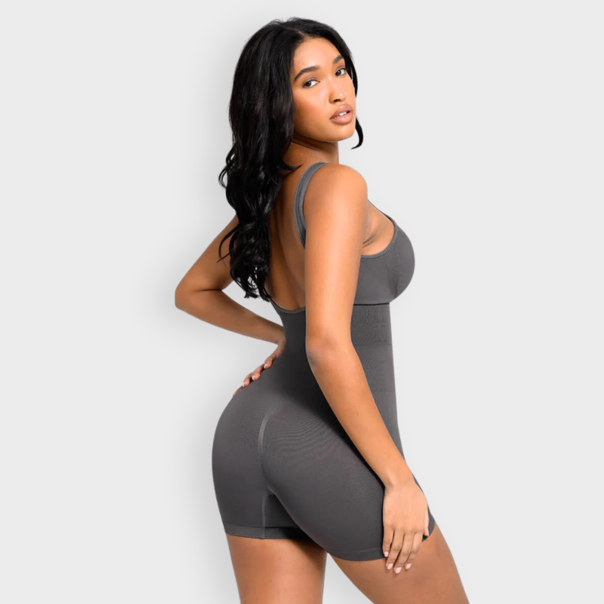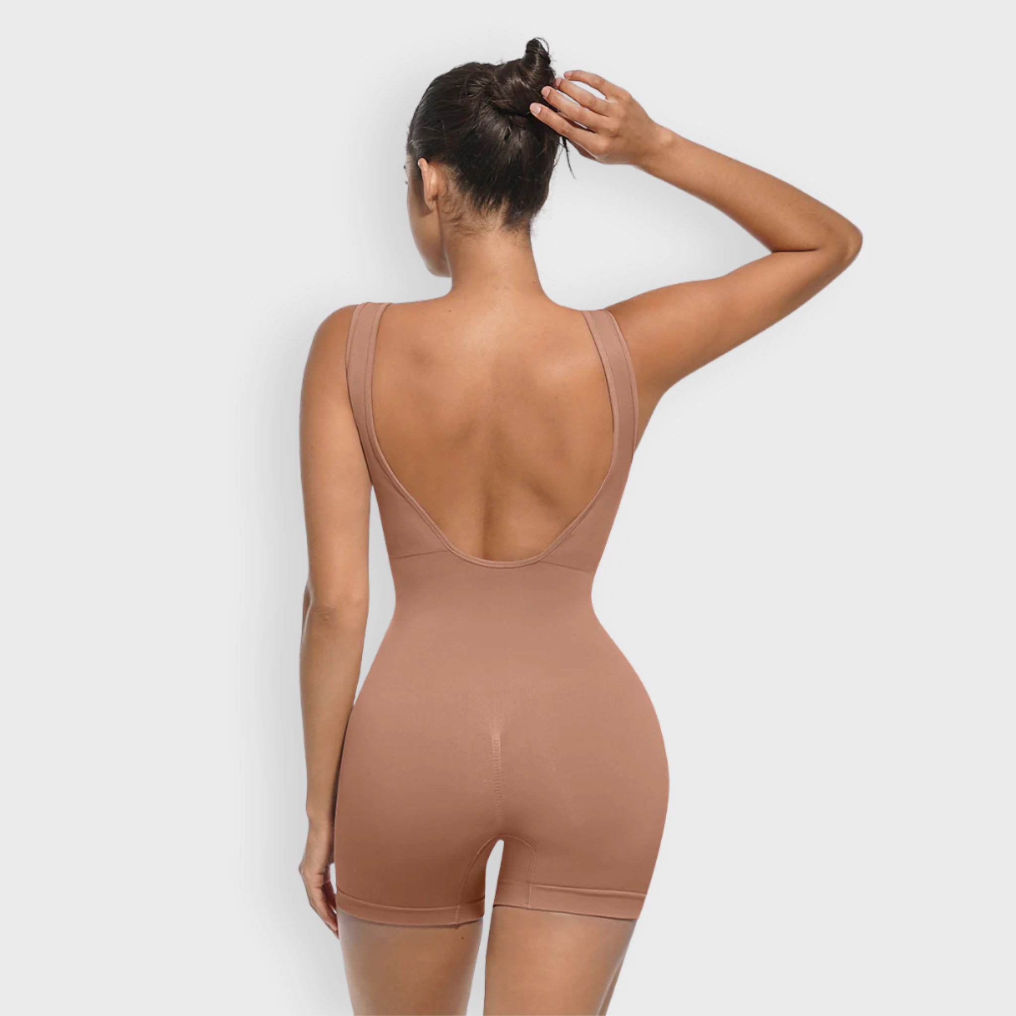 An elevated essential with a flattering scoop front and bold U-back cut, this bodysuit sculpts where it counts while keeping you stylish from every angle. Featuring micro-bust support, a double-layer chest panel with removable cups, and 360° seamless shaping for waist, tummy, and hips. Made with soft, high-stretch yarn that hugs and smooths without squeezing.