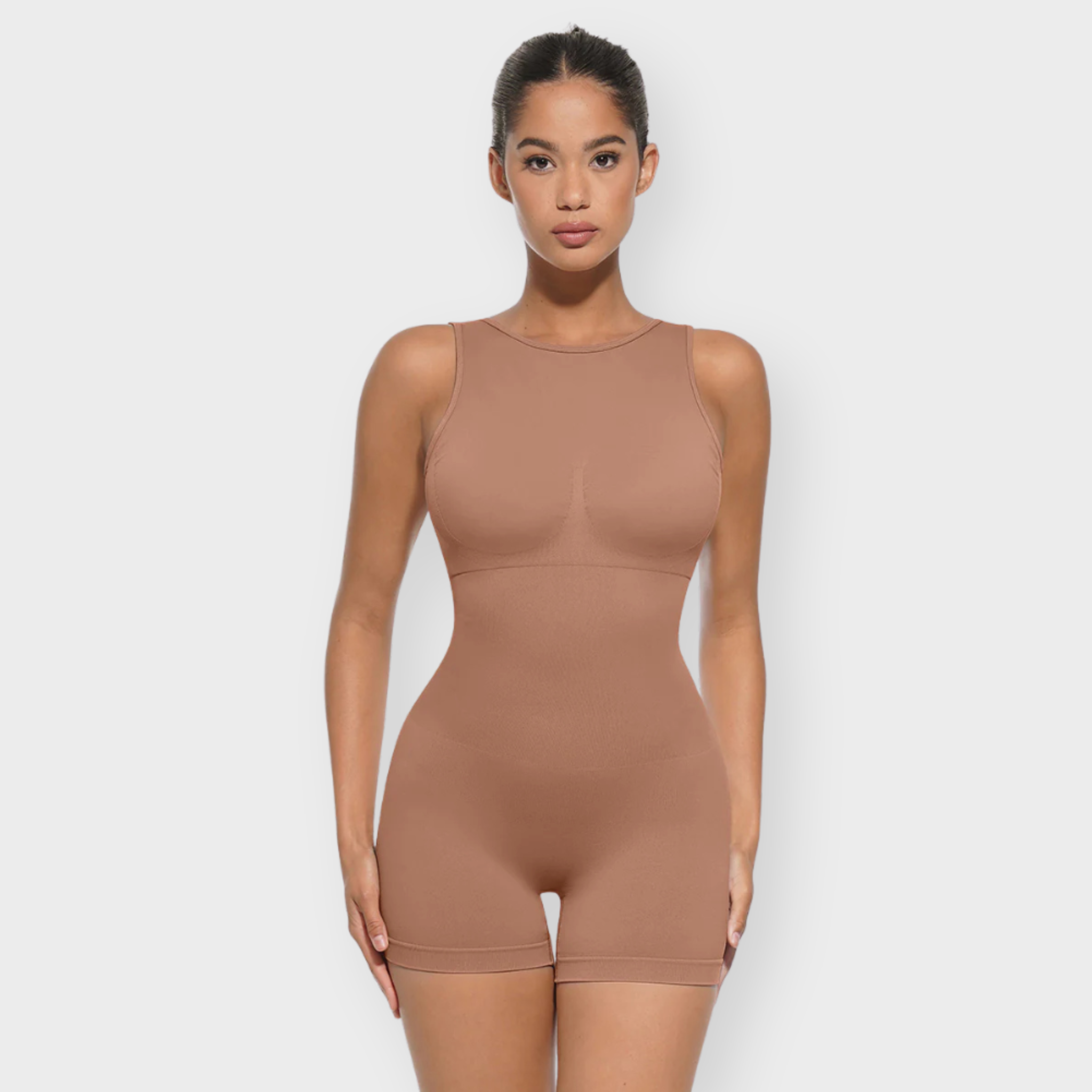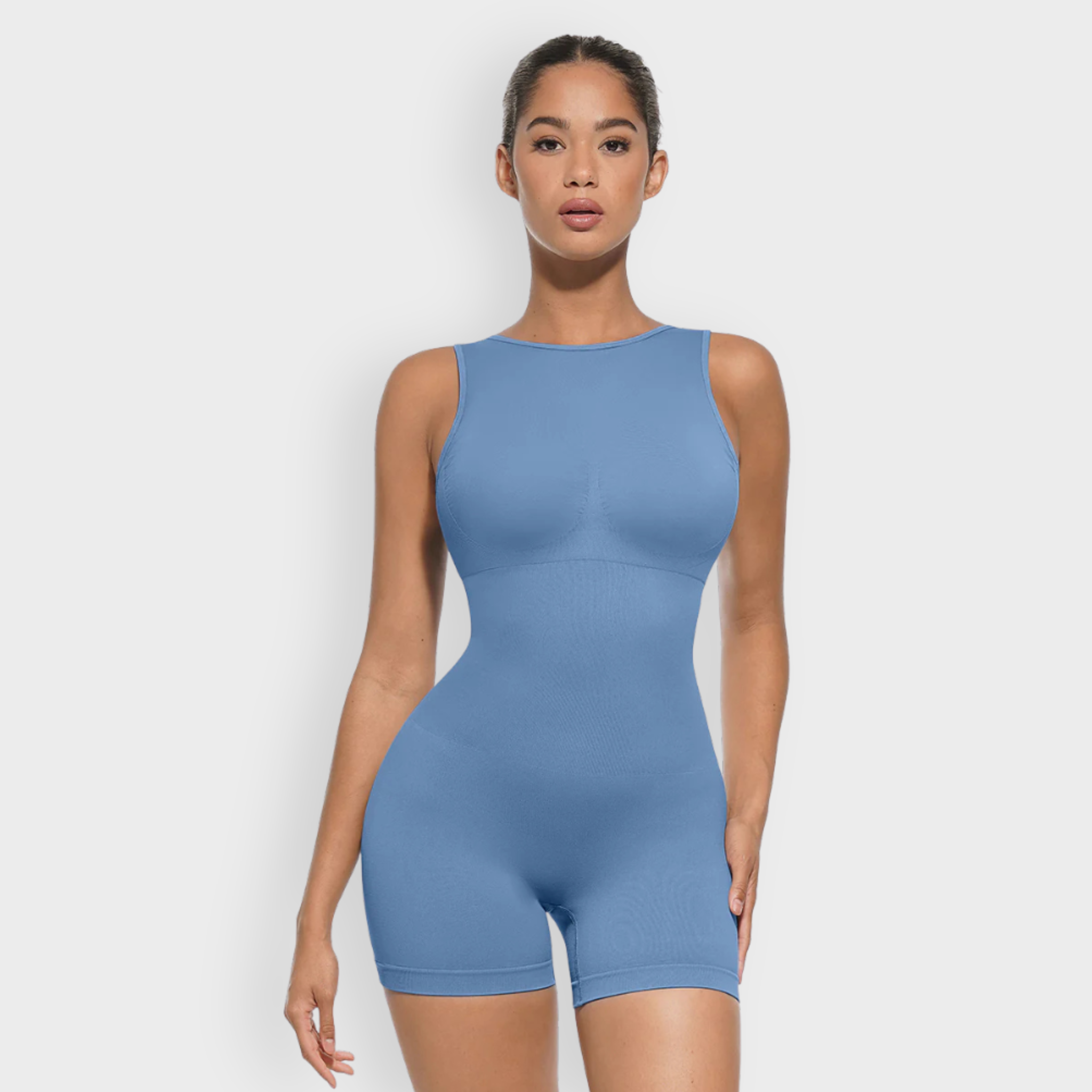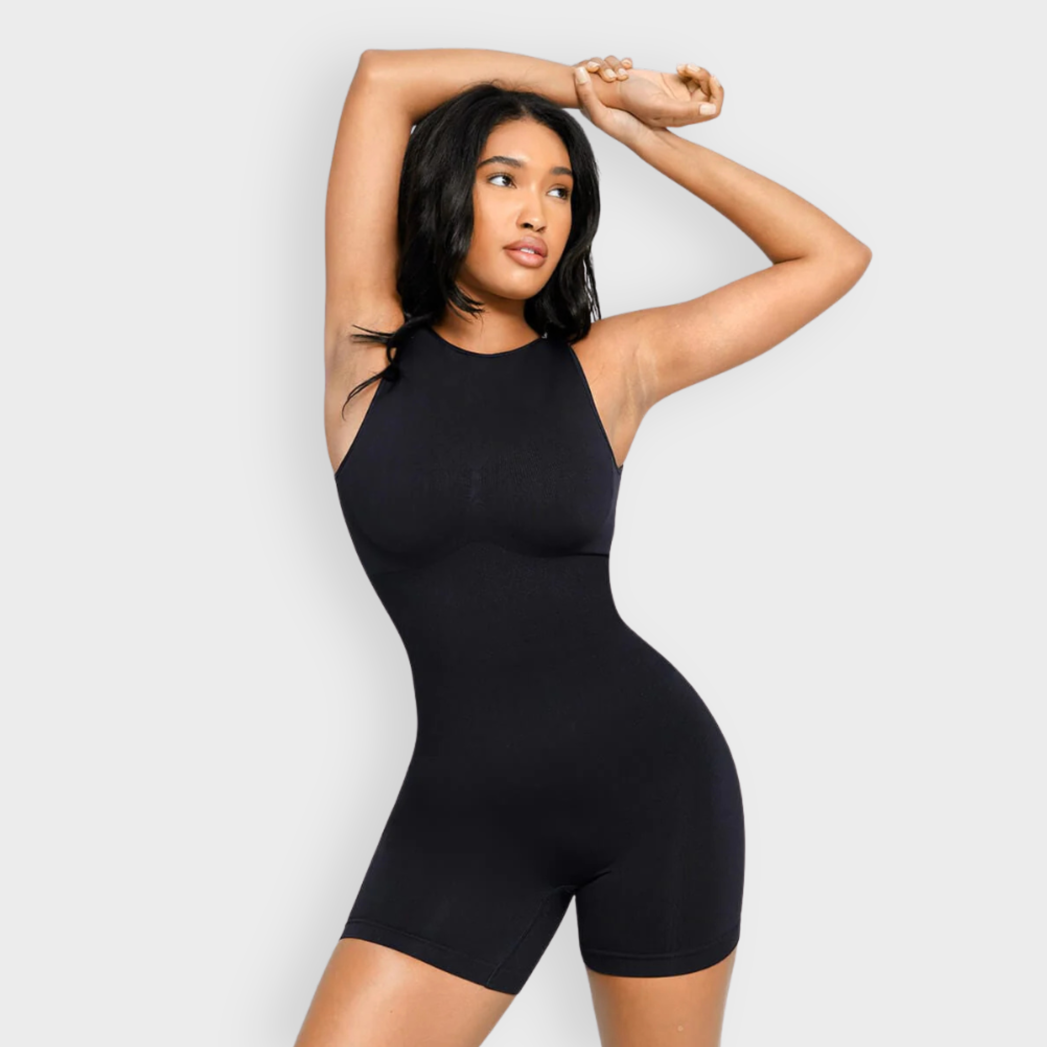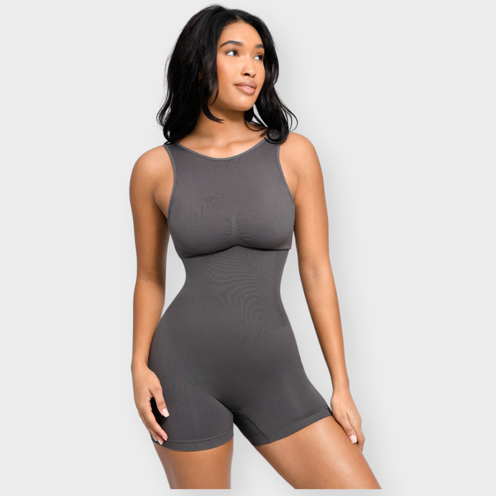 An elevated essential with a flattering scoop front and bold U-back cut, this bodysuit sculpts where it counts while keeping you stylish from every angle. Featuring micro-bust support, a double-layer chest panel with removable cups, and 360° seamless shaping for waist, tummy, and hips. Made with soft, high-stretch yarn that hugs and smooths without squeezing.