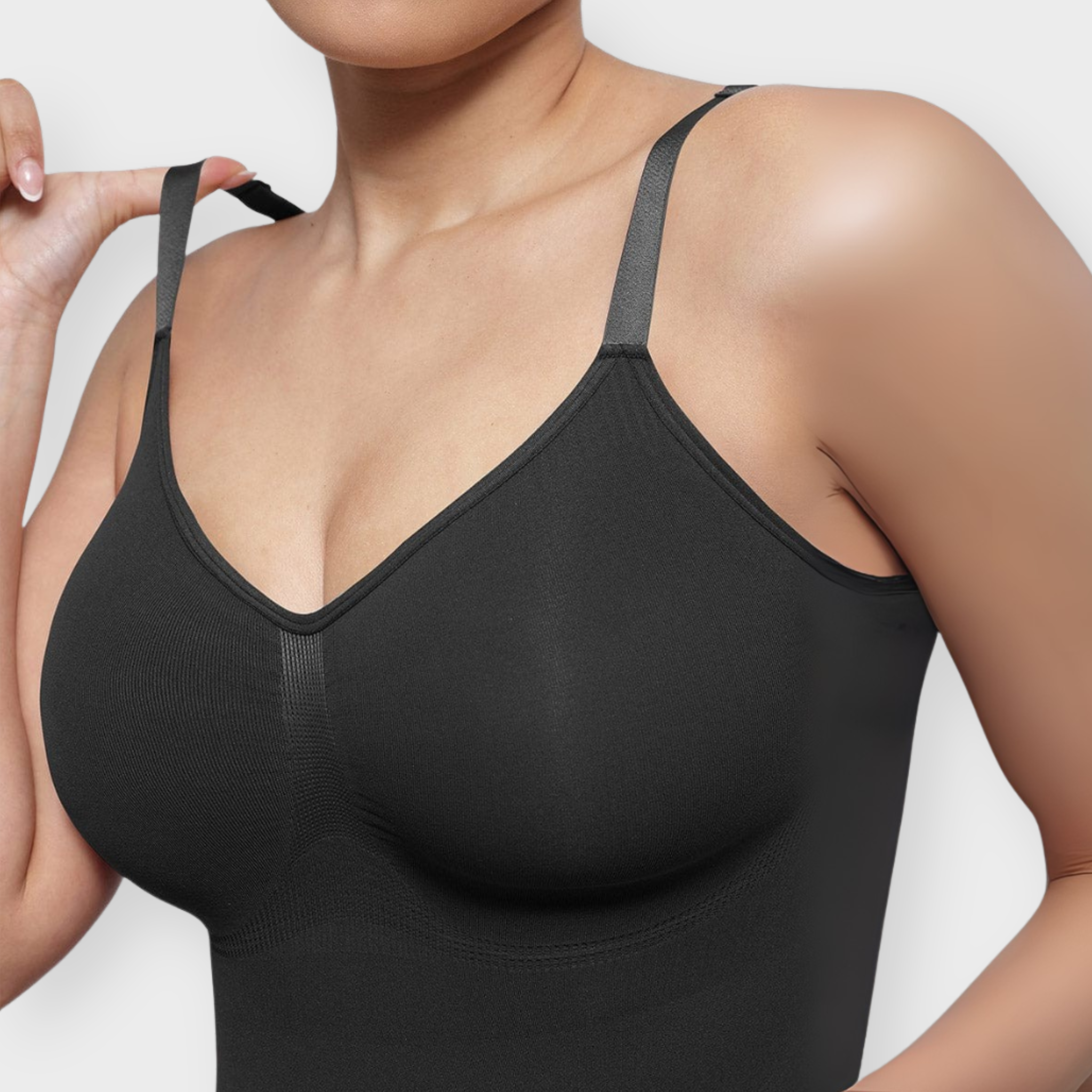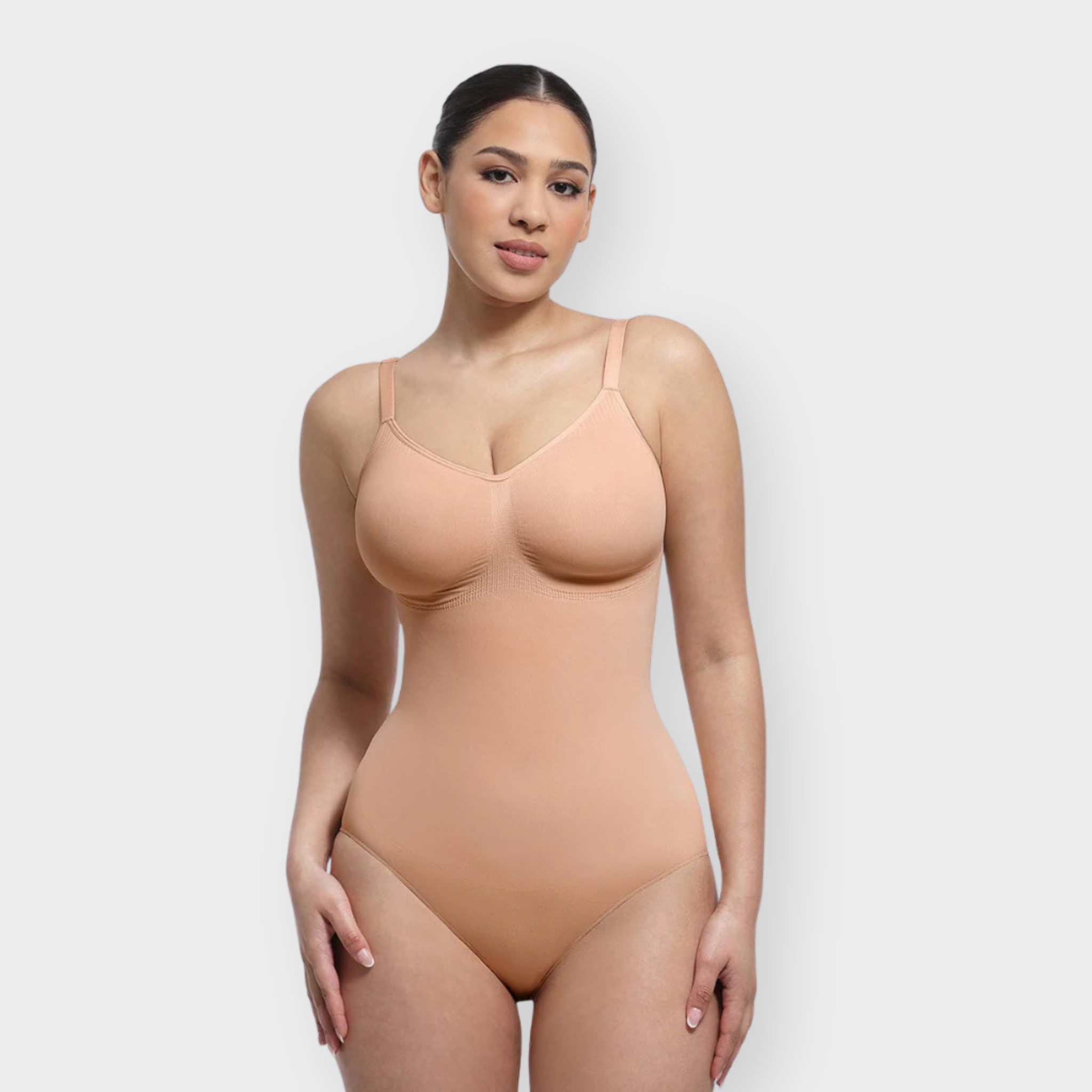 All-day shaping meets everyday ease. This seamless bodysuit is designed with a flattering ruched bust and underbust lift that naturally supports—no bra needed. High-elastic fabric smooths the waist and tummy without tightness, while adjustable straps and a snap crotch add convenience and comfort. With a breathable, skin-soft feel and versatile styling, it’s the perfect layer for lounging, traveling, or wearing on the go.