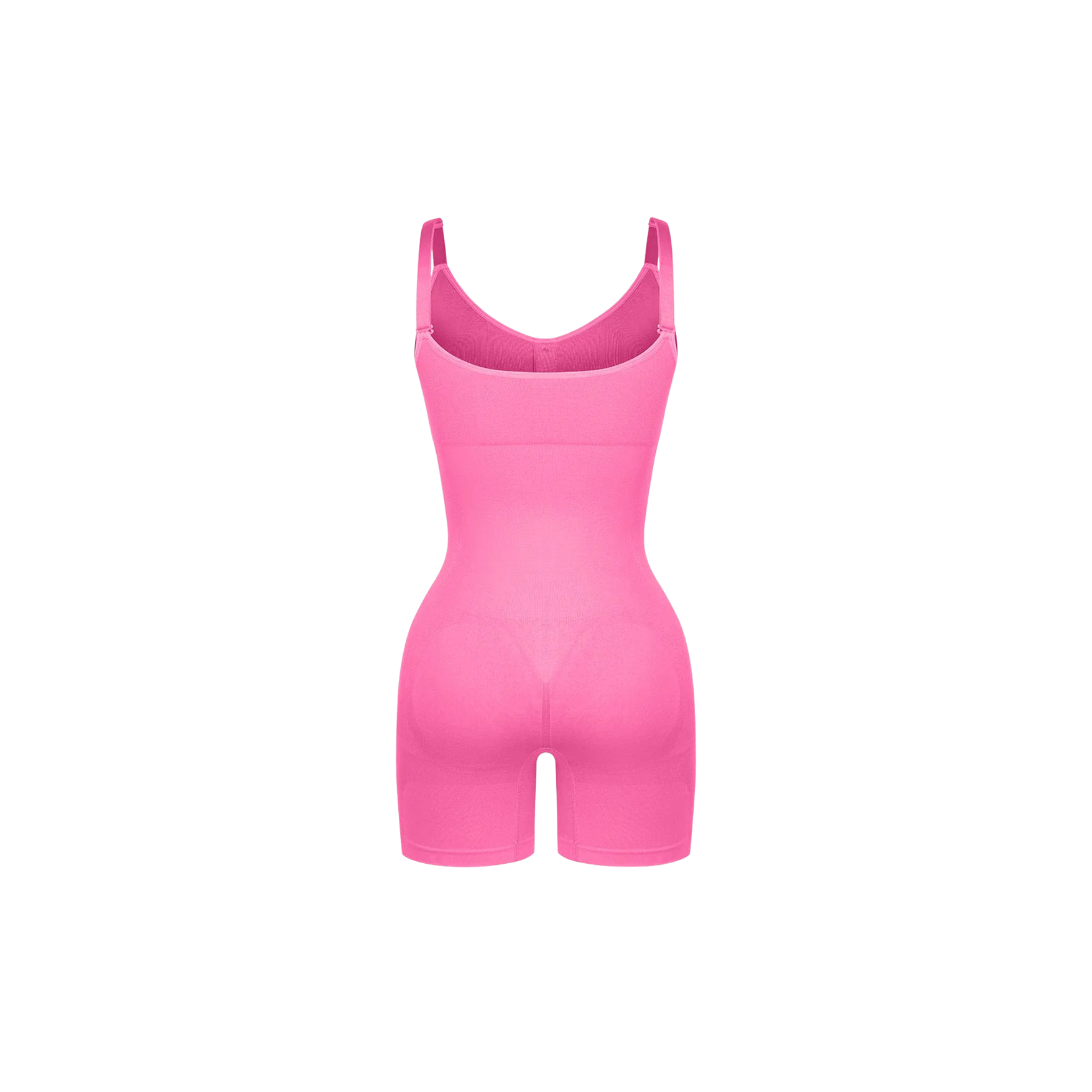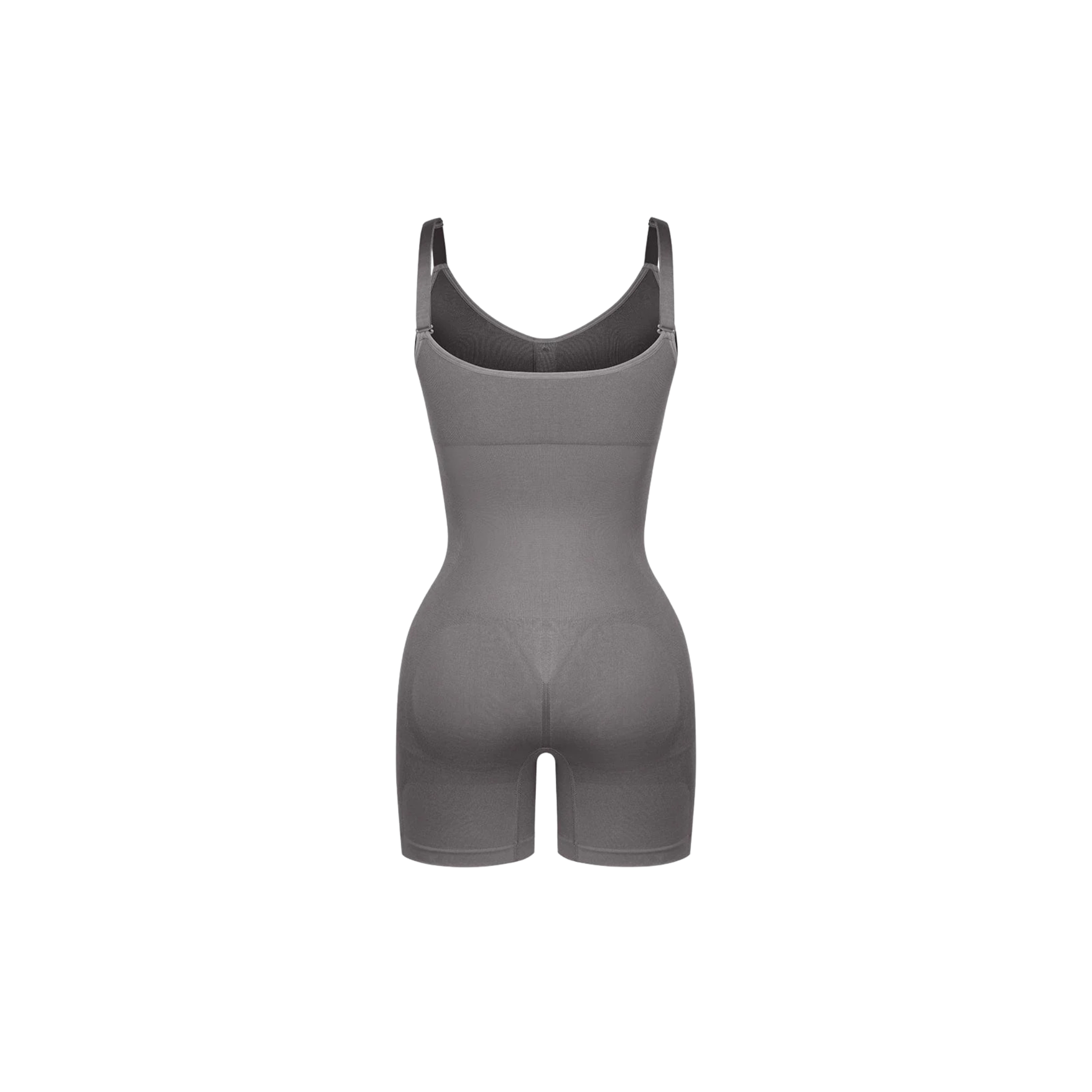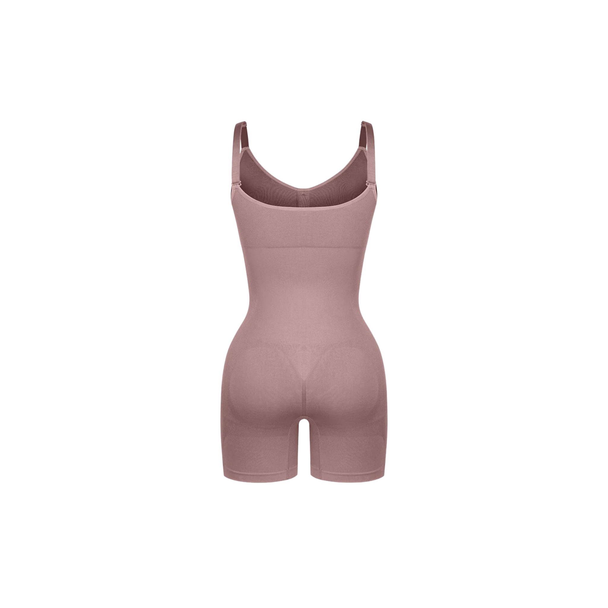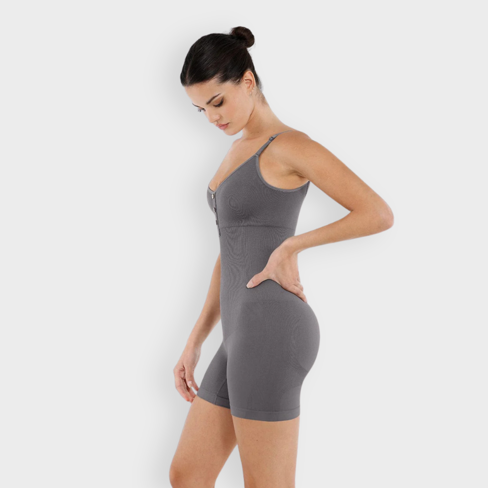 This Ribbed Jumpsuit delivers seamless support with fashion-forward flair. Its heart-shaped neckline flatters the bust, while the faux Henley collar and coconut shell button detail add a laid-back, styled-up finish. Ribbed, double-knit fabric contours the waist and hips with subtle compression, sculpting your figure while remaining breathable and comfortable. With built-in bust support and removable padding, it eliminates the need for a bra. From lounging to layering, this jumpsuit is your all-day sculpting essential.