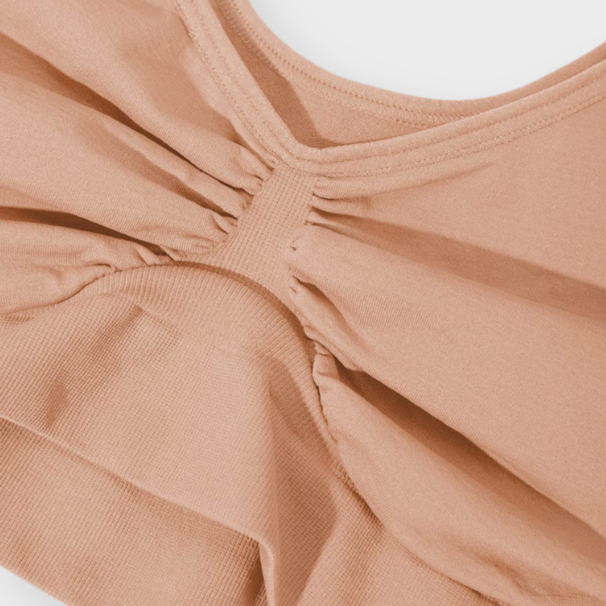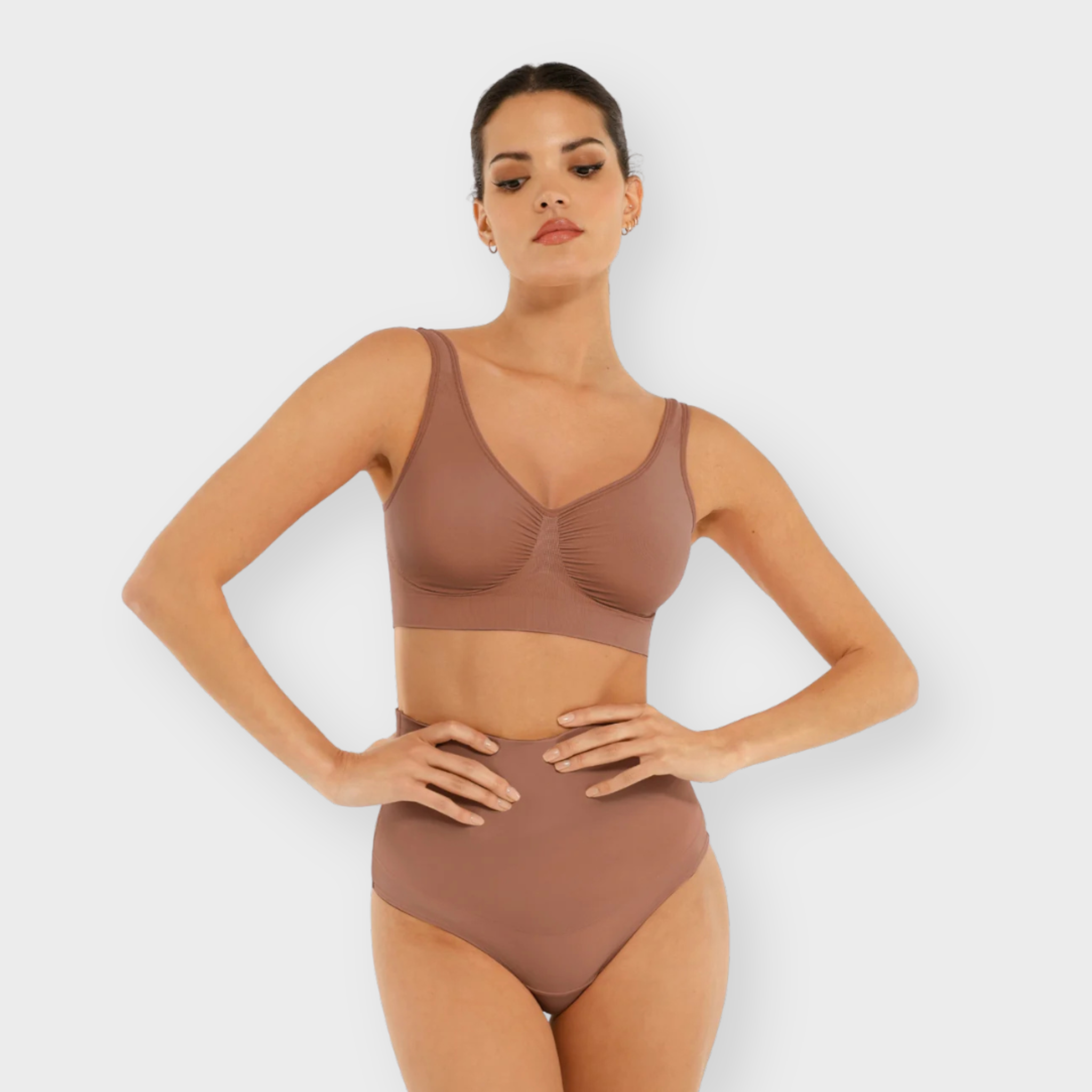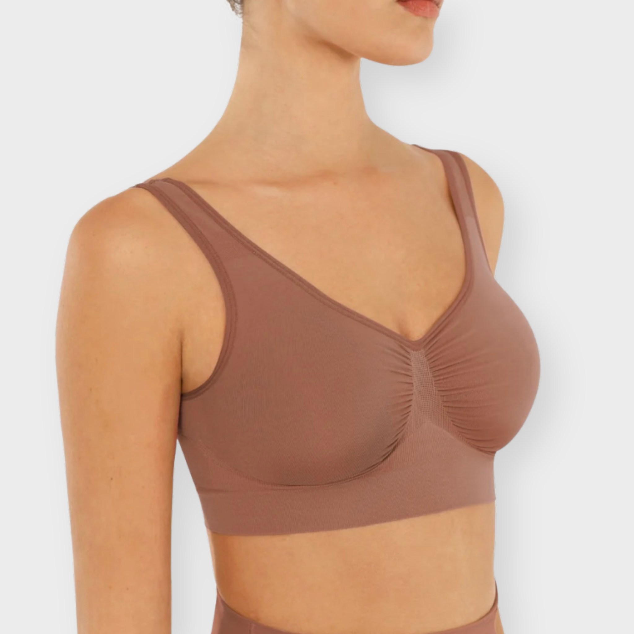 This shaping bra is designed with buttery-soft, ultra-stretch fabric that molds to your shape while providing natural lift. The wireless underbust structure offers gentle support, and the widened straps and back create a smooth, comfortable fit with zero dig. Wear it solo or layered—this seamless essential is made to flatter and move with you.