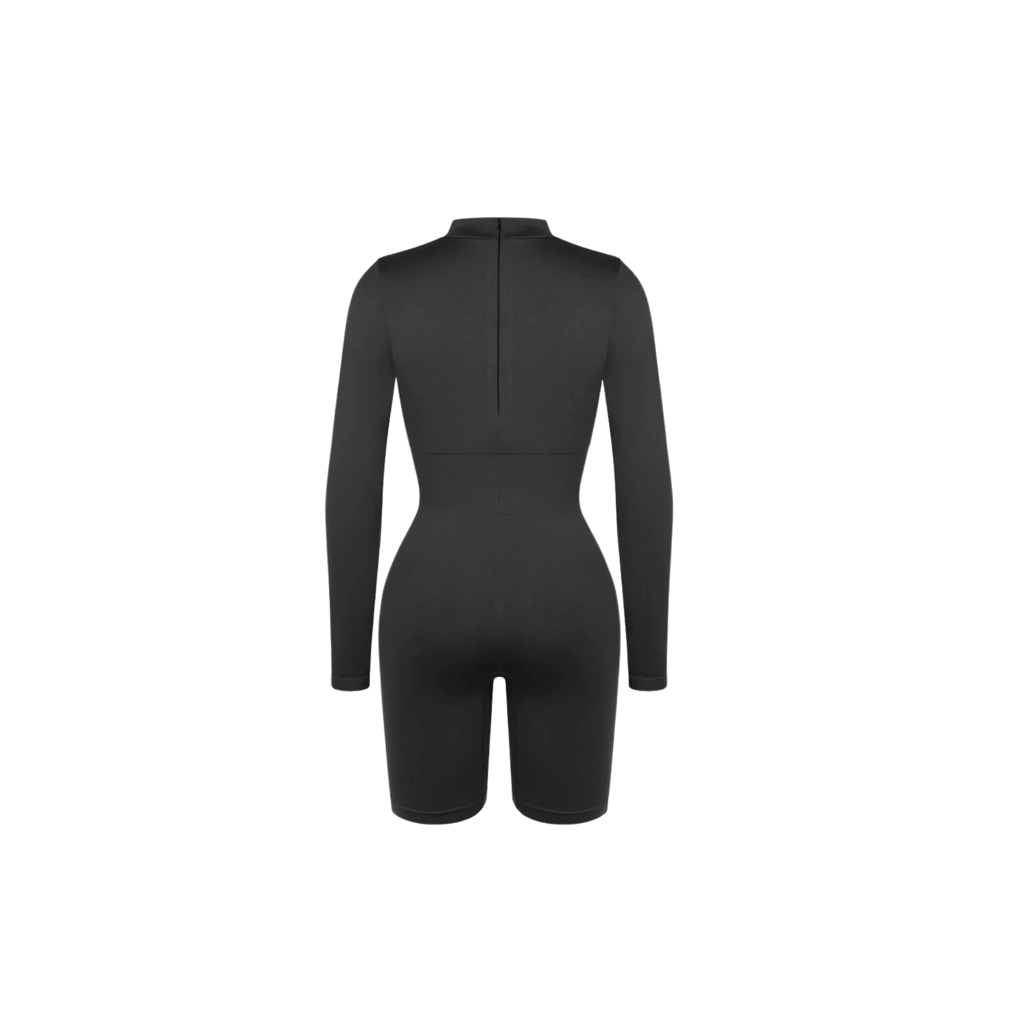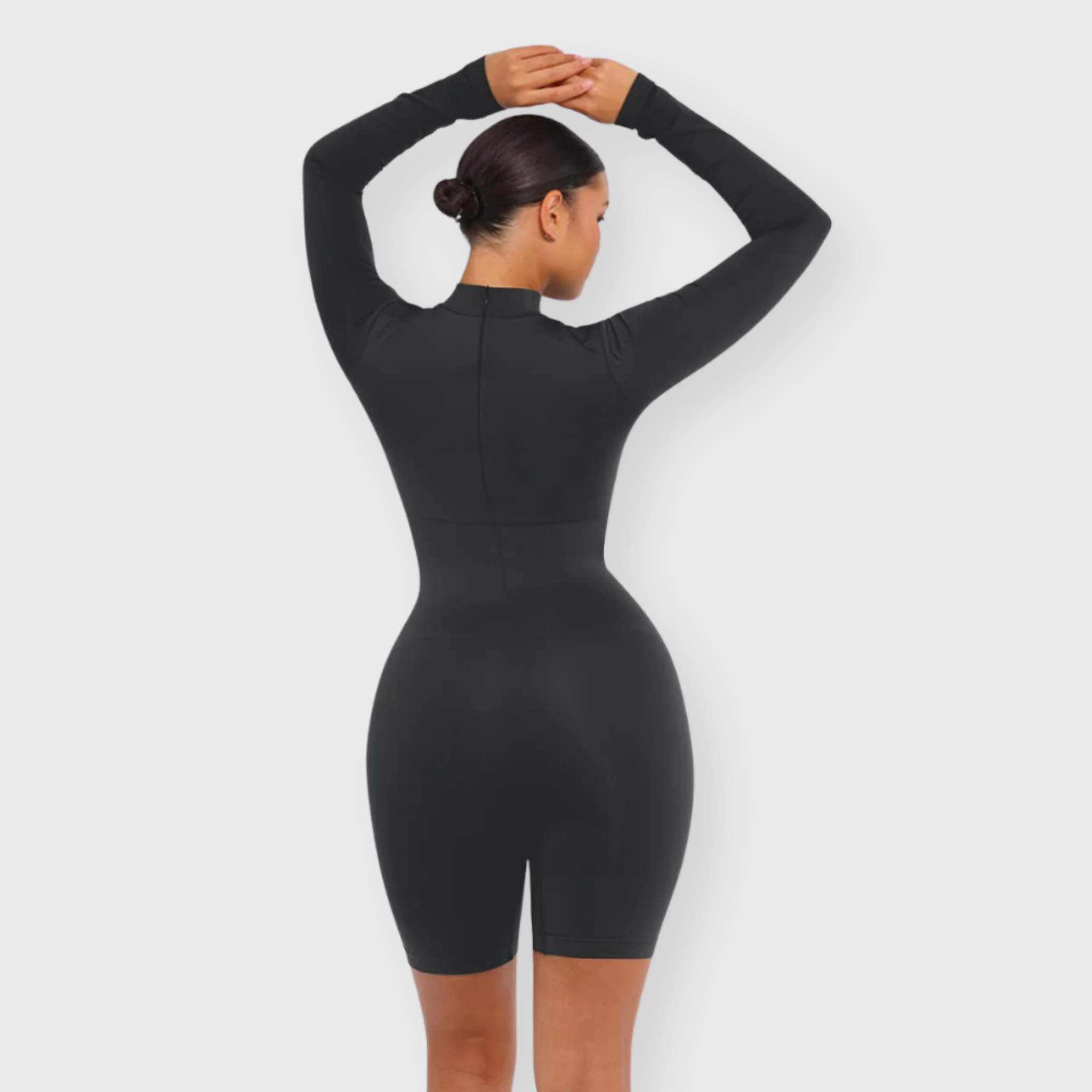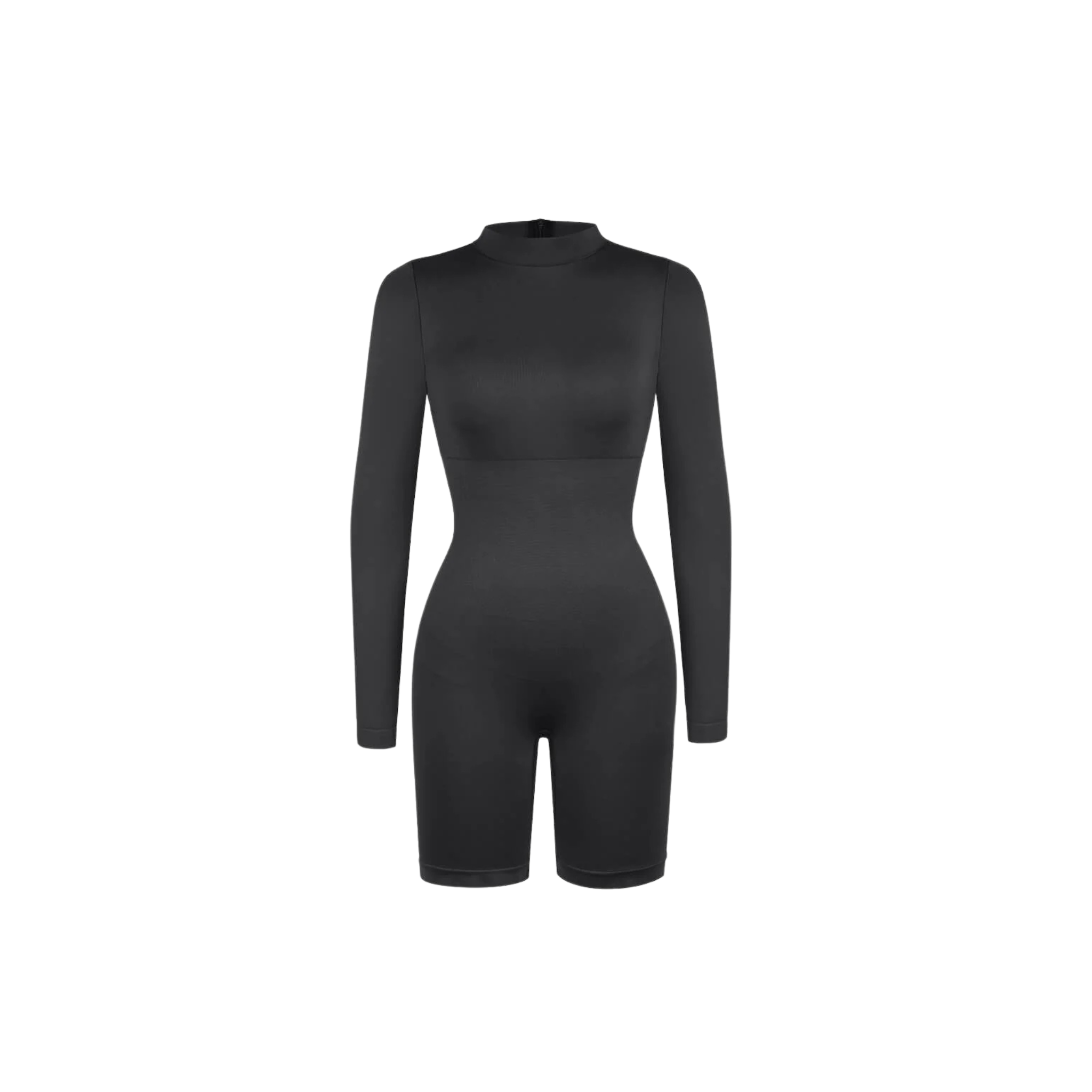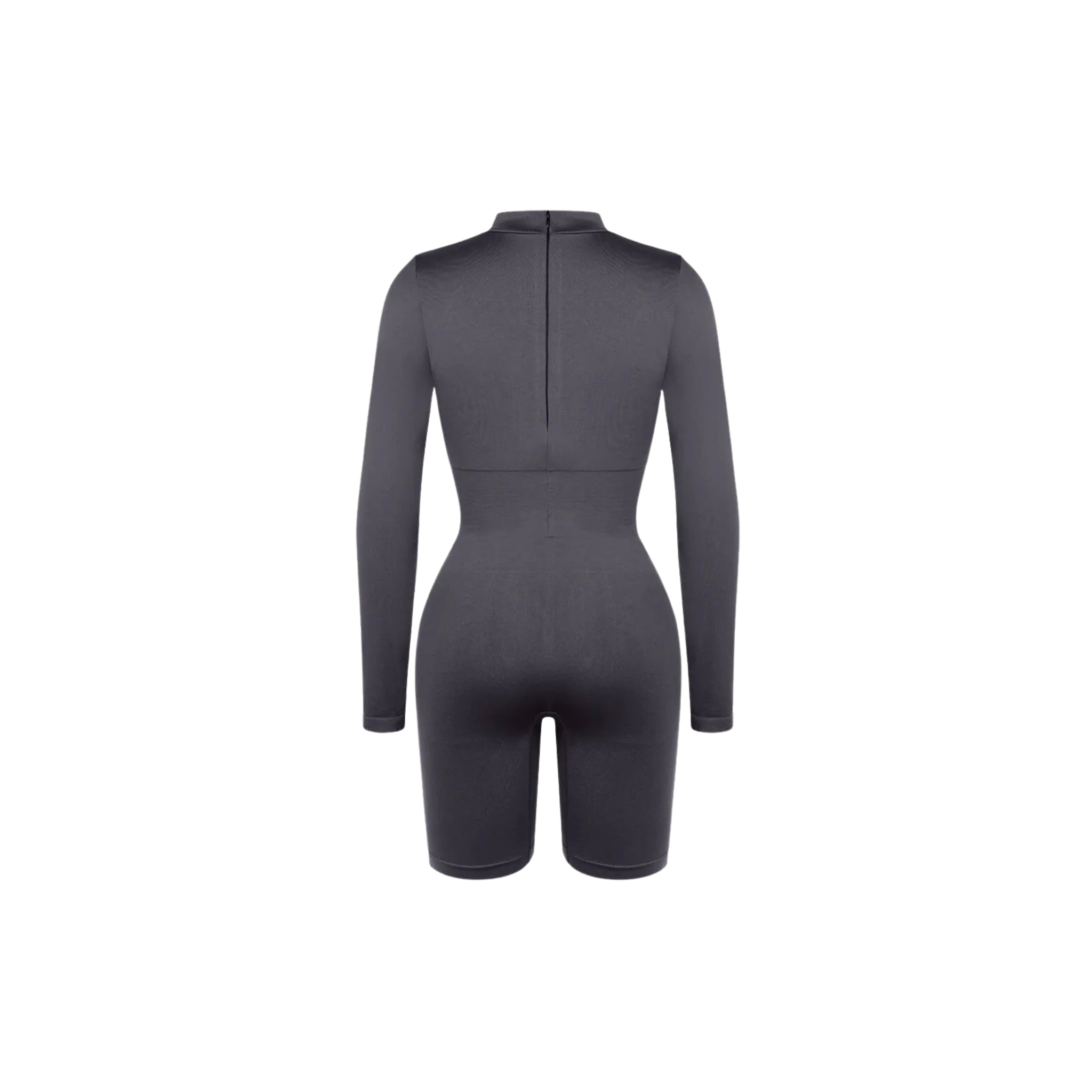Sculpt, support, and smooth in one effortless layer. This Tummy Control Jumpsuit is designed to streamline your silhouette with a cinched waist and double-layered bust support—all wrapped in a second-skin seamless knit. Its semi-high collar adds elevated polish, while the invisible back zipper keeps the look sleek and clean. Built-in chest support and removable cups let you go braless without compromising lift or coverage. This is your all-in-one confidence piece, made for movement, shaping, and all-day comfort.