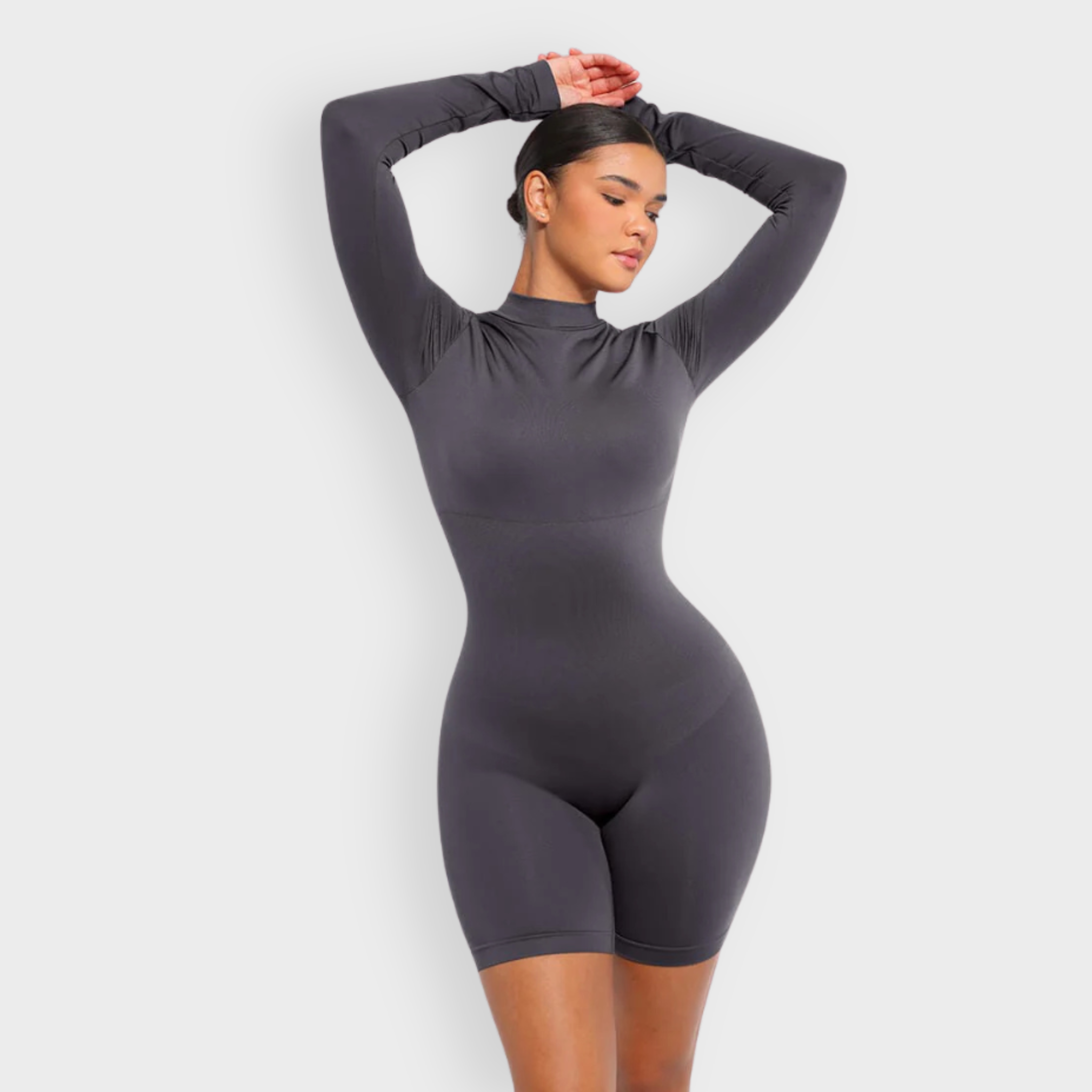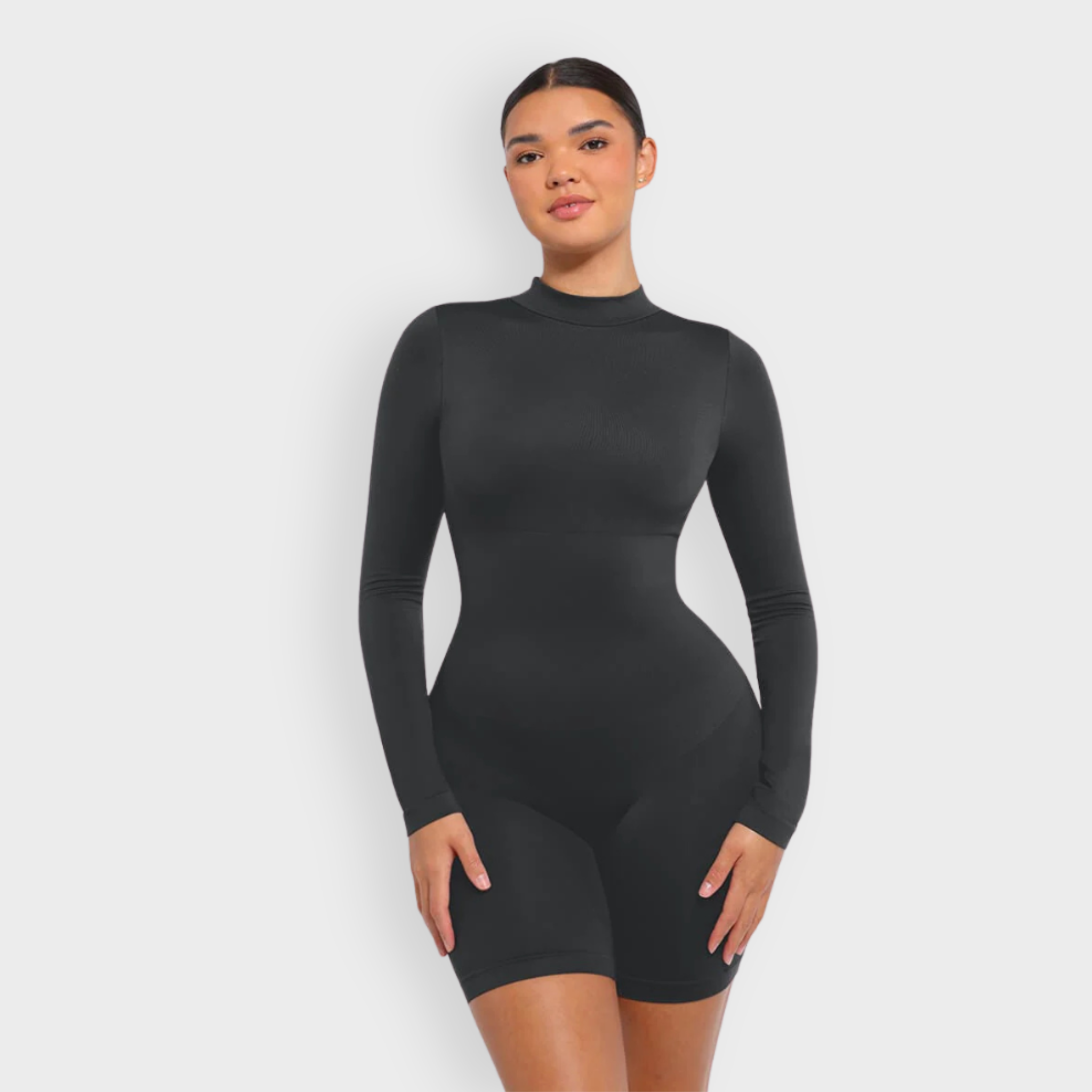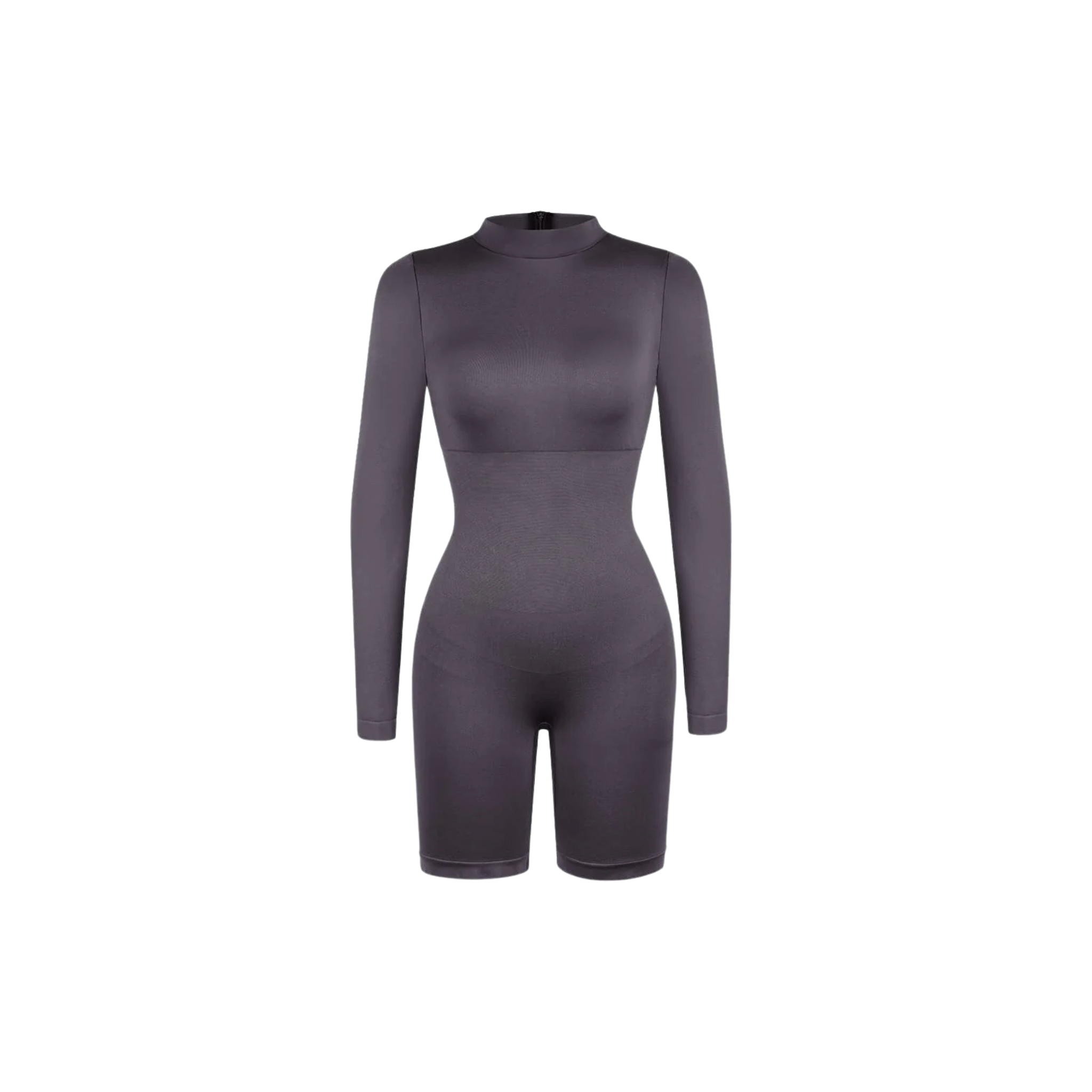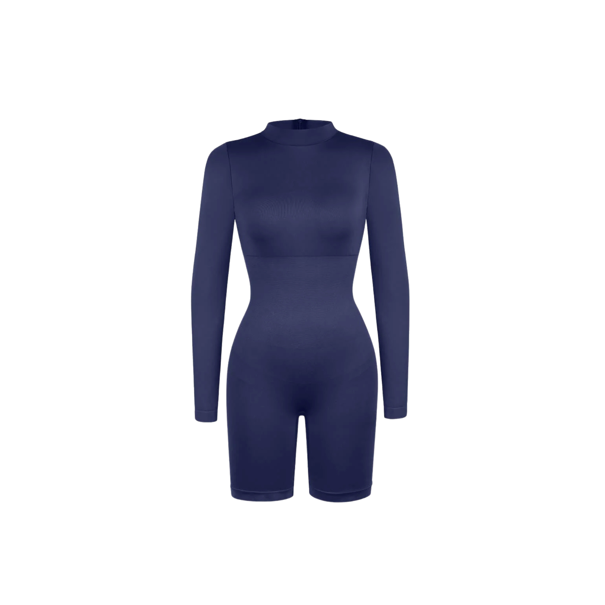 Sculpt, support, and smooth in one effortless layer. This Tummy Control Jumpsuit is designed to streamline your silhouette with a cinched waist and double-layered bust support—all wrapped in a second-skin seamless knit. Its semi-high collar adds elevated polish, while the invisible back zipper keeps the look sleek and clean. Built-in chest support and removable cups let you go braless without compromising lift or coverage. This is your all-in-one confidence piece, made for movement, shaping, and all-day comfort.