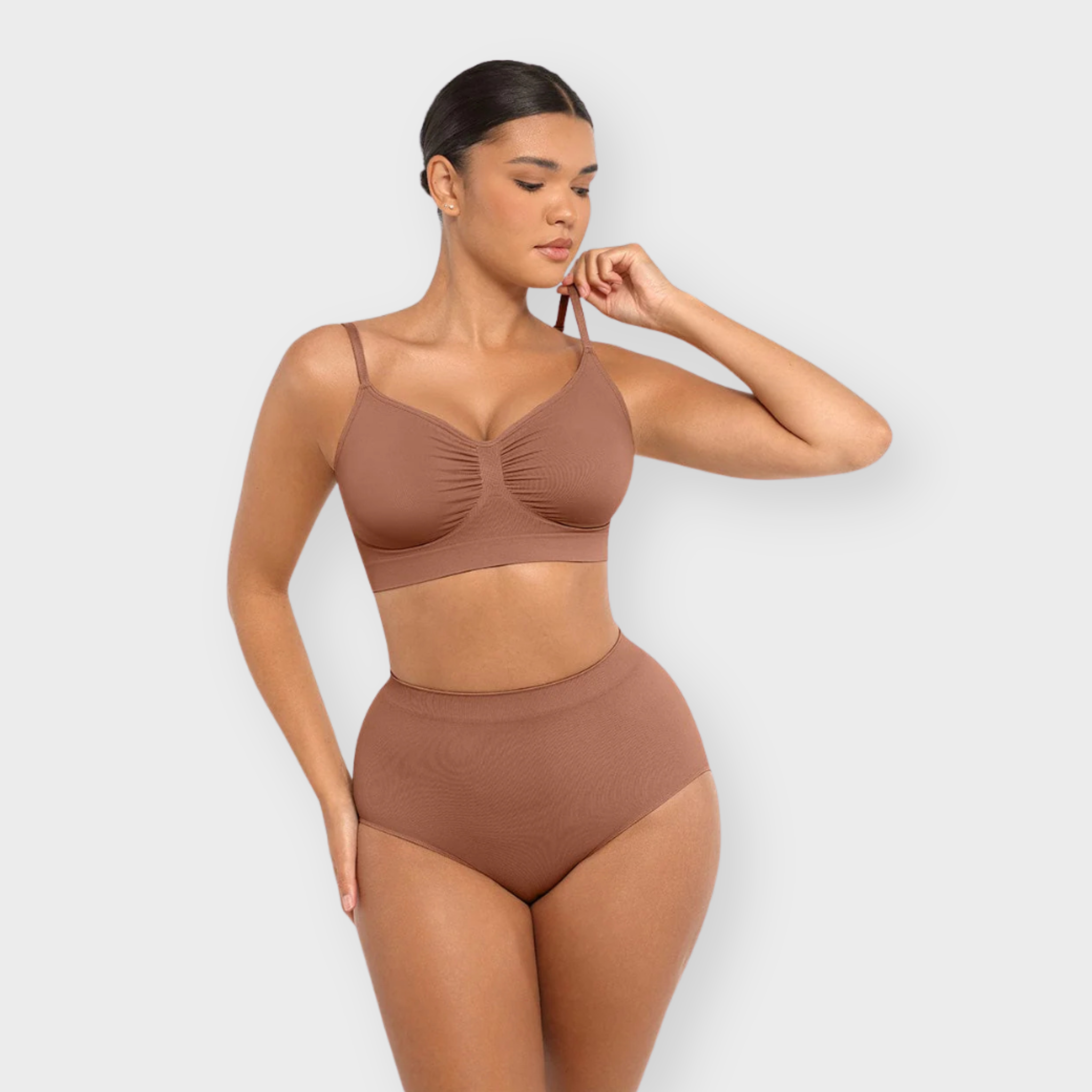 Where seamless comfort meets subtle shaping. This high-waist panty is designed with a sculpting knit that gently supports the tummy while enhancing your natural curves. The buttocks area features a gathered lift effect for a fuller, peachy silhouette—no padding needed. With an antibacterial cotton-blend gusset and ultra-soft, breathable yarn, it’s perfect for everyday wear with hidden support that feels like nothing.