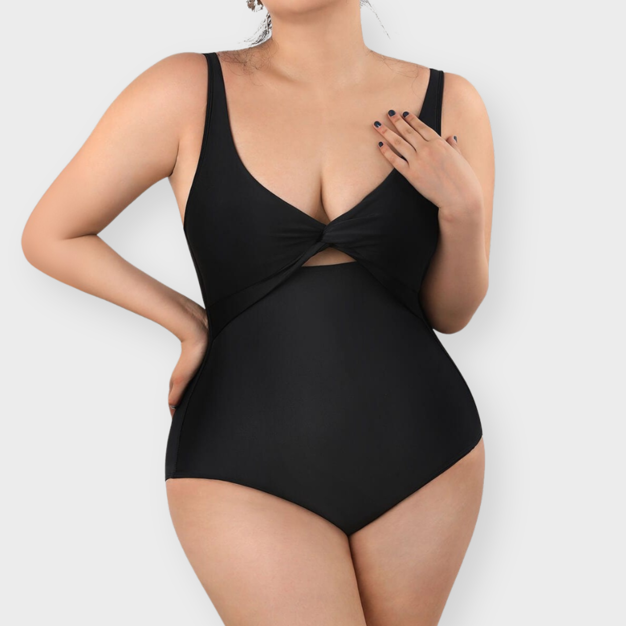Sculpting swimwear that smooths, supports, and flatters—effortlessly. Designed with a soft shaping core, this one-piece contours the waist and tummy while lifting the bust with a twist-front neckline. Seamless sides and full back coverage keep it sleek under the sun, while the comfortable compression fabric moves with you from swim to shore.