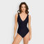 Sculpt, smooth, and show just enough. This plunging V-neck one-piece is designed to elongate the neckline and flatter your figure with a slimming waist-pleat design and built-in tummy compression. An open back adds a touch of allure, while the three-layer chest and detachable cups offer breathable coverage and shape. Perfectly engineered to support and celebrate your curves—all day, every swim.