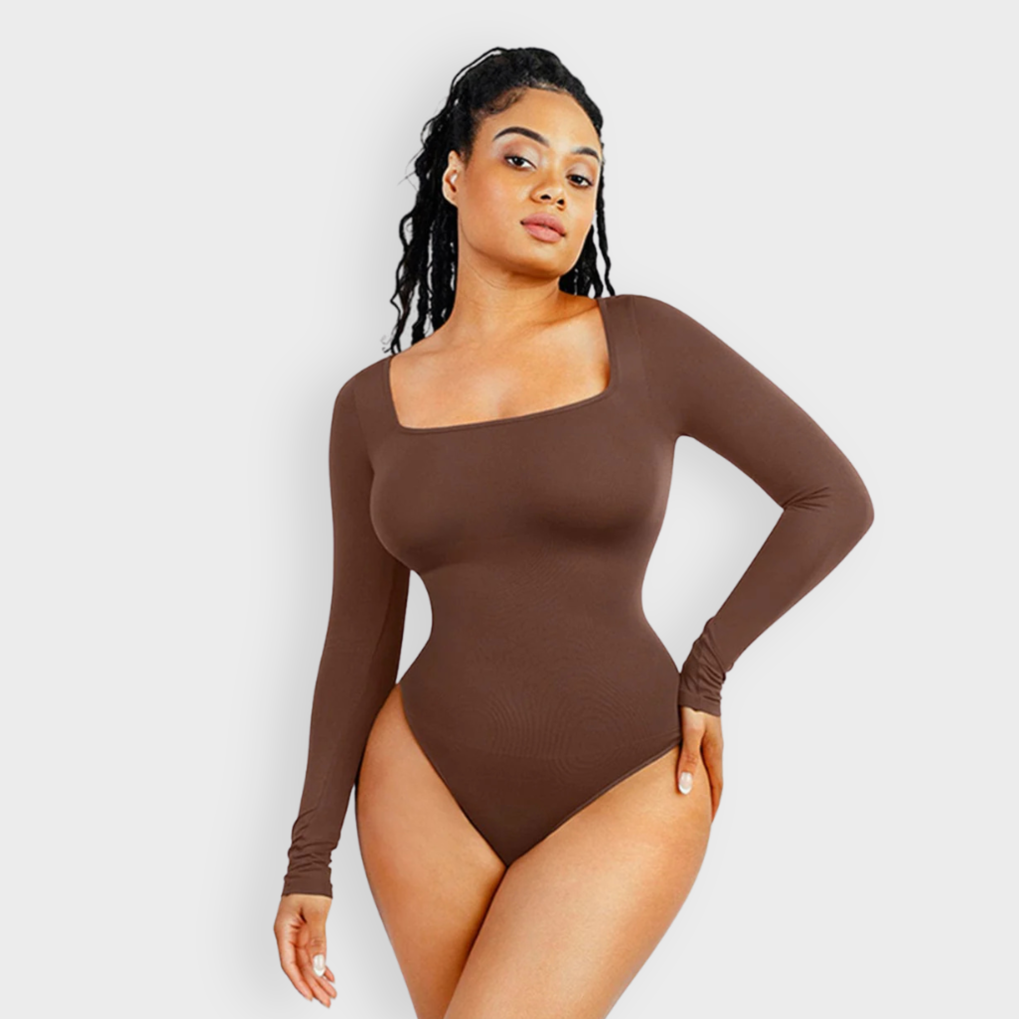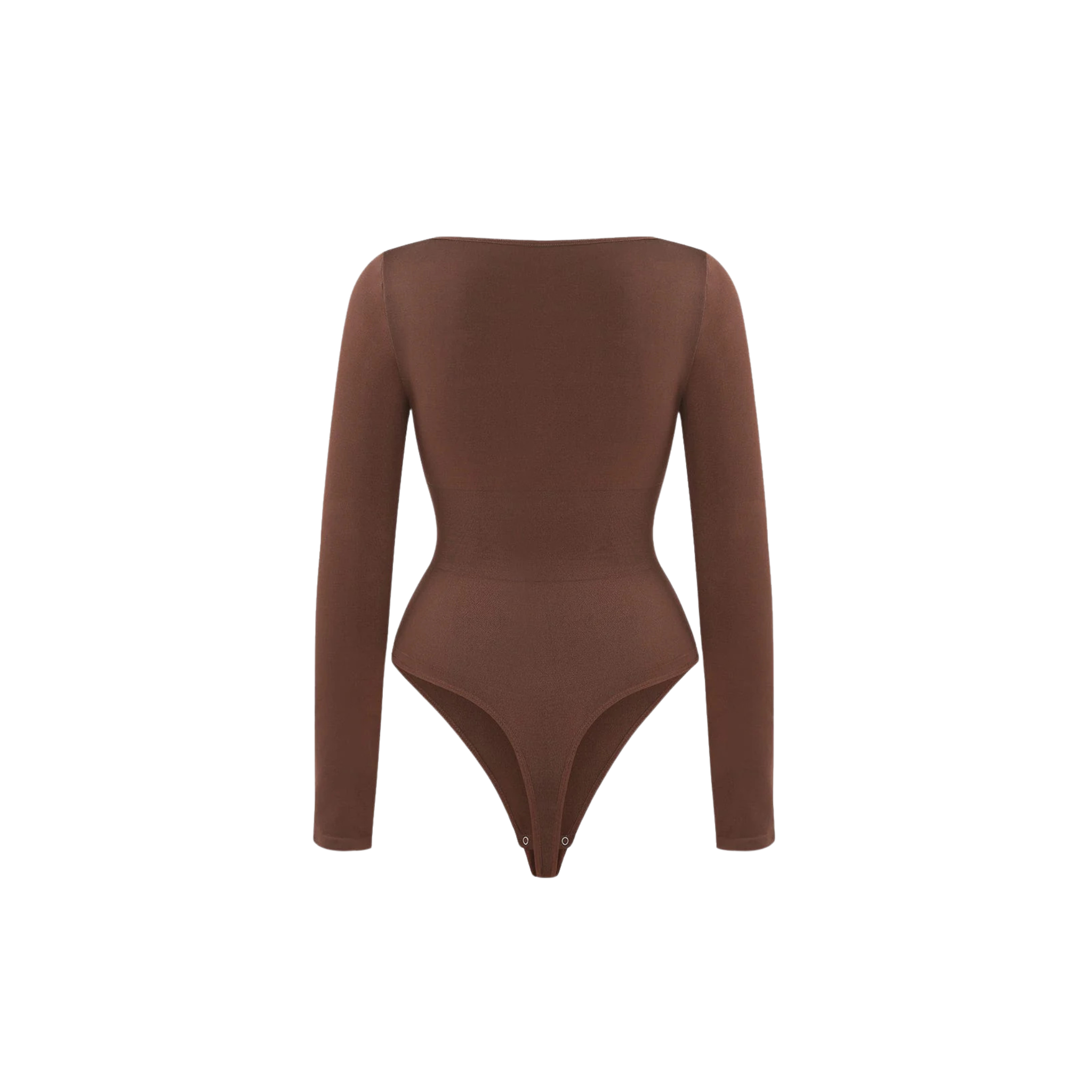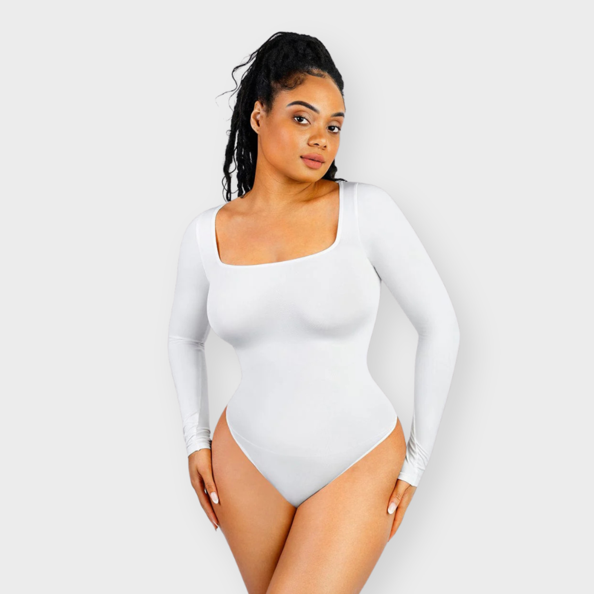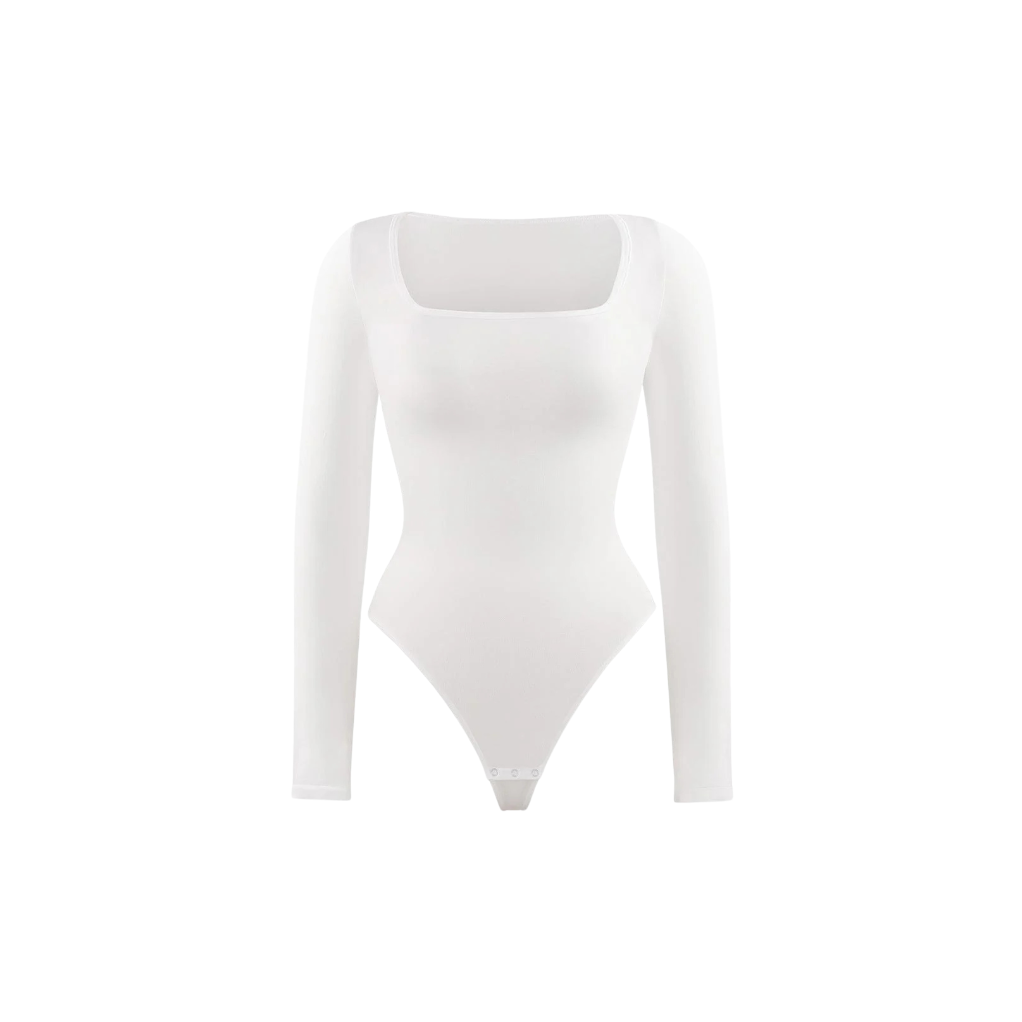 This Long Sleeve Bodysuit is crafted with recycled nylon for a lighter footprint and all-day comfort. Designed with a flattering square neckline that highlights the collarbone and elongates the neck, this sleek one-piece features 360° waist control with compressive knit panels that smooth and shape your core. The thong cut ensures a no-show finish under clothing, while an adjustable double-snap closure allows for a custom fit. A versatile base layer you’ll want in every season.