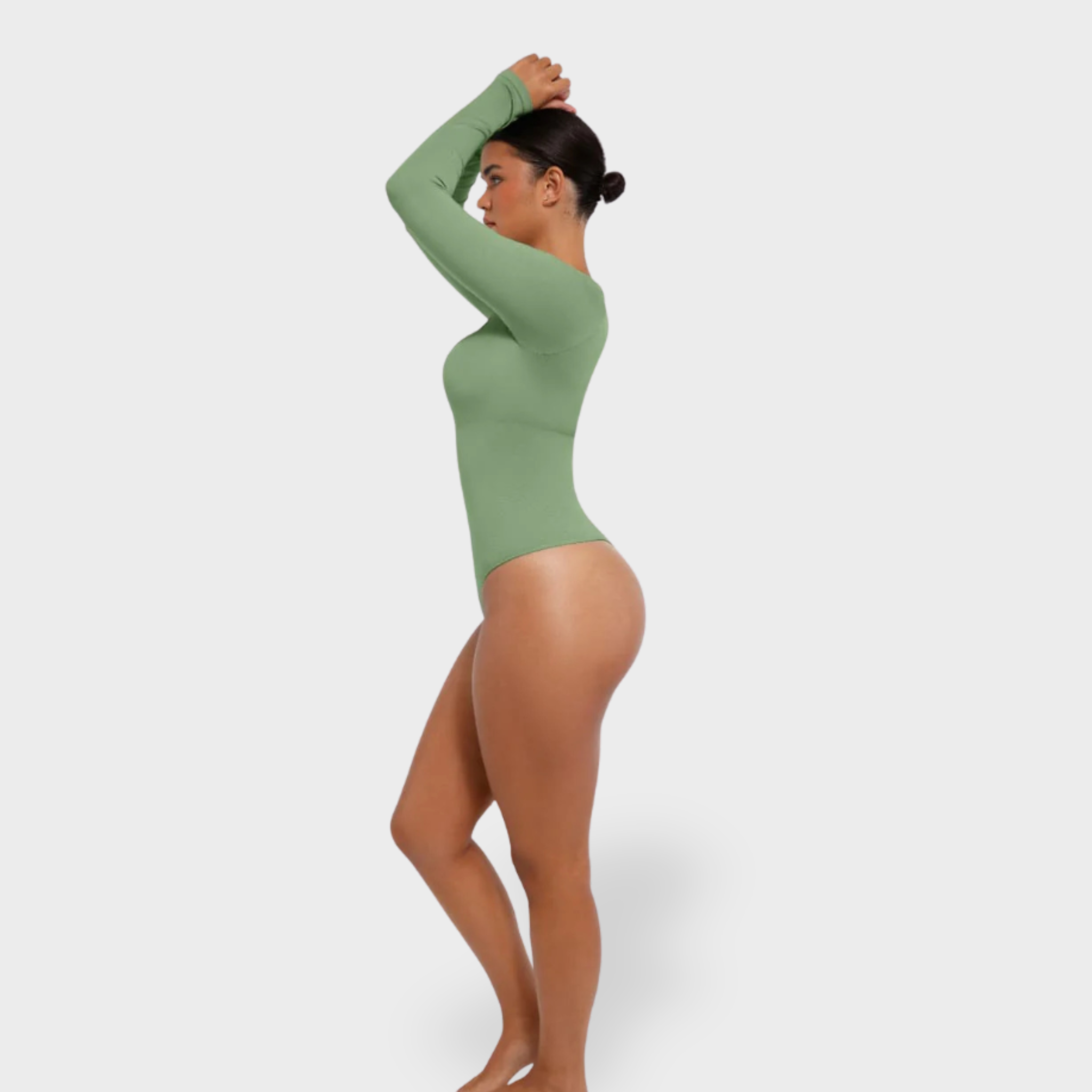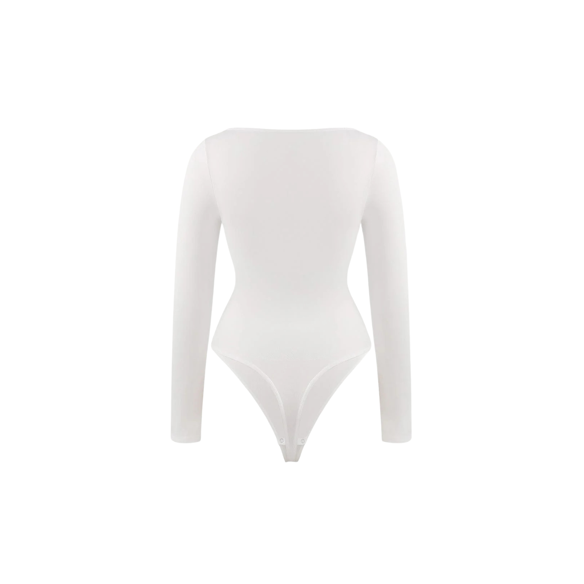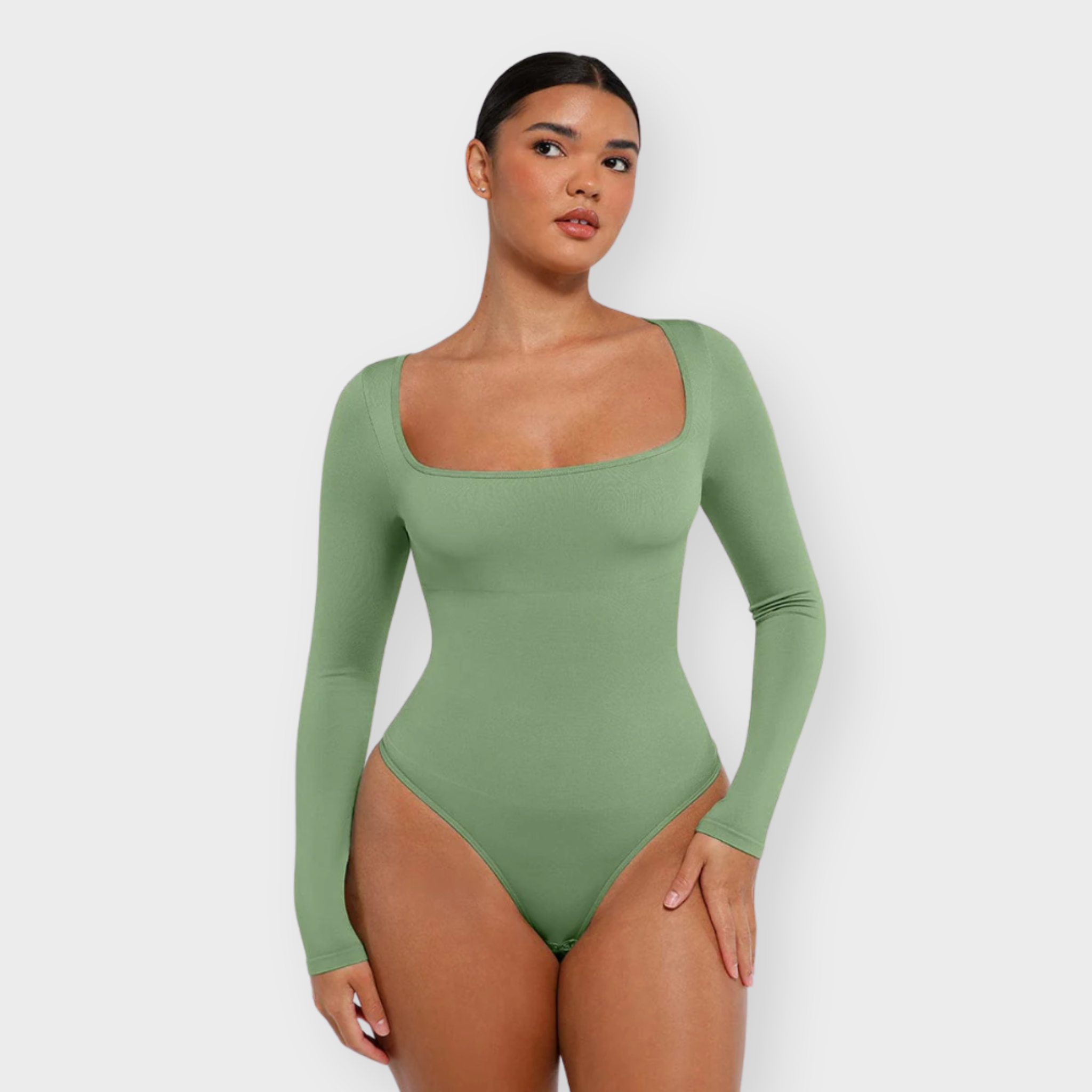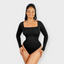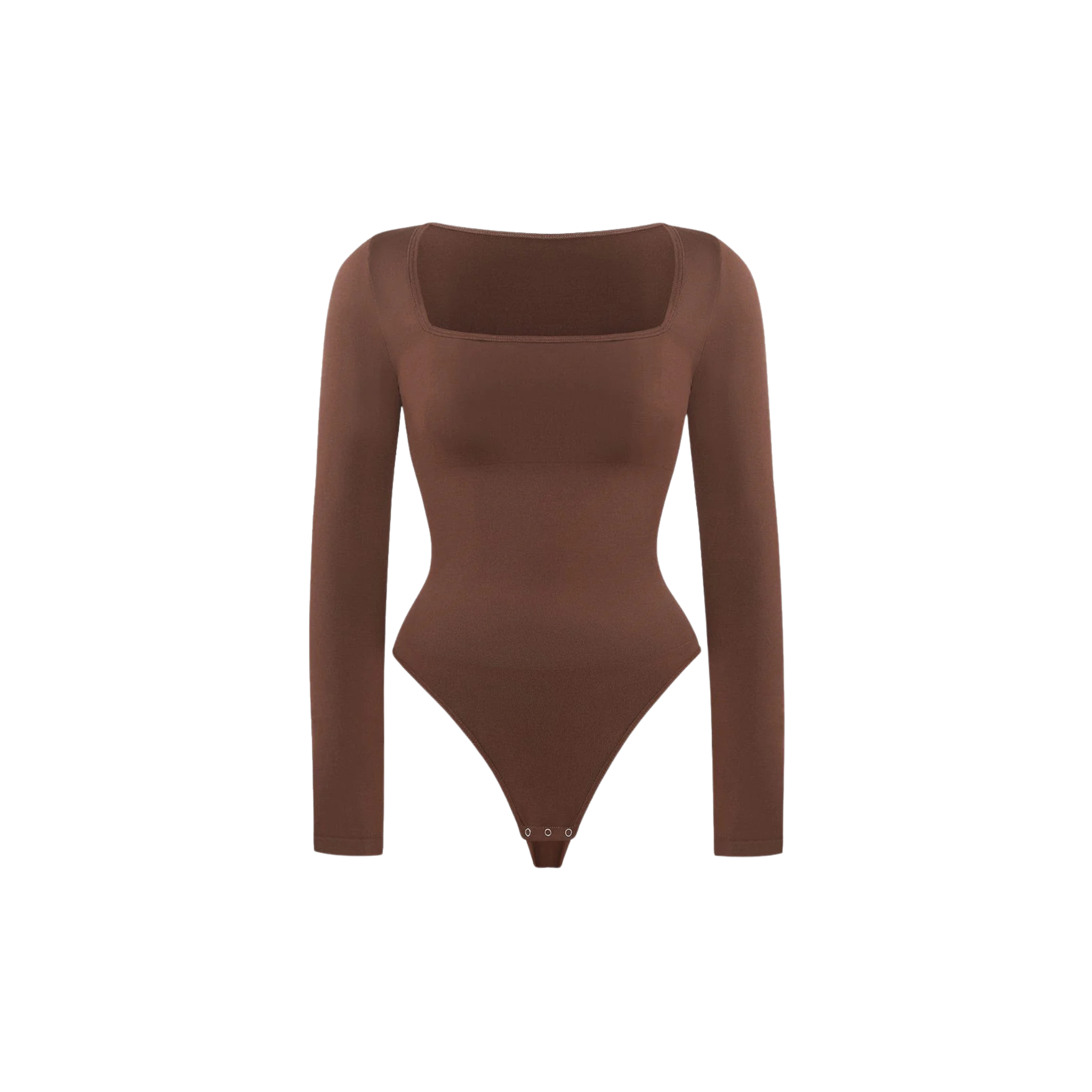 This Long Sleeve Bodysuit is crafted with recycled nylon for a lighter footprint and all-day comfort. Designed with a flattering square neckline that highlights the collarbone and elongates the neck, this sleek one-piece features 360° waist control with compressive knit panels that smooth and shape your core. The thong cut ensures a no-show finish under clothing, while an adjustable double-snap closure allows for a custom fit. A versatile base layer you’ll want in every season.